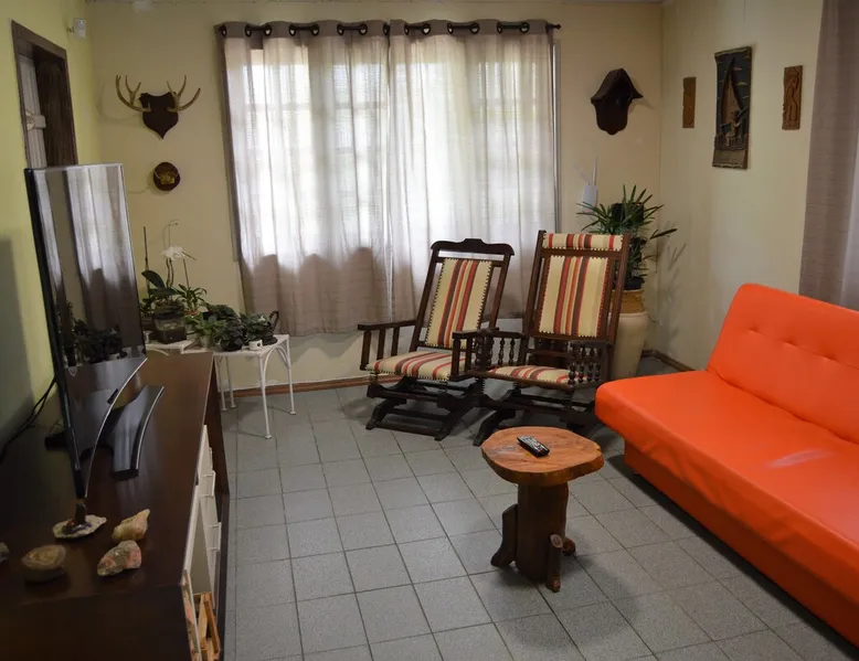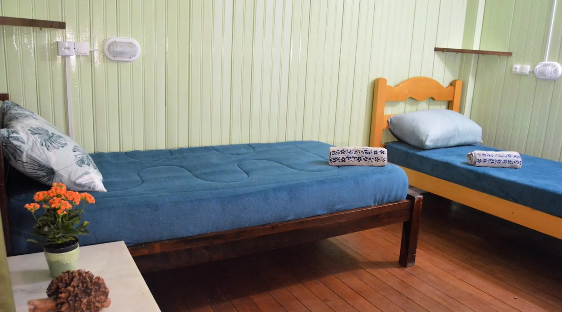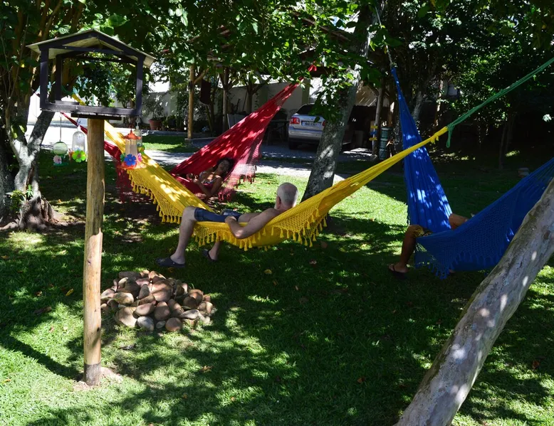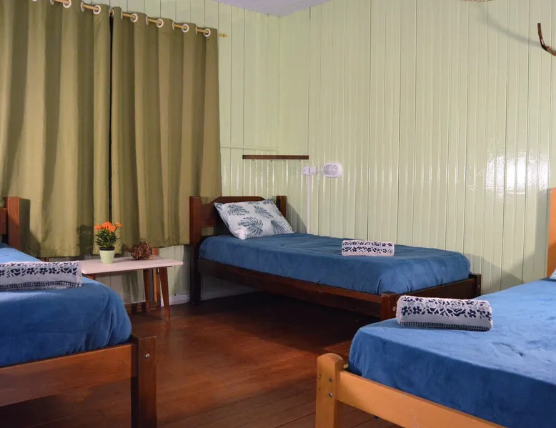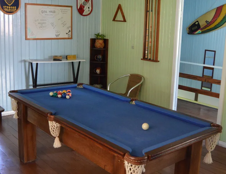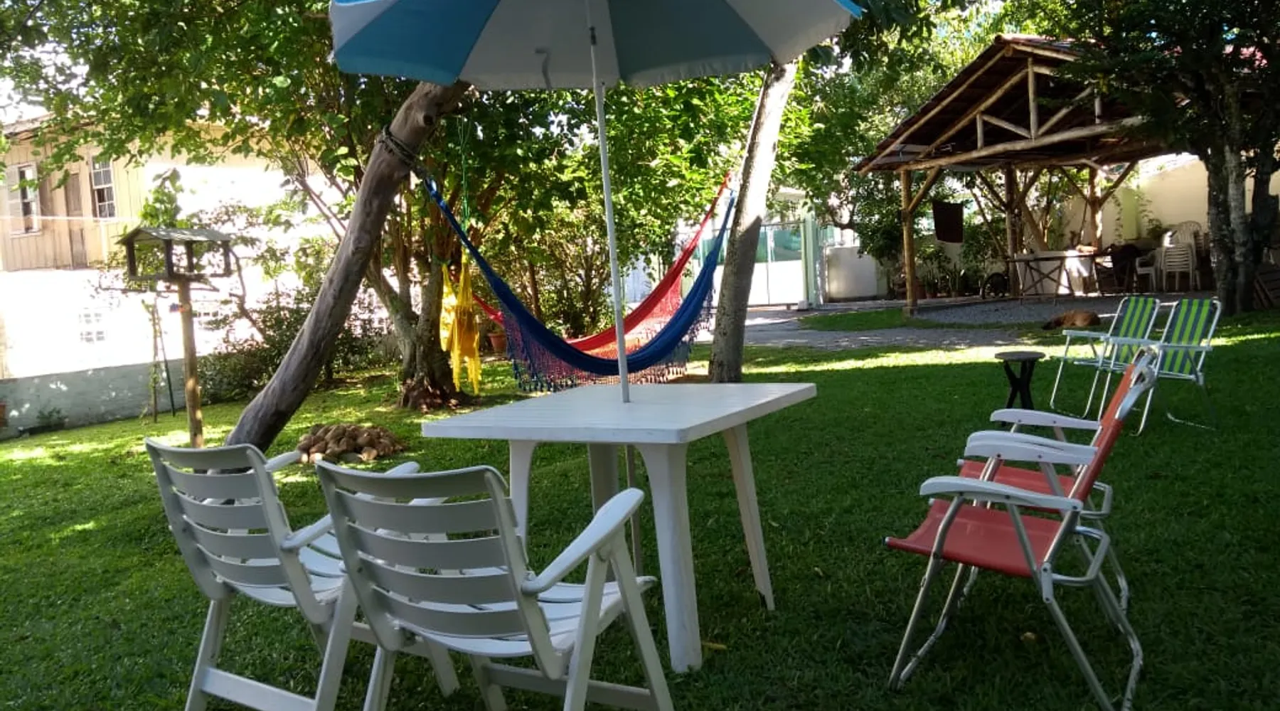 The Marambaia room has TWO DOUBLE BEDS, has SPLIT air conditioning, Wi-Fi and with BREAKFAST. Additional bed if required, on request. The residence is two blocks from the beach and 7 minutes from Warung. Shared area has bathroom, pool table, living room with SMART TV and fireplace, full kitchen and large wooded area with BBQ and private PARKING. Comfort and tranquility in OPA HAUS - Pousada & Hostel! For more information please contact us! The space At OPA HAUS - Pousada & Hostel, we have double rooms (single or couple beds). If necessary we can include extra bed, on request. The rooms are prepared for guest comfort, with SPLIT air-conditioning, and with shared area with POOL table and games, living room with SMART TV and fireplace,, complete KITCHEN for use, plus bathrooms! Wooden house 150 meters from the beach (two blocks), with large wooded backyard, full of fruit trees, with BBQ and hammocks for rest and private and secure PARKING. Upstairs access is exclusive to guests! The environment is calm, quiet and family friendly. Come and enjoy the beach of Cabeçudas in OPA HAUS - Pousada & Hostel! Website: www.opahaus.com Facebook: / opahaus Instagram: @opahaus Guest access The shared environments have a POOL table and games (poker, domino, card), bathrooms, complete KITCHEN, large wooded area with BBQ and hammocks, PRIVATE PARKING, exclusive access for guests on the deck, living room with SMART TV and fireplace! During your stay We will be at the residence to assist guests. Other things to note We have two super quiet and docile dogs that do not have access to the exclusive entrance of the guests!