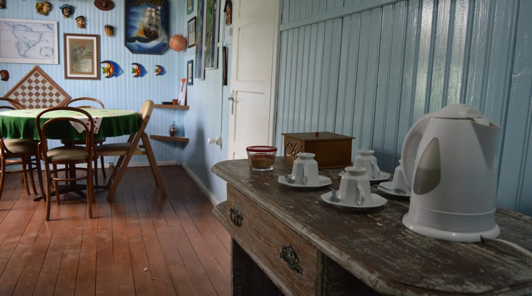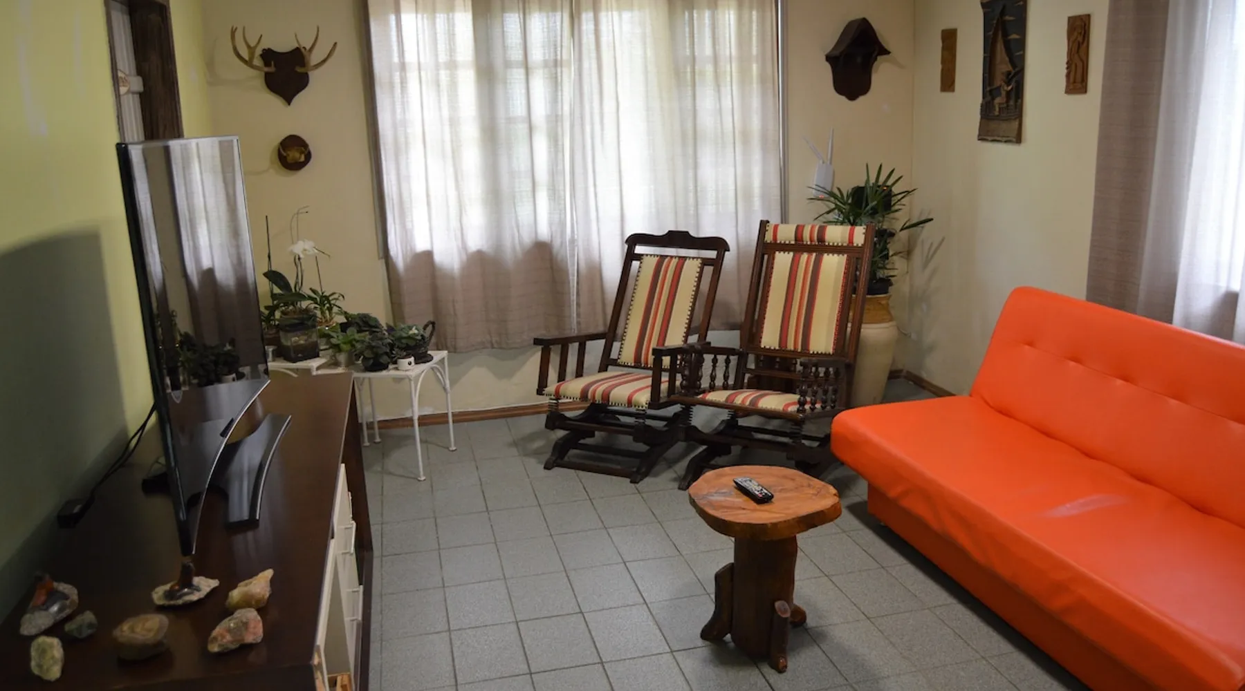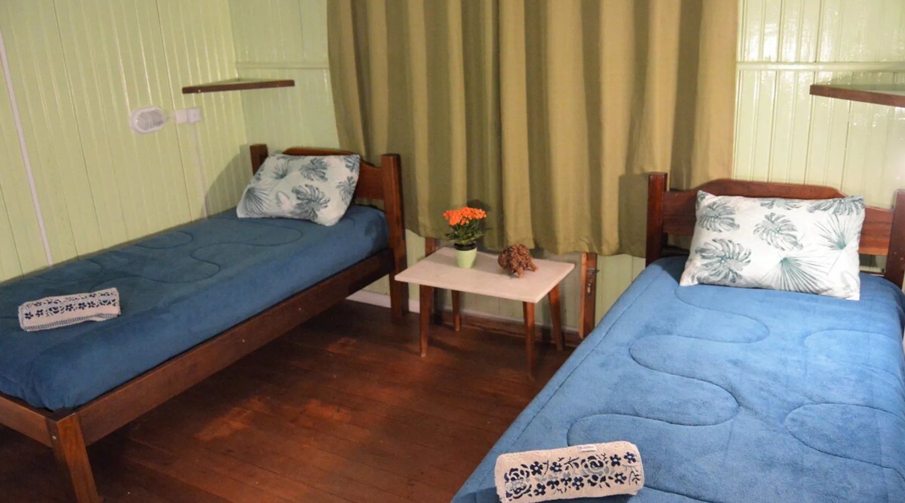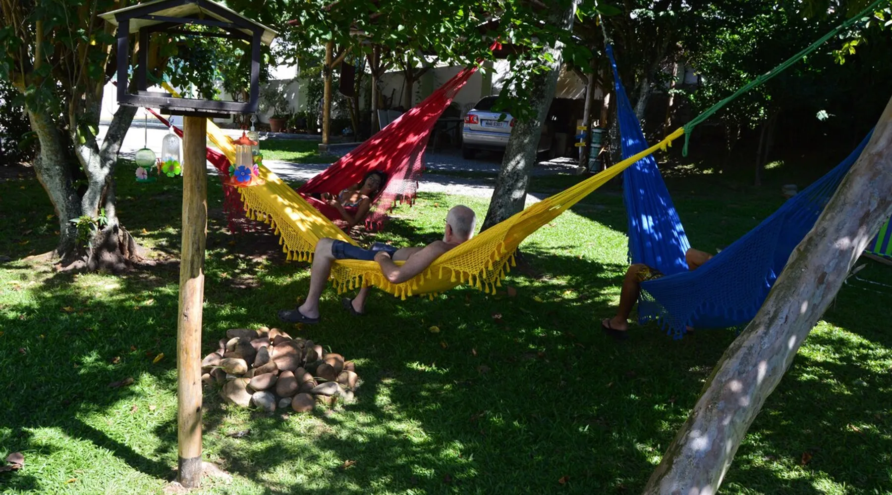 The Marambaia room has TWO DOUBLE BEDS, has SPLIT air conditioning, Wi-Fi and with BREAKFAST. Additional bed if required, on request. The residence is two blocks from the beach and 7 minutes from Warung. Shared area has bathroom, pool table, living room with SMART TV and fireplace, full kitchen and large wooded area with BBQ and private PARKING. Comfort and tranquility in OPA HAUS - Pousada & Hostel! For more information please contact us! The space At OPA HAUS - Pousada & Hostel, we have double rooms (single or couple beds). If necessary we can include extra bed, on request. The rooms are prepared for guest comfort, with SPLIT air-conditioning, and with shared area with POOL table and games, living room with SMART TV and fireplace,, complete KITCHEN for use, plus bathrooms! Wooden house 150 meters from the beach (two blocks), with large wooded backyard, full of fruit trees, with BBQ and hammocks for rest and private and secure PARKING. Upstairs access is exclusive to guests! The environment is calm, quiet and family friendly. Come and enjoy the beach of Cabeçudas in OPA HAUS - Pousada & Hostel! Website: www.opahaus.com Facebook: / opahaus Instagram: @opahaus Guest access The shared environments have a POOL table and games (poker, domino, card), bathrooms, complete KITCHEN, large wooded area with BBQ and hammocks, PRIVATE PARKING, exclusive access for guests on the deck, living room with SMART TV and fireplace! During your stay We will be at the residence to assist guests. Other things to note We have two super quiet and docile dogs that do not have access to the exclusive entrance of the guests!