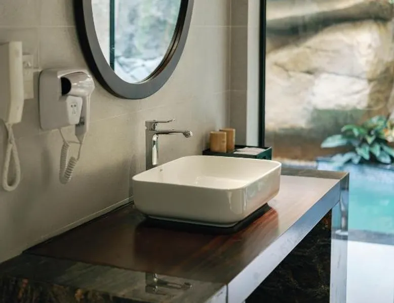Elegant Accommodations: Lamori Resort & Spa in Thanh Hóa offers luxurious family rooms with private balconies, terraces, and modern amenities. Each room features air-conditioning, free WiFi, and stunning views. Exceptional Facilities: Guests can enjoy an infinity swimming pool, spa facilities, sauna, fitness center, tennis court, and free bicycles. Additional amenities include a steam room, wellness packages, and a kids' club. Dining Experience: The resort offers a variety of dining options, including a family-friendly restaurant serving Vietnamese, local, Asian, and international cuisines. Breakfast options include continental, American, and vegetarian. Prime Location: Located 2.5 mi from Tho Xuan Airport, the resort provides easy access to local attractions. Free on-site private parking and a tour desk enhance the guest experience. Featuring a private entrance, this air-conditioned villa consists of 1 bedroom and 1 bathroom with a walk-in shower and a bath. Boasting a terrace with lake views, this villa also provides soundproof walls and a flat-screen TV. The unit offers 1 bed.