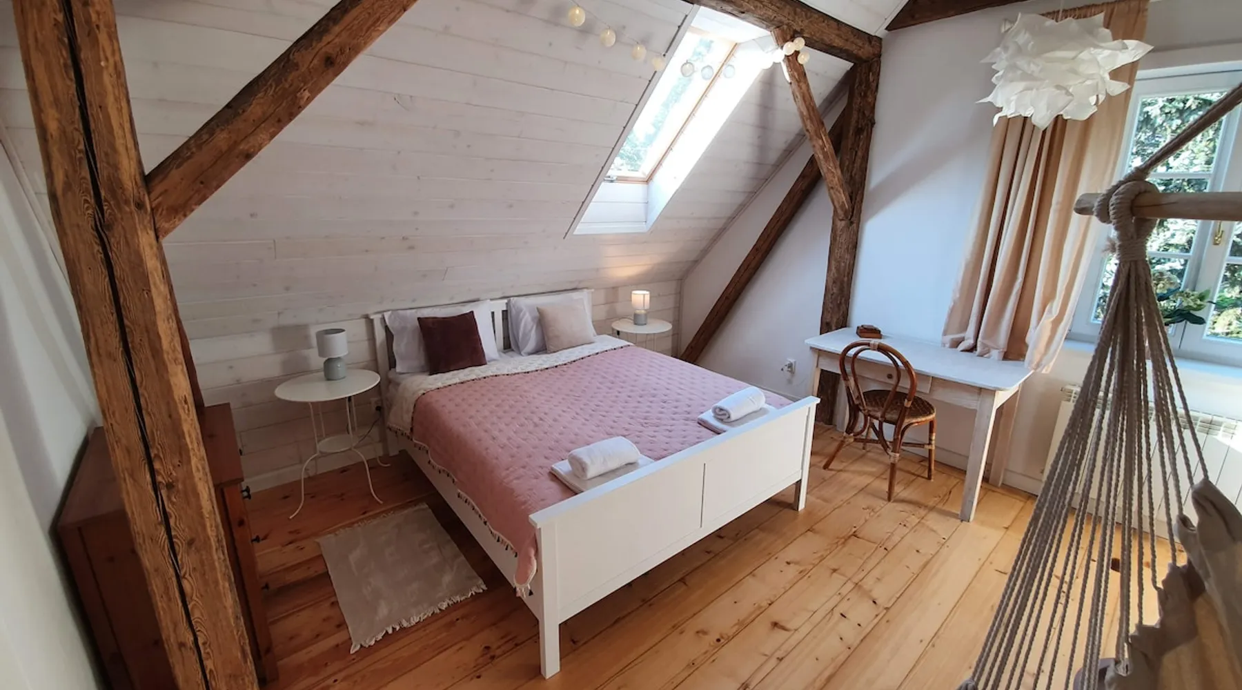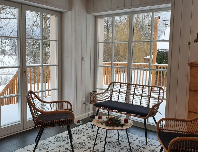 Beautiful house for rent exclusively in Dębowiec in the Silesian Beskids, near the border with the Czech Republic. Located on a huge 70s plot with old trees and a view of the pond. Możliwość noclegów dla 15 osób. Workspaces, fast internet, wifi. Możliwość zamówienia śniadań. W pobliżu miast: Cieszyn, Ustroń.