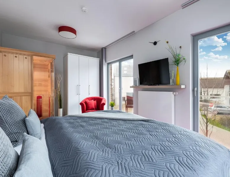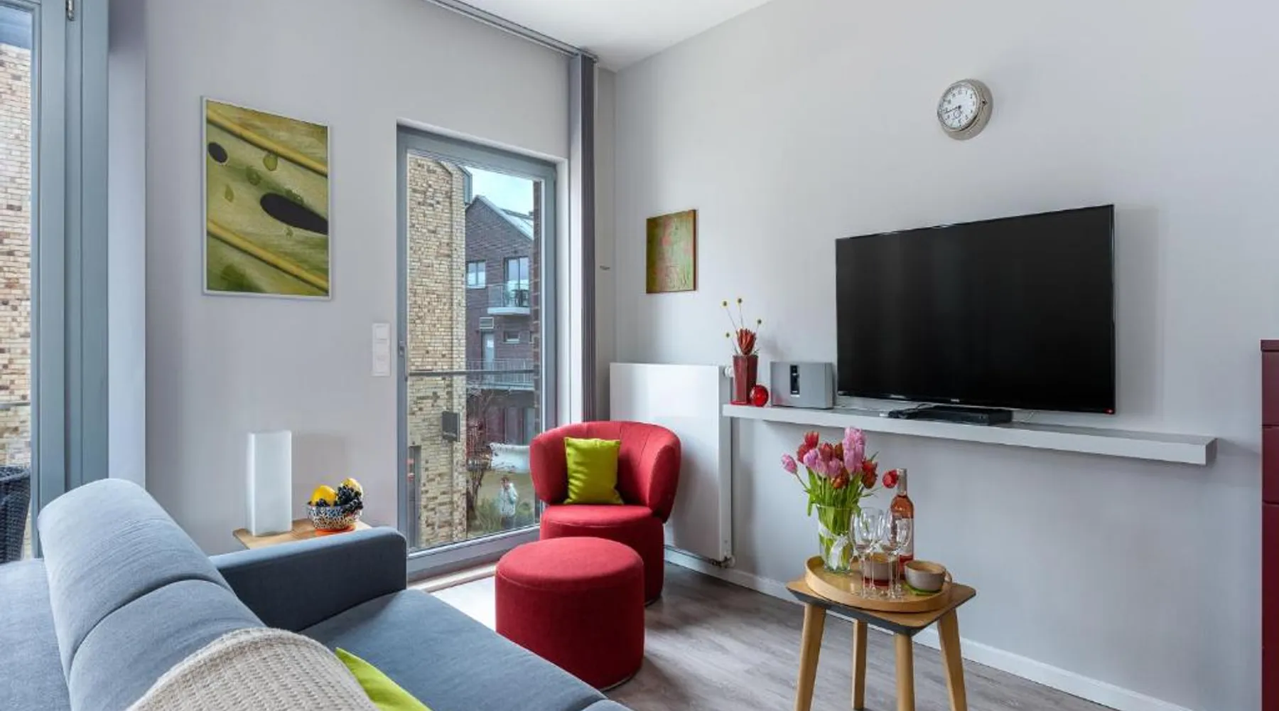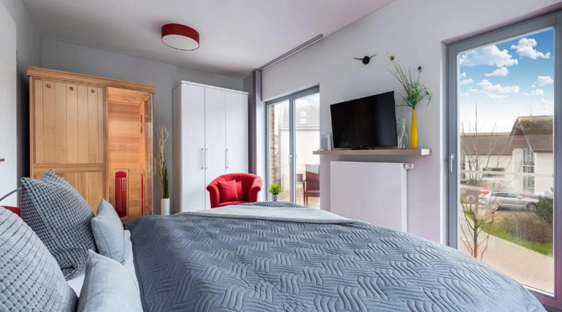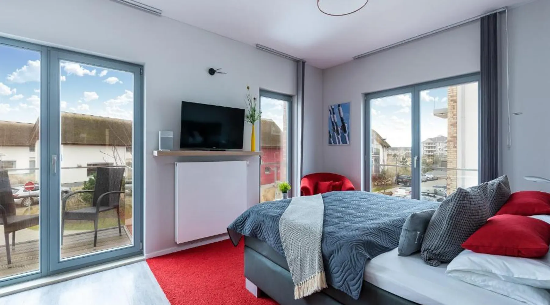 Spacious Accommodations: Ostsee - Appartement "Promenade74" im Strand Resort in Heiligenhafen offers a spacious 5-star apartment with one bedroom and a living room. Guests enjoy sea views from the balcony and a fully equipped kitchenette. Modern Amenities: The apartment features a fireplace, sofa bed, work desk, and free WiFi in public areas. Additional amenities include a coffee machine, microwave, dishwasher, and TV. Free on-site private parking is available. Prime Location: Heiligenhafen Beach is a 3-minute walk away. Lübeck Airport is 48 mi from the property. Nearby attractions include Fehmarn Sound Bridge (7.5 mi) and HANSA-PARK (27 mi). This apartment features a fireplace. This spacious apartment features 1 living room, 1 separate bedroom and 1 bathroom with a shower and a hairdryer. Meals can be prepared in the kitchenette, which has a stovetop, a refrigerator, a dishwasher and an oven. Boasting a balcony with sea views, this apartment also features a coffee machine and a TV. The unit has 2 beds.