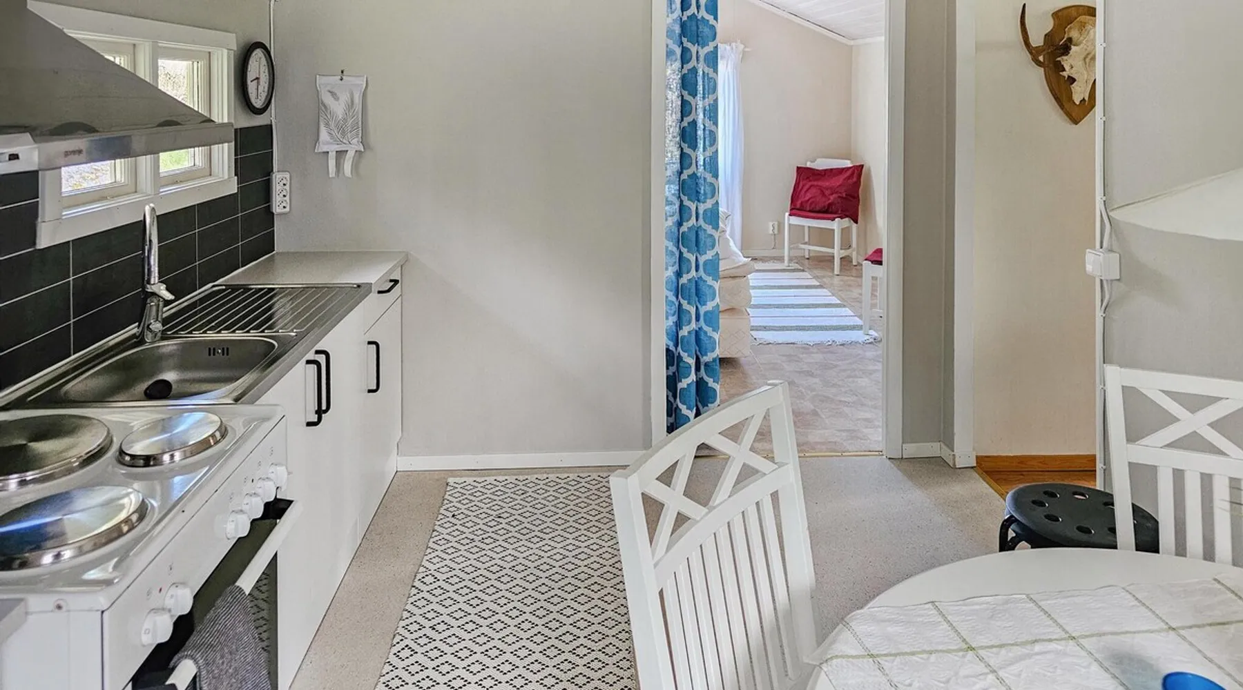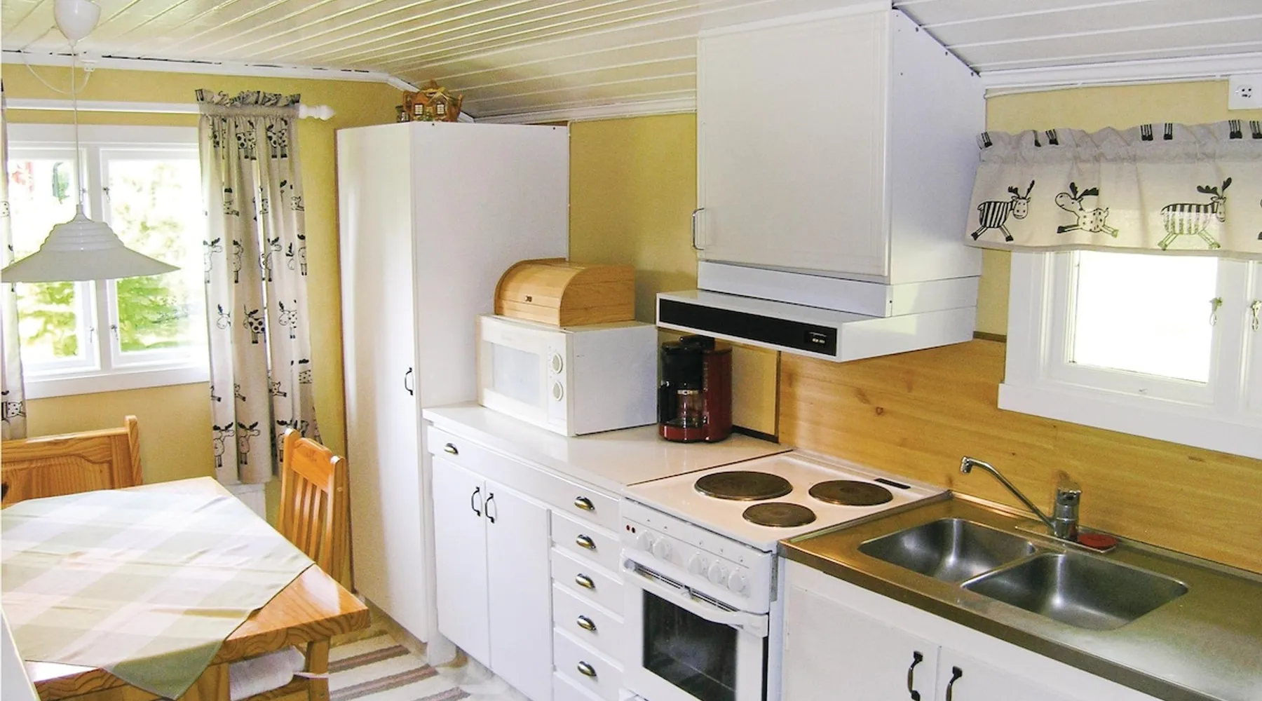 Pleasant holiday home, situated high on a large hilly lake property on the outer Stångsjön near Örsås in Västergötland. The space Pleasant holiday home, situated high on a large hilly lake property on the outer Stångsjön near Örsås in Västergötland. There are several lakes in the area for swimming and fishing for pike and perch. Own jetty and barbecue area by the lake. A number of fine fishing lakes in the immediate vicinity. A beautiful hiking trail around the lake. Wild nature. Good mushrooms. Only one neighbour on the small road leading to the hut. The toilet is separate. There is a sliding door to the bedroom. Fishing licences can be bought from the owner. Can comfortably fit up to 5 people Other things to note Please note that: Consumption costs are not included in the room rate and will be charged according to guest use within three weeks after check-out.