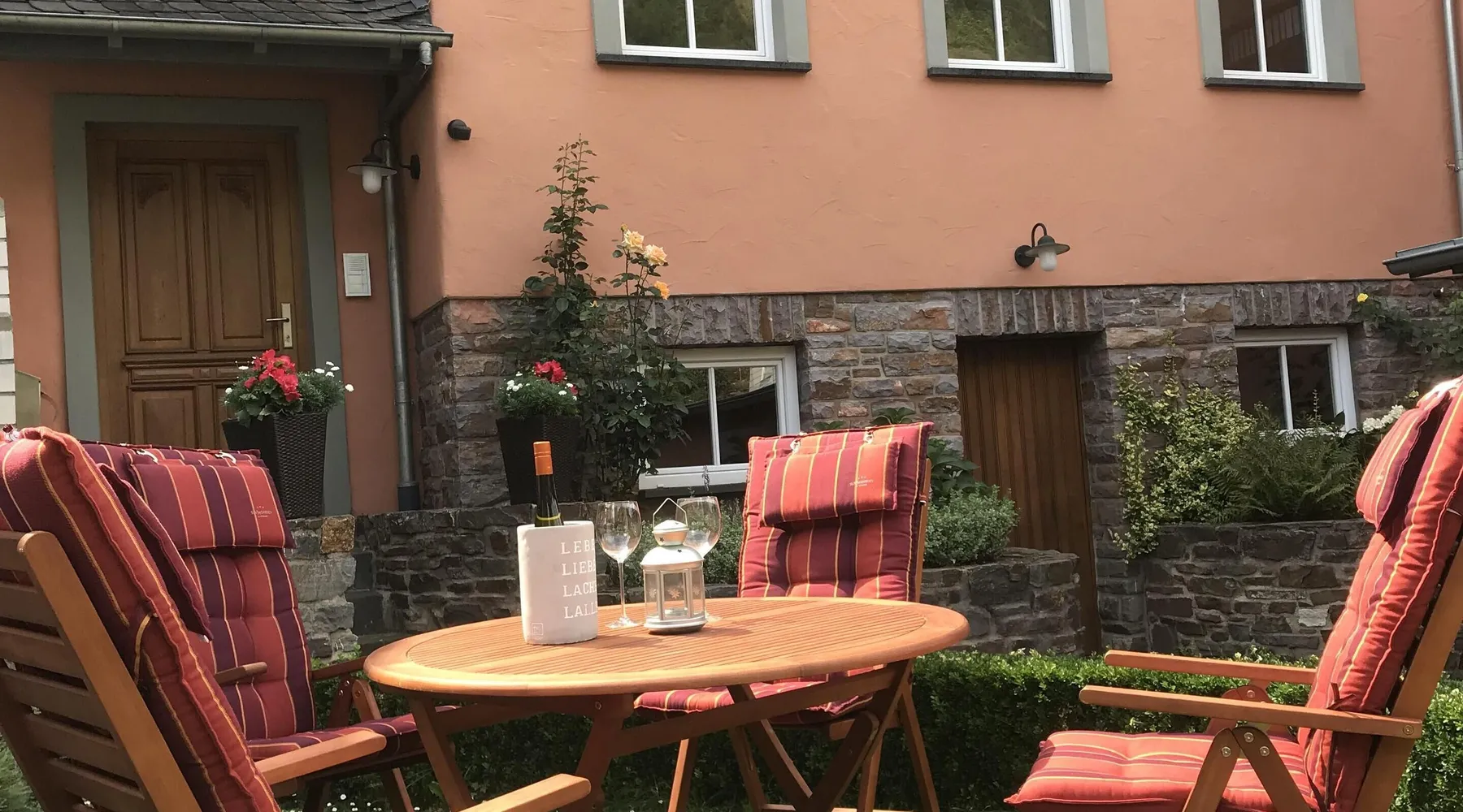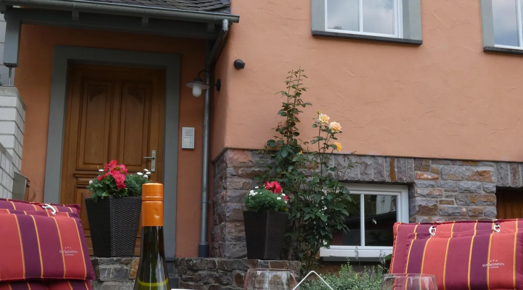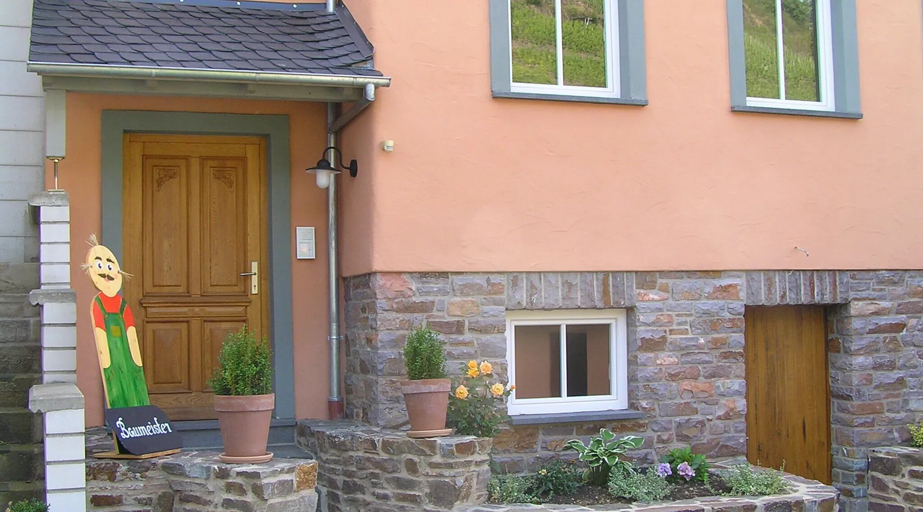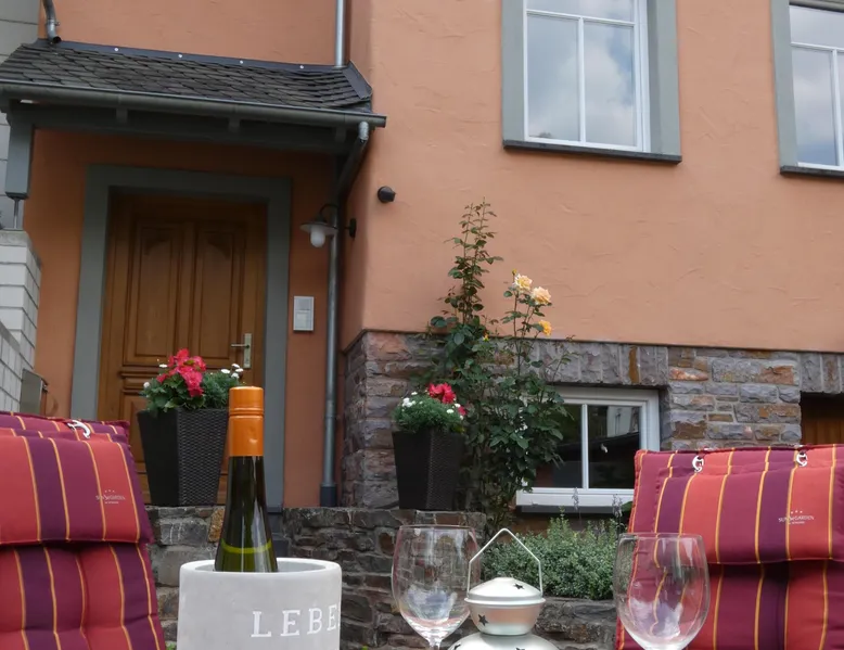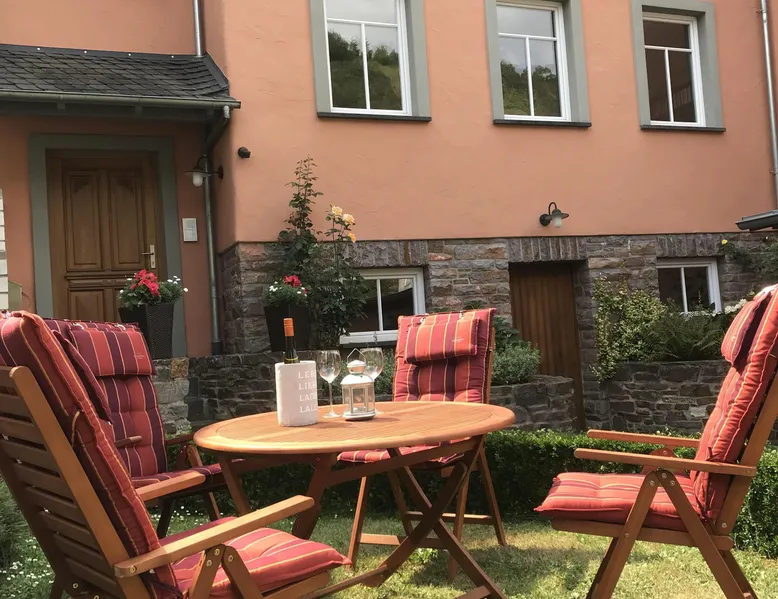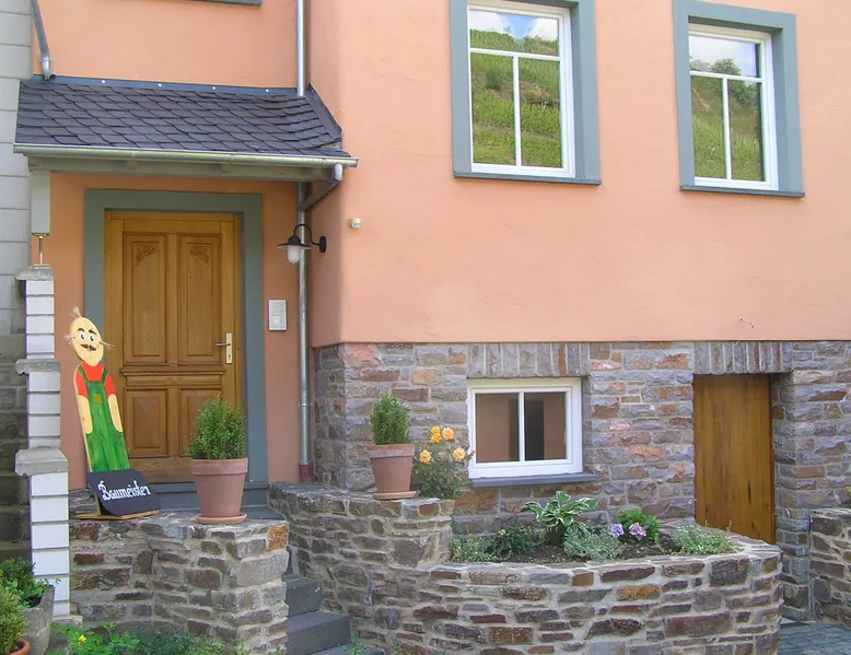 In the year 2003 we reconstructed this building in the classic style of a Mosel mansion on the foundation of an old wine-grower's house. Just 150 m away from the river Mosel, at the Pommerbach brook, the building enjoys perfect peace and quiet. You can relax without getting disturbed by the noise of the railway, road or ships. We have our own parking spaces right at the house. The house fits in with the traditional built-up area of the old village centre, yet there is enough space for a small lawn where you can sit and have a barbecue. Bikes can be stowed away safely. Apart from the holiday home, our own office for architectural and engineering services is located in the building. During the day we are at your service anytime for information and convenience. In the evening the peace and quiet are all yours. Having been completed in October 2005, the holiday home can now be rented. Wine-growers of the Mosel and wine tastings: Our small village at the Mosel is still deeply rooted in the wine growing business. Among our 500 inhabitants you will find 12 full-time wine-growers and a great many others who work part-time in their vineyards. If wine-tasting is your pleasure, you might consider coming to us in the wintertime. The wine-growers are then not so busy in the vineyards as they are at other times. Instead they work in the cellars and can take their time to talk shop with you about the Mosel wine and how it matures, or you can taste the wine straight from the wood. We should be glad to get you in touch with our local wine-growers or make appointments for you, just as you like. Hiking at the Mosel and in the Eifel: The mild climate of the Mosel and the picturesque adjacent valleys is ideal for long hikes even in the winter. The forests in those valleys will protect you against the wind and it does not rain as heavily as in the plains. In the summer you can enjoy the shade of the trees. Of course we will gladly take you to those places in our area where you want to start your hikes so that you do not depend on your car. On horseback at the Mosel and in the Eifel: Do you like going on horseback? Do you also suffer from this last incurable female disease, going on horseback? If so, talk to my wife and she will lead you on a ride through parts of the Eifel and the Mosel valleys. Since we only have access to a limited number of horses, however, only two people can come along. If you want to take your own horse along when you go on holiday we would be glad to find a stable and paddock for you at very favourable prices.
