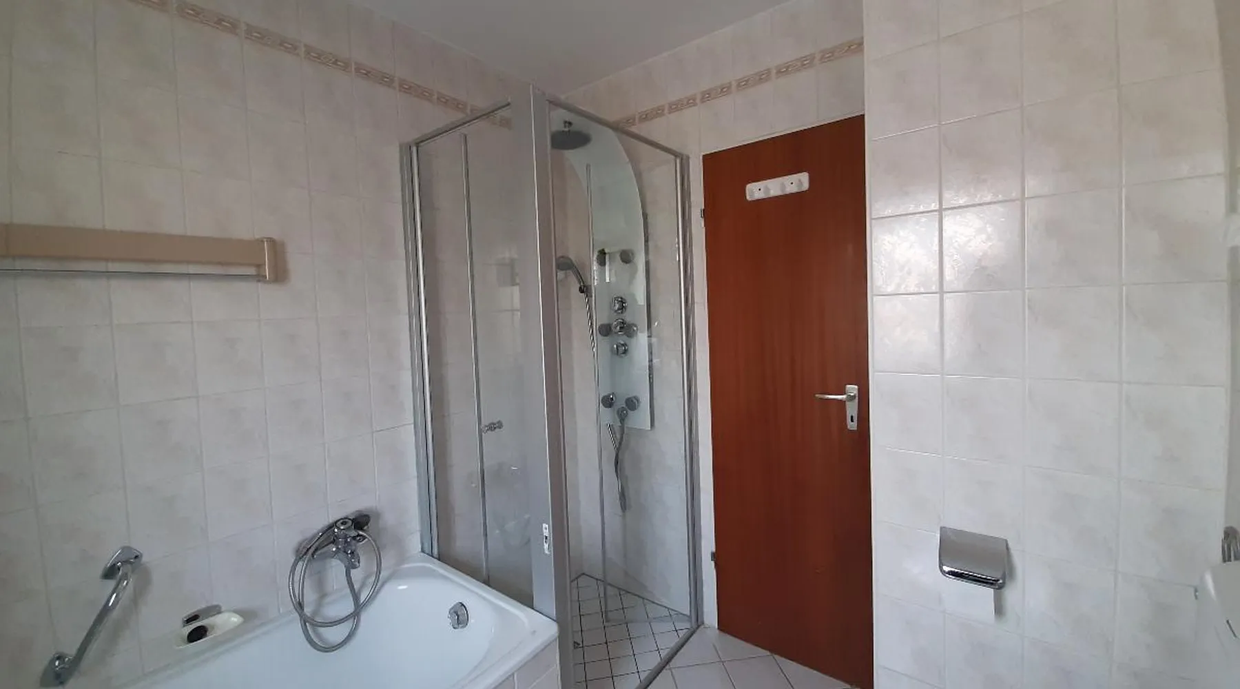Luxury apartment with access to the garden via a small conservatory. Spacious bedroom with box spring bed for 2 people, spacious closet and direct access to the conservatory/garden. Fully equipped kitchen with fridge, freezer, oven, stove, dishwasher, microwave, microwave, kettle, kettle, coffee machine and toaster. Spacious living room with TV, sofa bed for a third person and dining area with 3 seats. Modern bath with shower, bathtub and hair dryer.