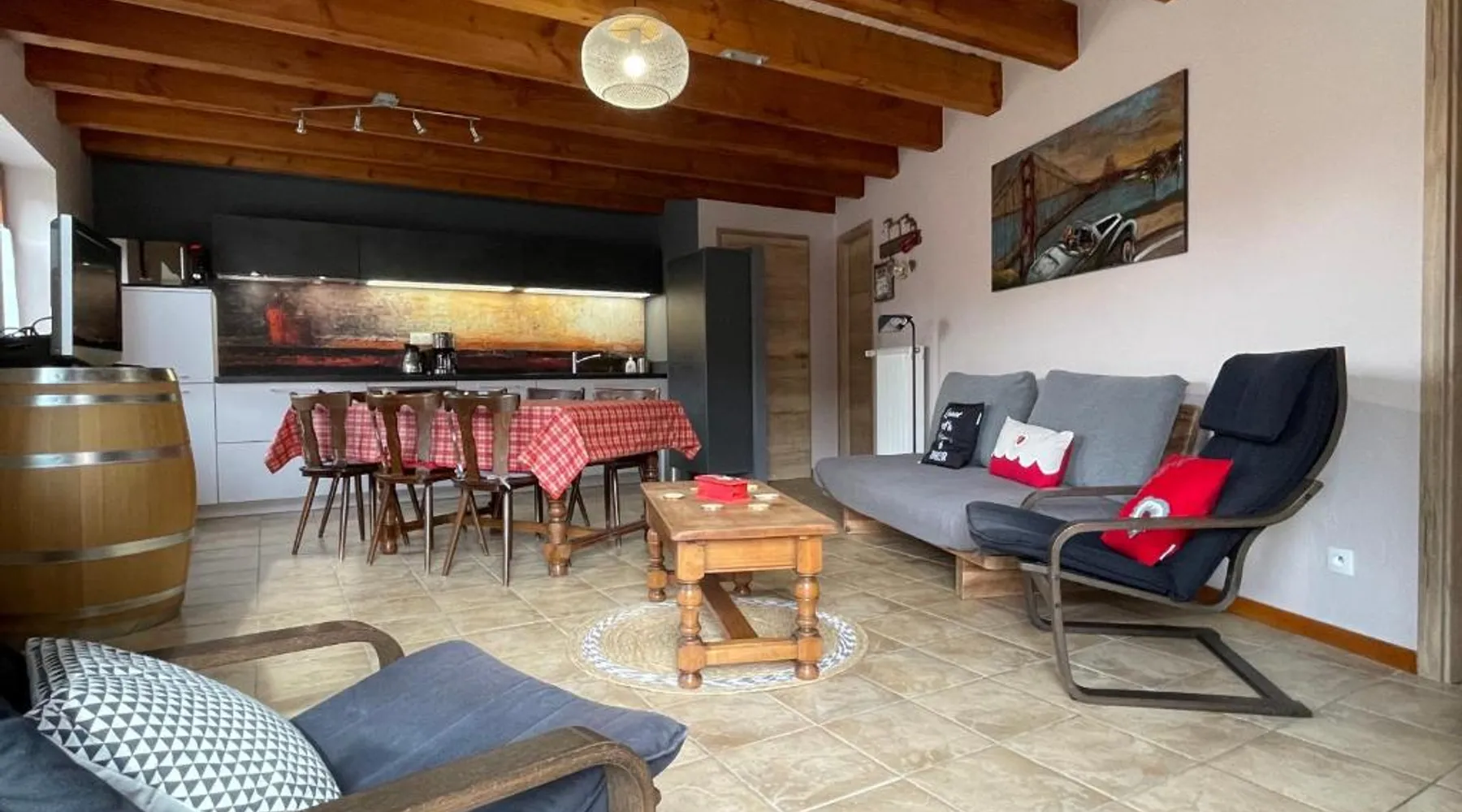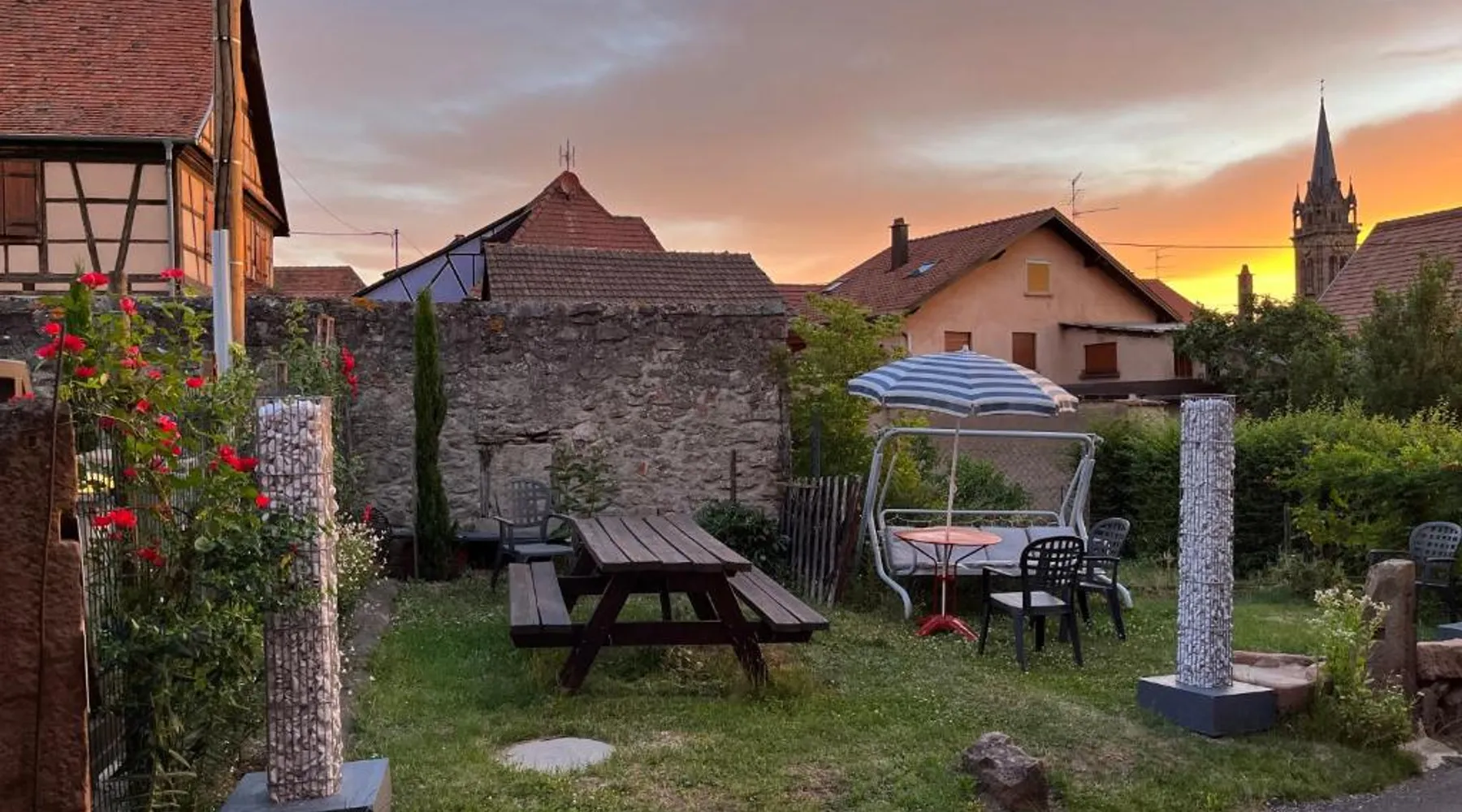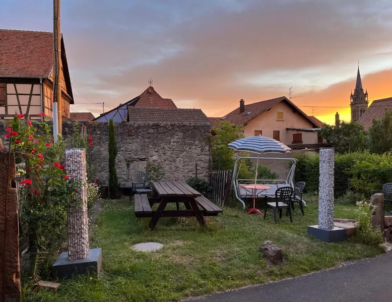 Comfortable Accommodations: Beck Domaine du Rempart in Dambach-la-Ville offers a 2-star holiday home with a garden and free WiFi. The property features family rooms, an outdoor seating area, and a picnic spot. Modern Amenities: Guests can enjoy a fully equipped kitchen, washing machine, private bathroom, and barbecue facilities. Additional amenities include a dishwasher, microwave, and TV. Convenient Location: Located 22 mi from Strasbourg International Airport, the property is near attractions such as Le Haut Koenigsbourg Castle (11 mi) and Colmar Expo (19 mi). Free on-site private parking is available. Guest Satisfaction: Highly rated by guests for its friendly host and excellent location. Featuring a private entrance, this holiday home also consists of 1 bedroom, a seating area and 1 bathroom with a walk-in shower and a hairdryer. Guests will find a stovetop, a refrigerator, a dishwasher and kitchenware in the well-fitted kitchen. The holiday home also provides guests with a barbecue. This holiday home features a washing machine, TV, garden views, as well as wine/champagne for guests. The unit offers 2 beds.