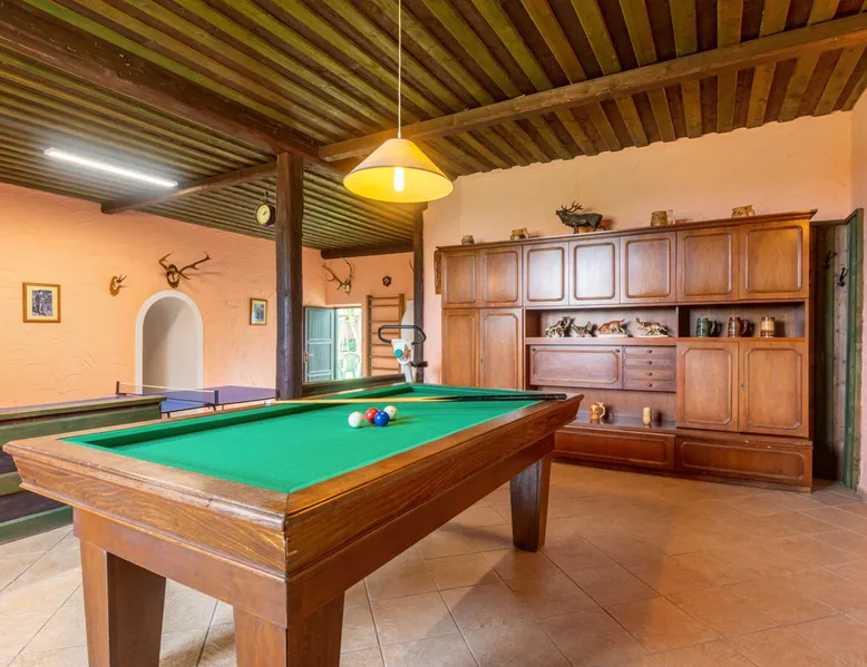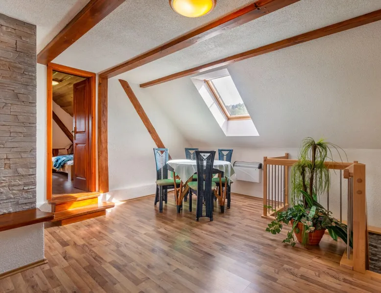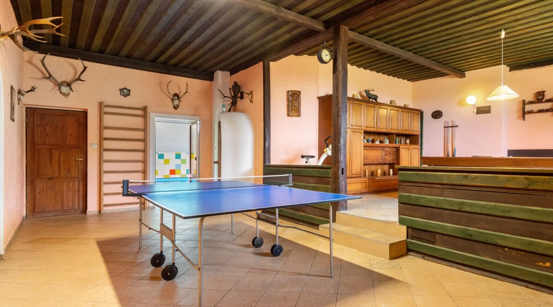 All discounts are already included, please go ahead and book the property if your travel dates are available. Below please see all the listing details 6-room house 140 m2 on 2 levels. Rustic and cosy furnishings: living room with satellite TV (flat screen), radio and DVD. Billiard room with open-hearth fireplace and dining table. 1 room with 1 double bed. 1 room with 1 double bed. The space Kitchen (oven, dishwasher, 4 ceramic glass hob hotplates, toaster, kettle, microwave, electric coffee machine) with dining nook. Shower, shower/bidet/WC, double hand-basin, Sauna. Electric heating. Upper floor: 1 room with sloping ceilings with 1 double bed. 1 room with sloping ceilings with 1 double bed. Shower/WC. Electric heating. Patio. Terrace furniture, barbecue. Panoramic view. Facilities: washing machine, sauna, children's high chair, baby cot. Internet (WiFi, free). Please note: non-smokers only. Maximum 3 pets/ dogs allowed. - Included services: Final cleaning (Basic cleaning is always carried out by the guest) Laundry (initial supply of bed linen and towels) outdoor parking space Wireless internet access (WIFI) Additional service charges may have to be paid locally on-site, see house rules and house manual for details. Please don't hesitate to contact us should you have any questions. Thank you. Very beautiful country house "Haus Polivka", 400 m a.s.l., surrounded by meadows and fields. In the resort Hůrka u Němčic, 12 km from the centre of Klatovy, 50 km from the centre of Bayerisch Eisenstein, in a quiet, sunny position, 15 km from the skiing area. Private: property 3'200 m2 (fenced), lawn and trees, meadow, swimming pool, indoor pool heated (6 x 3 m, depth 150 cm, seasonal availability: 01.Jan. - 31.Dec.). Tennis, table tennis, basketball, volleyball, badminton, volleyball court, terrace, garden furniture, barbecue, children's playground (swing). In the house: sauna, billiard table, playroom. Parking (for 6 cars) at the house. Shop 3 km, supermarket 12 km, restaurant 12 km, bus stop "Němčice" 1 km, railway station "Klatovy" 12 km, outdoor swimming pool 12 km, indoor swimming pool 12 km. Ski lift 15 km, chair lift 40 km, slopes 40 km, ski rental 40 km, ski school 40 km, children's ski school 40 km. Other things to note 1. Availability All open periods are instantly bookable. Please choose your dates and confirm your reservation without waiting for host approval. 2. Pricing We always offer you our best price and are unable to offer additional discounts. Please select your preferred travel dates to view the final price. Optional services described in the house rules can be booked after successful reservation by contacting us directly. 3. Check-in information You will receive the travel information with the exact address of the listing, the location for key collection and the contact details of your keyholder 28 days before arrival only if the pre check-in has been completed. In order to ensure a smooth handover of keys, we kindly ask you to contact the key holder by email 7 days before arrival, especially if your arrival takes place outside the stated check-in times. Please note, without an appointment, arrivals outside the stated check-in times will not be possible. 4. House Rules We share all property details in the full description. Please read both the description and the house rules. If available you will find optional amenities described in the house rules, which can be requested by contacting us directly.
