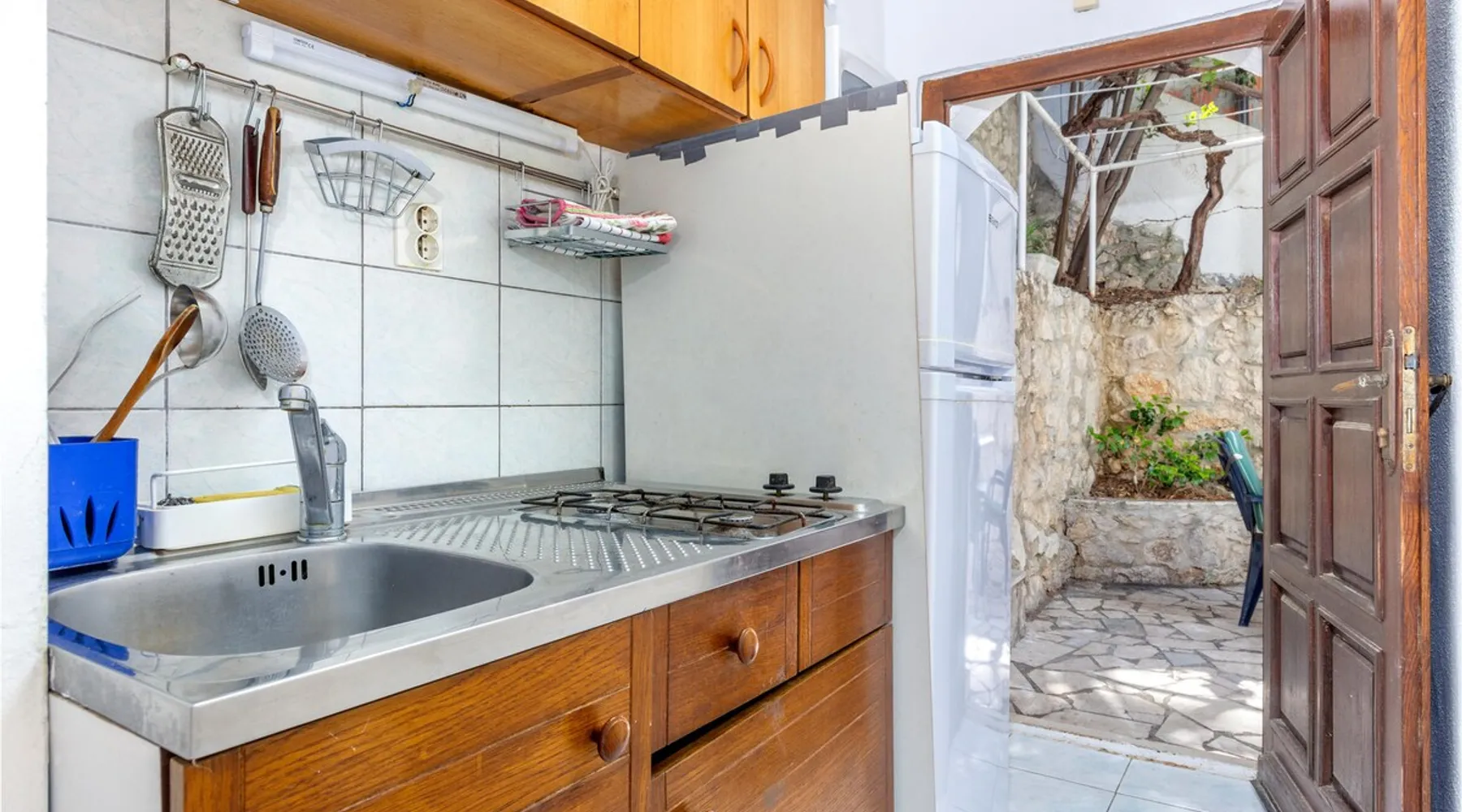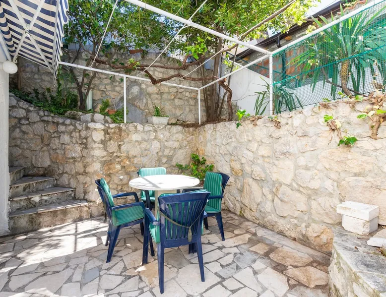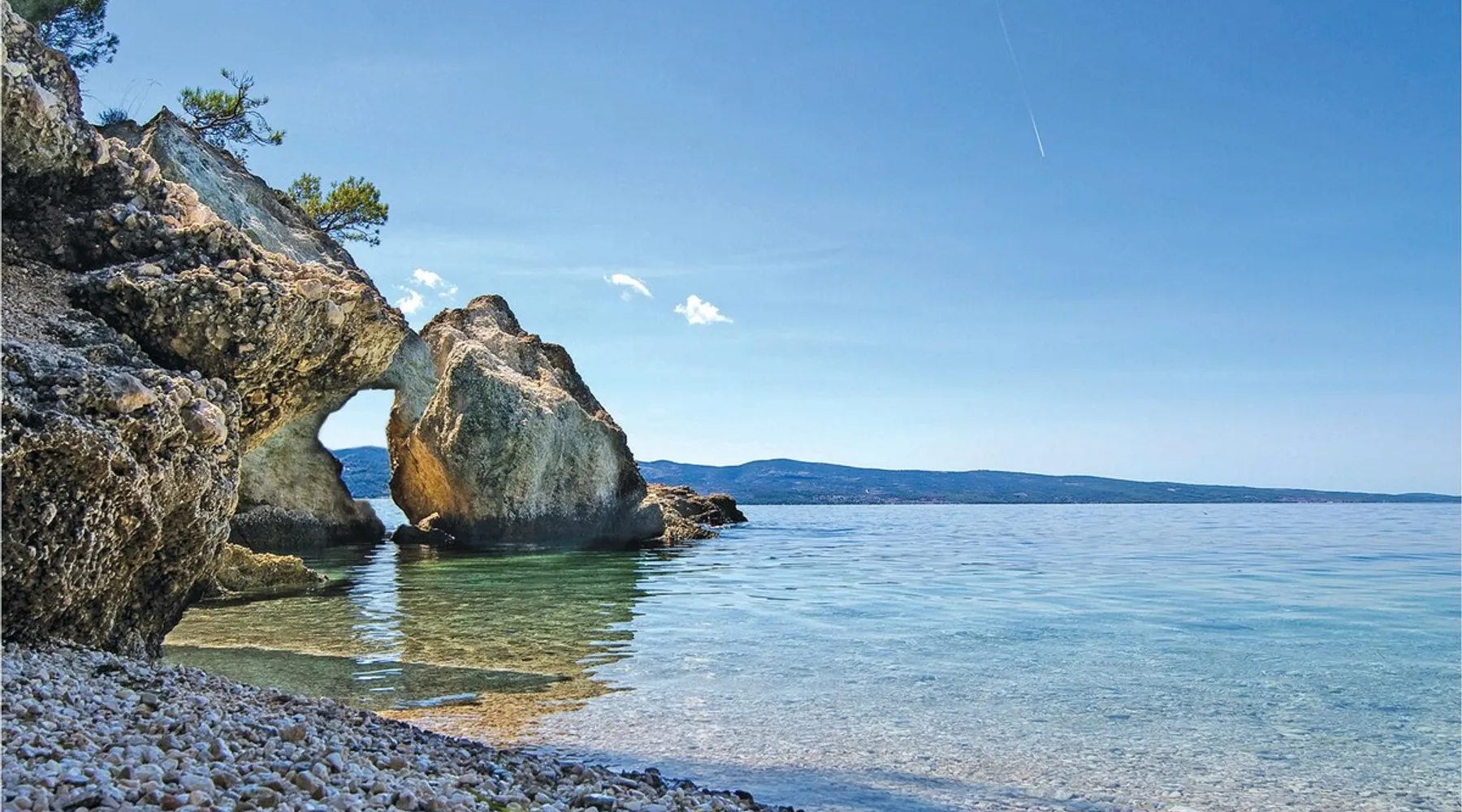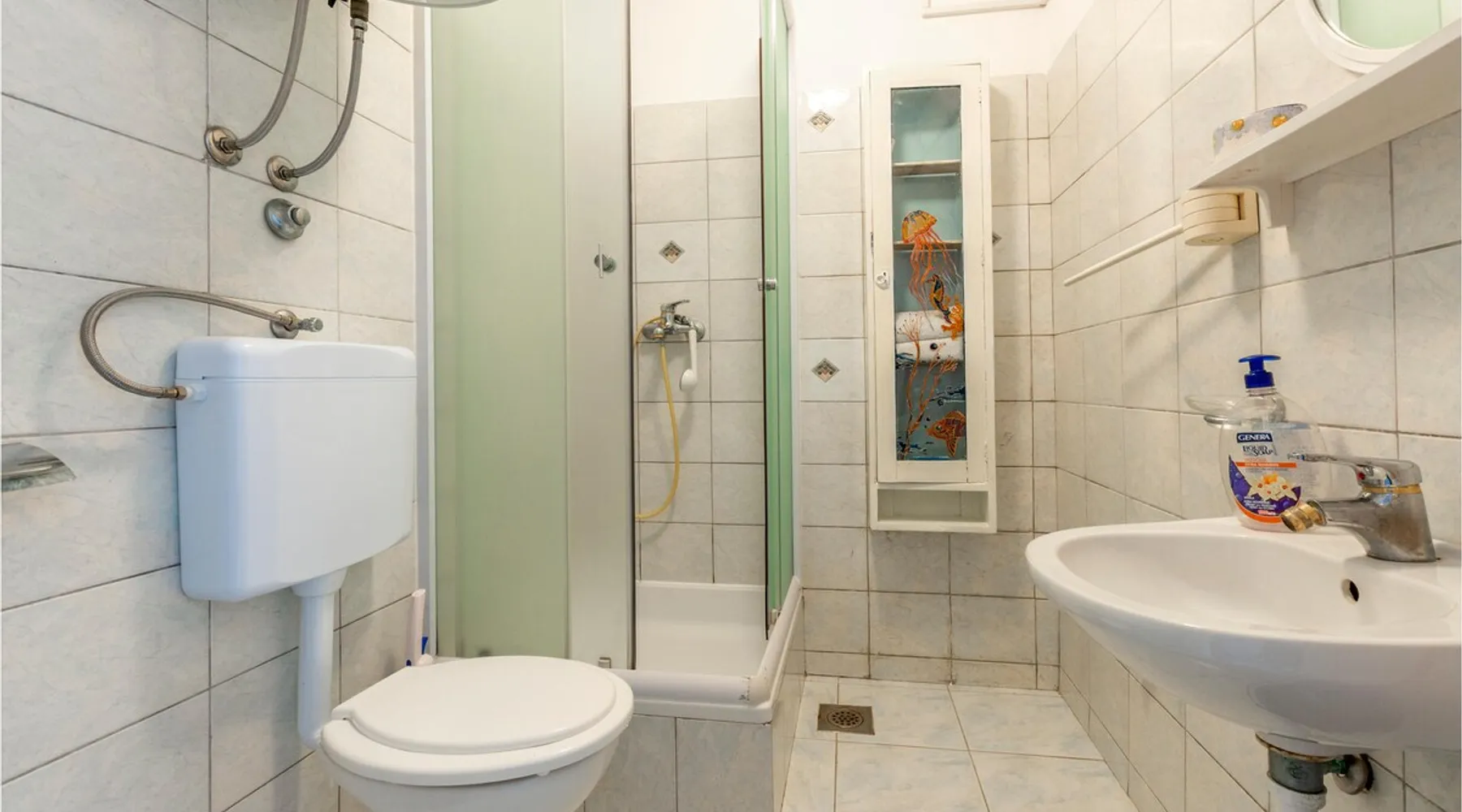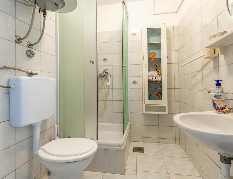 Experience a fantastic panoramic view in this vacation apartment by the sea. The space Experience a fantastic panoramic view in this vacation apartment by the sea. The apartment awaits its guests on the 1st floor of a house with several vacation apartments, each with separate exterior entrances. With 2 bedrooms, one with a double bed and one with 2 single beds, the apartment can accommodate 4 people. The interior is functional and simple and you can spend a nice vacation by the sea here in any season. Relax on the open or covered terrace and prepare various delicacies on the shared grill. An outdoor shower is also available. Comfortable deckchairs are available for all apartments at the nearby concrete beach. Not far from here you can rent bicycles or a boat, play tennis or visit a gym. Look forward to an eventful vacation in the apartment by the sea! Can comfortably fit up to 4 people Other things to note Please note that: Bed linen and towels are included in the room rate in 2025. Consumption costs are included in the room rate.