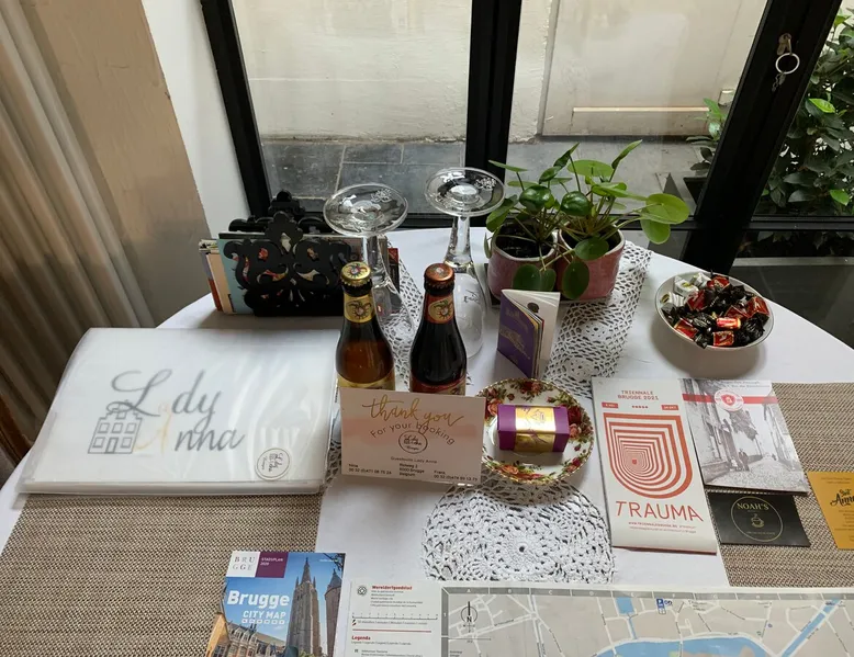 Luxury apartment ideally located in the heart of the Unesco World Heritage city of Bruges The guesthouse is inspired by contemporary art from Nina Verschaetse as well as the rich Flemisch Culture. For 2 persons - minimum stay 2 nights The space The living room and kitchen are in the same room and decorated with contemporary and antique furniture. Oak wooden kitchen, doors and natural stone floors. The kitchen is fully equipped with microwave/oven/grill/stove and dishwasser. The bedroom (2 persons) is on the same floor - no steps inside the house. The bedroom is nicely furnished and offers a king size bed (boxspring) which can be adapted to your sleeping position (can be adapted electronical). Enough space to hang or lay your clothes in the adjacent dressing cabinet. Allergy-free bedding. The bathroom is nicely furnished and offers a separate rainshower and toilet, and separate washsinks. Nice apartment located in central Bruges, (Sint Anna Kwartier), close to the Central Market, the St Anna Church, Guido Gezelle Museum, the Belfry of Bruges, .... about 7 minutes walk Additional points of interest included Basilica of the Holy Blood, Concert Building of Bruges, Old st-John Hospital, Saint Salvator's Cathedral, Groeningelmuseum, Bruges Concert Hall, Bruges City Theathre and Church of Our Lady A truly recommended apartment in Bruges. Feel at home in the medieval, quiet centre of Bruges.