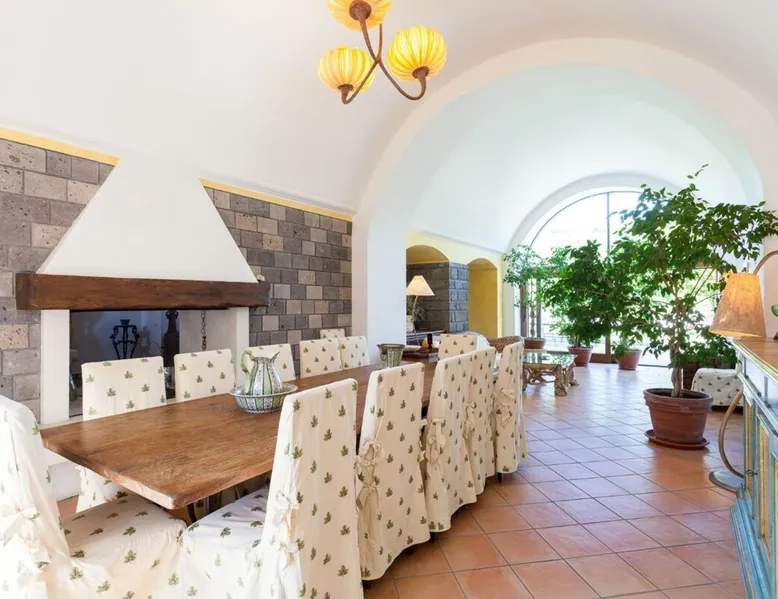 Villa Polluce located in Sant'Agata sui due Golfi within walking distance to center of town, with private swimming pool and large garden The space Villa Polluce is located in the pretty top hill village of Sant' Agata sui due Golfi, which is well-known for the famous restaurant "Don Alfonso", one of the most exclusive restaurants in Italy. However, even if this little village is situated on the top of a hill it has everything at hand, therefore you will not miss anything during your holiday. This villa is charming, elegant and classic at the same time. The villa is immersed in a very large garden that includes a fully equipped outdoor kitchen where guests can enjoy barbecues and pizza party. The swimming pool is situated on the other side of the garden and it is approximately sixty square metres large, with a space provided with sunbeds and umbrellas where you can spend your time in total relax, enjoying a long cocktail or simply admiring the sunset. Villa Polluce can accommodate up to ten guests and it consists of four levels: The ground floor, which is the main entrance of the villa, leads to a very large lounge/living room, finely decorated and it is divided in two areas by an ancient but elegant chimney. The kitchen is a professional one with any tool at your disposal and there you can learn the secrets of our cuisine. From the kitchen you can reach directly the garden, where the barbecue area and the pizza oven are located. At the ground floor there is one of the bedrooms: it is a double room with an en suite bathroom with shower. A lower floor that you can reach by a staircase where is a laundry area where you can wash and iron your clothes. First floor: where there are three bedrooms: one single room and two double rooms, one of them has got an en suite bathroom with jacuzzi, while the other one has got another bathroom with shower. Second floor: on the top floor there is another double bedroom with a half bathroom (no tub, no shower). A private parking is also available for the guests of the villa. CIN: IT * B47YECSPUT Neighborhood and transportation Sant'Agata sui due Golfi is located near Massalubrense, in the Sorrento peninsula between the gulfs of Salerno and Naples. In this part of the Sorrento peninsula there are some of the most beautiful beaches. Finally from this area you can reach Sorrento in about 20 minutes by car. Distance from the centre: 350 m Distance from the railway: 7 Km Distance from the harbour: 7 Km Distance from the sea: 7 Km Rental rules Minimum stay 3 nights. They include the exclusive use of the property, the change of bed linen twice a week and of the towels daily. House cleaning included (3 hours per day, from Monday to Saturday). Use of the internal elevator excluded. Heating is separate and the rate is € 70.00 per day. Check-in time: from 3:00 pm Check-out time: by 10:00 am City tax: € 3,00 per day, per person (from 18 years onwards) Cot: € 50 per stay (on request) Late check-in fee from 9pm € 50,00 Important notice: a deposit of € 500,00 has to be paid in advance in case of damages and it will be returned at the end of the stay. Assistance We provide assistance during your stay, we handle check-in/checkout procedures, we give all kind of useful suggestions and tips. Attractions: Neighborhood and transportation Sant'Agata sui due Golfi is located near Massalubrense, in the Sorrento peninsula between the gulfs of Salerno and Naples. In this part of the Sorrento peninsula there are some of the most beautiful beaches. Finally from this area you can reach Sorrento in about 20 minutes by car. Distance from the centre: 350 m Distance from the railway: 7 Km Distance from the harbour: 7 Km Distance from the sea: 7 Km Registration Details IT063044B47YECSPUT