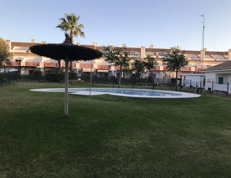 Townhouse with 3 bedrooms with 1 toilet and 2 bathrooms. It also has 3 terraces, one large, with table and hammocks and two smaller ones that correspond to two of the rooms. All overlooking the golf course and the other room has a window overlooking the pool. In all areas of the house you can enjoy air conditioning. It is also complemented with two parking spaces and a storage room. The house has the best location of the urbanization, giving the front towards the pool (OPEN POOL FROM MAY 1 TO SEPTEMBER 31) and the back towards the golf course. Within the urbanization there are also 3 paddle tennis courts, swimming pool, gardens and benches to rest. Inside the storage room we have a kayak and several bicycles for use and enjoyment. The beach is about 3 minutes walk, the descent is at the end of the "Arrow of the Rompido", with unbeatable views and in a privileged environment. About 50 meters away there is a children's playground with children's go-kart tracks, mini golf and cafeteria, it also has the tourist train stop. For those looking for a little more adventure about 2 km away is the first ferry that crosses towards the "Arrow of the Rompido", where you can see several kilometers of virgin beaches. It is also about 10 km from the aquopolis water park, a professional kart track and paintball facilities, all located in the same place.