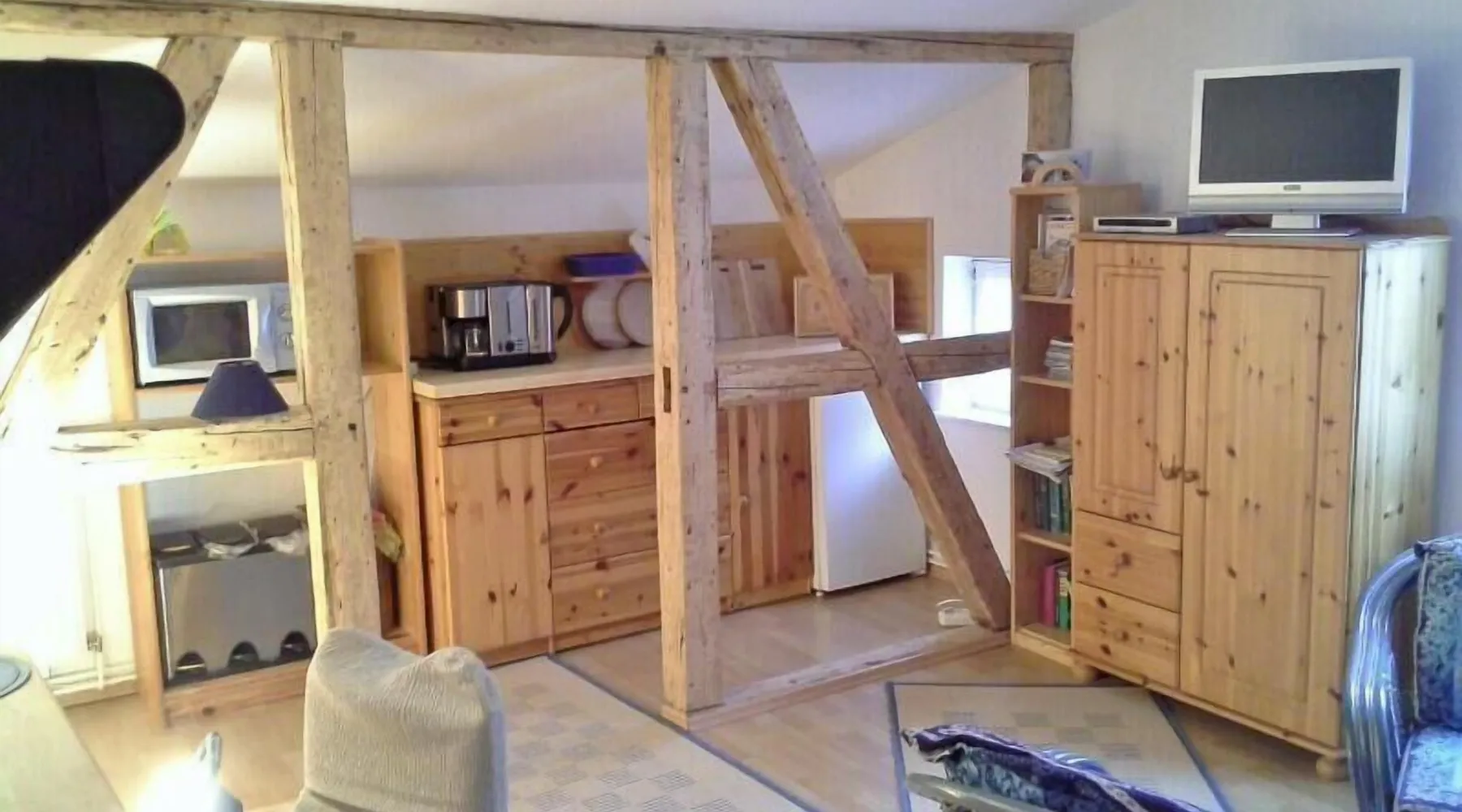 ED Refnr. 2770456 Comfortably furnished holiday apartments in a brick house built in 1900, with a big garden for shared use The apartments are centrally located, opposite the beautiful Schlosspark, not far from the villas built in an Italian style, called Circus. You can share use of the garden with seating. A car parking space is available and there is space to park bicycles on site. Putbus has a good range of shops, as well as cafés, a theatre, museums, a harbour with boat tours and beaches, also within walking distance. There is a cycle path network around Putbus, inviting you to go on cycle tours through beautiful nature, along the bodden and the white beaches, which are also pleasant to stroll along. If you would prefer to visit the larger beaches such as Binz, Baabe and Göhren, there are connections with the Rasender Roland narrow-gauge train. Cheap weekly tickets are available, enabling leisurely and relaxing visits without having to look for a car parking space. The Störtebeker festival is held every year from June to September, making a visit unforgettable. This two-room apartment is in the attic and is suitable for two people. The living and sleeping room, with a sofa and a double bed (1,8m x 2,0m), are separated by old beams. The apartment also has a bathroom with a shower and a pantry kitchen including a coffee machine, double-induction hob, dishwasher, fridge with freezer compartment, microwave with a grill, kettle and toaster. House information: Bathrooms: 1; Bedroom: 1; Detached building; Floor: 1; Property area: 860 m²; Total number of floors in the building: 1; Year of construction: 1900; Year of renovation: 2012 Sleeping facilities: Number of double beds (1.80 m width): 1 Living area: Radio; Satellite-tv; TV Bath/WC: Hairdryer; Hairdryer; Shower Kitchen: Coffee machine; Dishwasher; Freezer; Fridge; Microwave; Stove; Toaster; Water boiler Other: Heating; Non-smoking object; Ventilator; Wifi Extra costs: - Bed linen: included in price . - Final cleaning: included in price . - energy costs: included in price . - dishtowels: Costs amounting to 0.01 EUR (optional). - Towels: to be brought by tenant (Mandatory). Additional information: - Property area: 860 m²