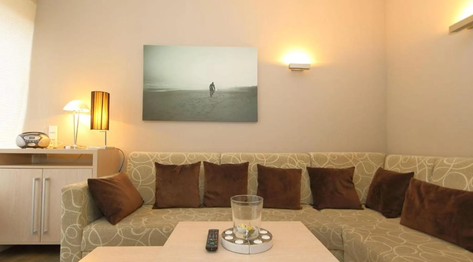 Spacious Accommodations: Strandlaeufer-Sylt in Westerland offers a spacious apartment with two bedrooms and two bathrooms. The property includes a fully equipped kitchenette, washing machine, and a comfortable living area. Modern Amenities: Guests enjoy free WiFi, a elevator, and an outdoor seating area. The apartment features a bath, tea and coffee maker, outdoor furniture, refrigerator, shower, electric kettle, kitchenware, oven, stovetop, and toaster. Prime Location: Located 1.2 mi from Sylt Airport, the apartment is a short walk from Westerland Beach (4 minutes) and Waterpark Sylter Welle (984 feet). Nearby attractions include Westerland Main Station (0.8 mi) and Sylt Aquarium (13-minute walk). This spacious apartment features 2 bedrooms, a kitchenette and 2 bathrooms with a bath and a shower. In the kitchenette, guests will find a stovetop, a refrigerator, kitchenware and an oven. This apartment has a washing machine, a tea and coffee maker, a TV and outdoor furniture. The unit has 4 beds.