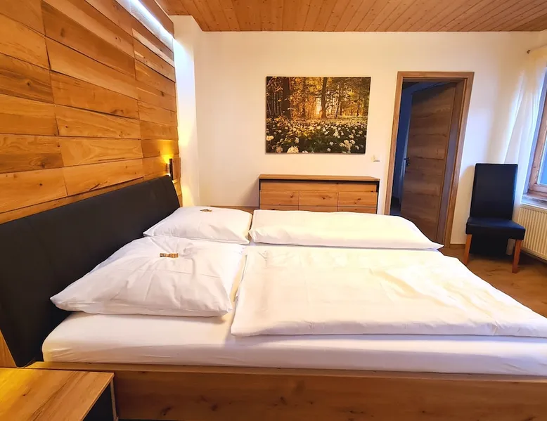 Our Apartment 1 is located on the 1st floor of the house. It has about 50 square meters of living space and is suitable for 2-4 people. The apartment consists of kitchen, living/dining room, separate bedrooms (one bedroom is a through room) and shower with toilet. A separate toilet is also available. It is cozy and comfortably furnished. The apartment has two private balconies, in the southeast and west. A baby high chair is available for a toddler when desired. The space In addition, you are at your disposal: Free wifi cooking facilities with dishes and cutlery Refrigerator 2 balconies Cable TV Radio & CD/DVD-Player Parking directly at the house