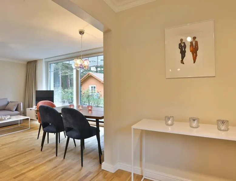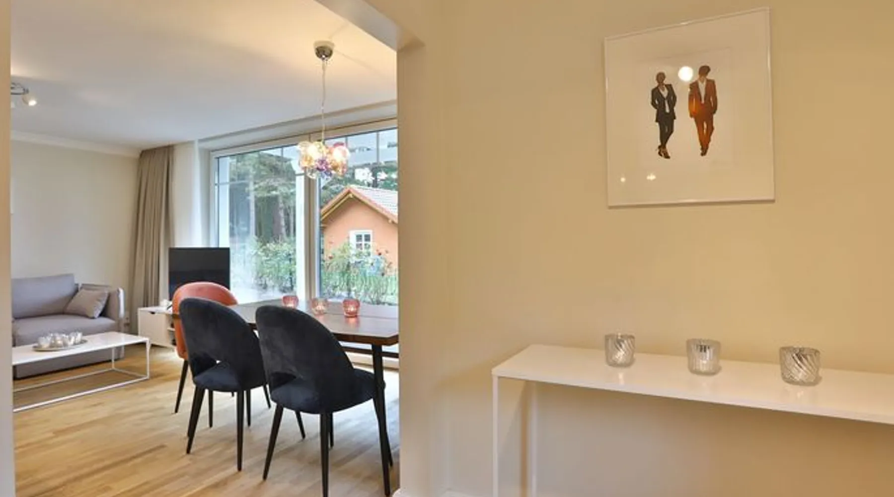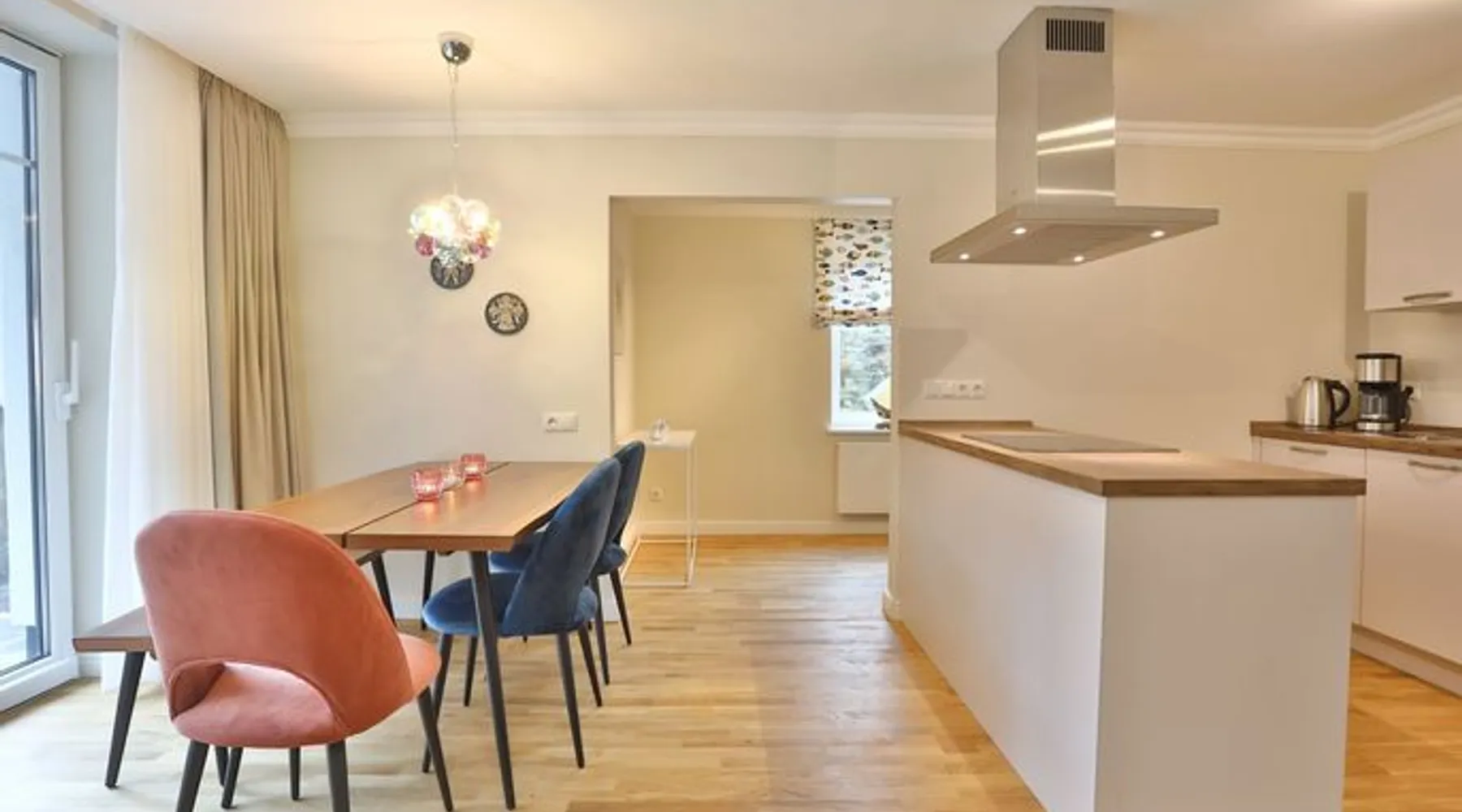 Welcome to the Naturidyll Mariendorf in the beautiful Baltic Sea resort of Mönchgut! Mariendorf is a one-way village (one-sided built along the road) surrounded by the Southeast-Rügen Biosphere Reserve and untouched nature. Especially nature lovers will get their money's worth (highlight: view from Schafberg!). In Mariendorf is the Bodden Hagensche Wiek, with a charming natural stand, a stone's throw of only about 200 m from the house forest by the sea! Cyclists can go from ... The space Best suited for 1 person. Offers space for a maximum of 4 people. Size: 69 m² Other things to note ... explore the beautiful Baltic Sea resort of Mönchgut in all directions. A bus stop is just steps away from the house. The sandy beaches towards Lobbe to Thiessow can be reached by bike or car in just a few minutes. The Baltic Sea resort Mönchgut is a great starting point for numerous hikes and walks. The spa card of Mönchgut offers excellent services, feel free to inform yourself in advance on the homepage of the Baltic Sea resort Mönchgut. The Middelhagen spa administration is only a few kilometers away (e.g. for purchasing fishing cards and information). Good to know: The spa cards are already prepared in the apartment upon arrival. The special thing about the Wald am Meer house is the large natural forest property (about 18,000 sq. m.). There are deer, rabbits, bats and many forest dwellers to watch and a tennis race is definitely not present! Depending on the season, there is always a lot to discover. The more than 100-year-old house Wald am Meer was lovingly renovated in 2020. In the main house there are 4 apartments called Mammutbaum, Schafberg, Zickersche Berge and Hagensche Wiek. The apartment Mammutbaum has an open, cozy and modern living and dining area, 2 bedrooms and 1 bathroom. From the living and dining area, a large window sliding element leads to a terrace, which is delimited by a rose hedge. The apartment receives a very special feel-good atmosphere due to the partly, old and very well preserved beam location. Equipped with a fireplace, the apartment also exudes a feel-good atmosphere in autumn and winter, especially after long and extensive walks. < br/> < br/> < br/> < br/> < br/> < br/> < br/> [nbsp] Welcome to Naturidyll Mariendorf in the beautiful Baltic Sea resort of Mönchgut! Mariendorf is a one-sided village (built on one side along the road) surrounded by the biosphere reserve Southeast Rügen and untouched nature. Especially nature lovers will get their money's worth (highlight: view from the Schafberg!). In Mariendorf is the Bodden Hagensche Wiek, with a charming nature stand, a stone's throw of only about 200 m from the house Wald am Meer! Cyclists can explore the beautiful Baltic Sea resort of Mönchgut in all directions from the holiday home. A bus stop is just steps away from the house. The sandy beaches towards Lobbe to Thiessow can be reached by bike or car in just a few minutes. The Baltic Sea resort Mönchgut is a great starting point for numerous hikes and walks. The spa card of Mönchgut offers excellent services, feel free to inform yourself in advance on the homepage of the Baltic Sea resort Mönchgut. The Middelhagen spa administration is only a few kilometers away (e.g. for purchasing fishing cards and information). Good to know: The spa cards are already prepared in the apartment upon arrival. The special thing about the Wald am Meer house is the large natural forest property (about 18,000 square meters). There are deer, rabbits, bats and many forest dwellers to watch and a tennis race is definitely not present! Depending on the season, there is always a lot to discover. The more than 100-year-old house Wald am Meer was lovingly renovated in 2020. In the main house there are 4 apartments called Mammutbaum, Schafberg, Zickersche Berge and Hagensche Wiek. Apartment Mammutbaum has an open, cozy and modern living and dining area, 2 bedrooms and 1 bathroom. From the living and dining area, a large window sliding element leads to a terrace, which is delimited by a rose hedge. The apartment receives a very special feel-good atmosphere due to the partly, old and very well preserved beam location. Equipped with a fireplace, the apartment also exudes a feel-good atmosphere in autumn and winter, especially after long and extensive walks. Coming Soon: From 25.03.2024, the house Wald am Meer and the Reethus Red Beech receive a sauna quotation on the forest property. Car parking is available and do not have to be reserved in advance. The following languages are spoken: English, German