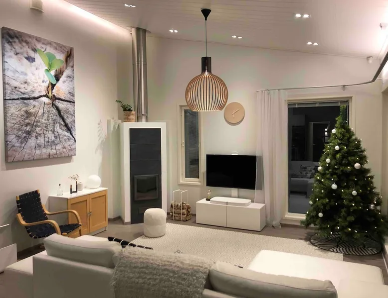 This modern semi-detached house offers you a wonderful opportunity to sense a traditional Finnish Christmas in a heaven of peace. Your mind will rest in the sparkling clean home for sure. Cozy house is surrounded by pure nature. This house is close to the city of Rovaniemi (approx. 5km - 7 min drive) and 12 km drive to Santa Claus Village/Rovaniemi Airport. INSTAGRAM: reindeerspotapartment The space Very peaceful living environment, 122 m² of living space, children's playroom, two bedrooms, baby equipment (high chair, bouncer, potty, baby bath, cot), large terrace which is is partly glazed and Jacuzzi which is embedded in the terrace. Other things to note The house is heated by ecological geothermal heat bump, so you don't need a fireplace.