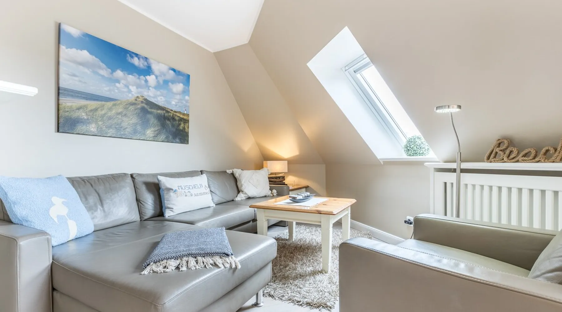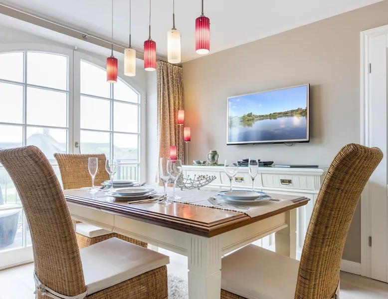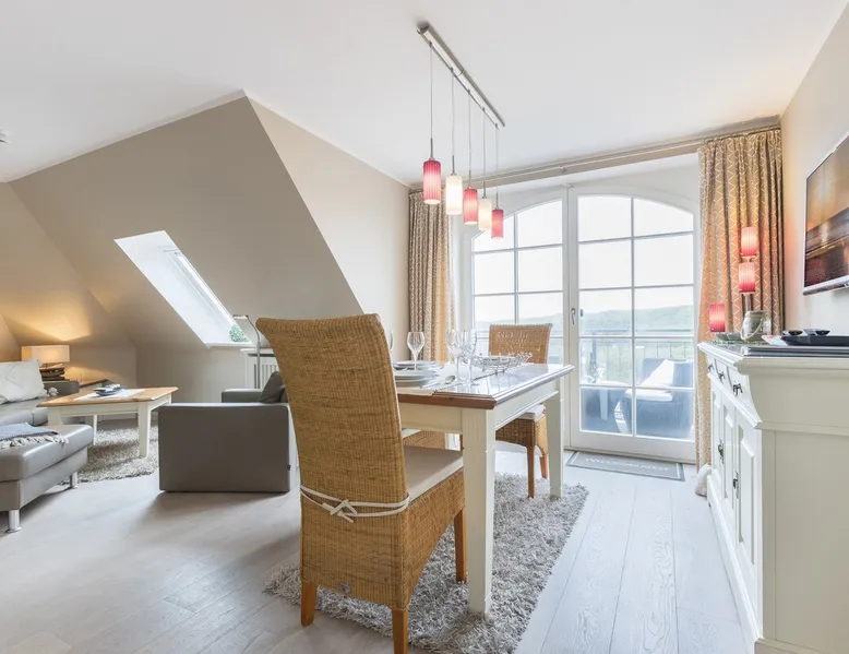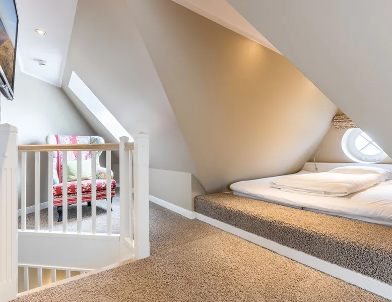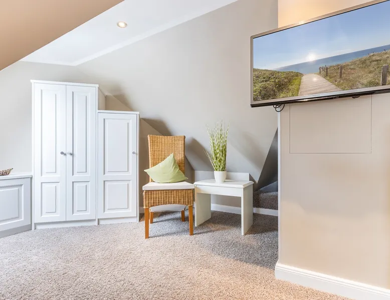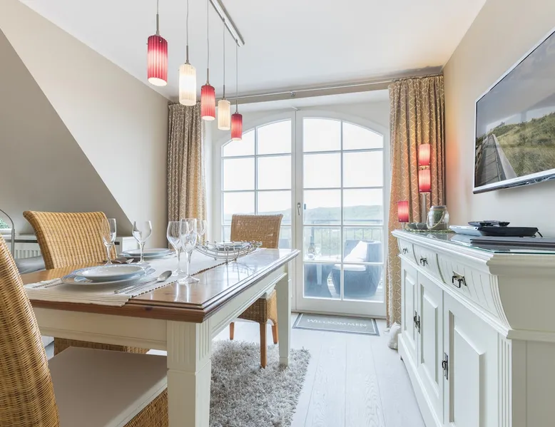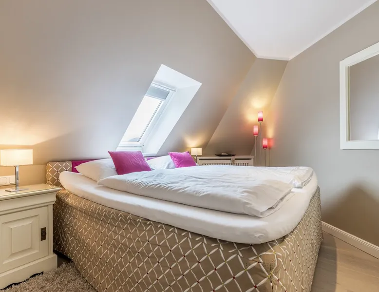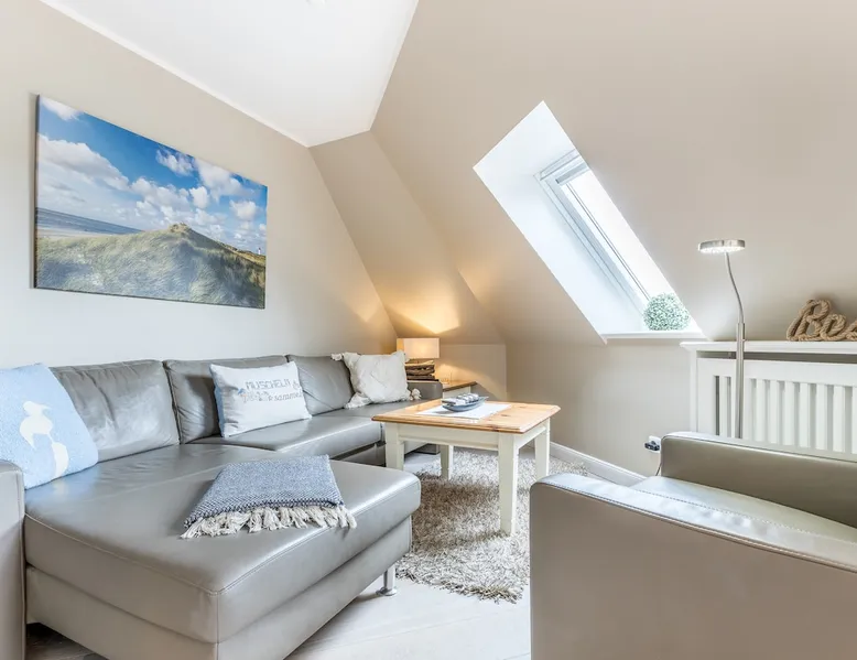 Enjoy unforgettable days in the apartment "Langeneß" in the beach residence on Sylt! This friendly home for up to 4 people has two bedrooms, a modern bathroom, and an open, well-equipped kitchen. Only 100 meters separate you from the beach, where relaxation and adventure are waiting for you. With amenities such as wifi, balcony and parking, this apartment is ideal for families and couples. Book your perfect Sylt vacation now! Other things to note Are you looking for a place to stay centrally located for your holiday on Sylt? The beach crossing almost at your doorstep? Then the Haus Strandresidenz with the apartment Langeneß is for you. The house is located in the heart of the island, the city of Westerland, and offers you everything the holiday heart desires if you want to travel with up to three people. On the upper floor of the apartment Langeneß is the living room with couch corner, 3D flat-screen TV and dining area. From here you can access your balcony, furnished with garden furniture from April to October. The kitchenette is well equipped with an oven, microwave, dishwasher and Nespresso coffee machine, so you won't lack anything. On the same floor there is a bedroom with a box spring double bed (180 x 200 cm) and a bathroom with bath, shower and toilet. In the attic of the apartment you find another room with single bunk bed (160 x 200cm) and a flat-screen TV. Westerland offers something for every holiday flavor, from shopping to numerous restaurants to long beach walks. In addition, from here you can reach the surrounding island towns such as Wenningstedt or Keitum in a few minutes by car or public transport. It's a non-smoking apartment where no animals are allowed. You will find a parking space right by the house. Amenities include: 3-room apartment with approx. 75 sqm of living space in the upper and attic for three people Upper floor: living room with Phillips 3D TV, radio, Blu-ray player, CD player, iPod docking station, telephone and Wi-Fi, open kitchen with microwave, oven, dishwasher, filter coffee machine and Nespresso machine, bedroom with box-spring double bed (180 x 200 cm mattresses separated) and flat-screen TV, bathroom with bathtub, shower and toilet DG: a room with single bunk bed (160x200cm) and flat-screen TV Washing machine, dryer and safe in the house.