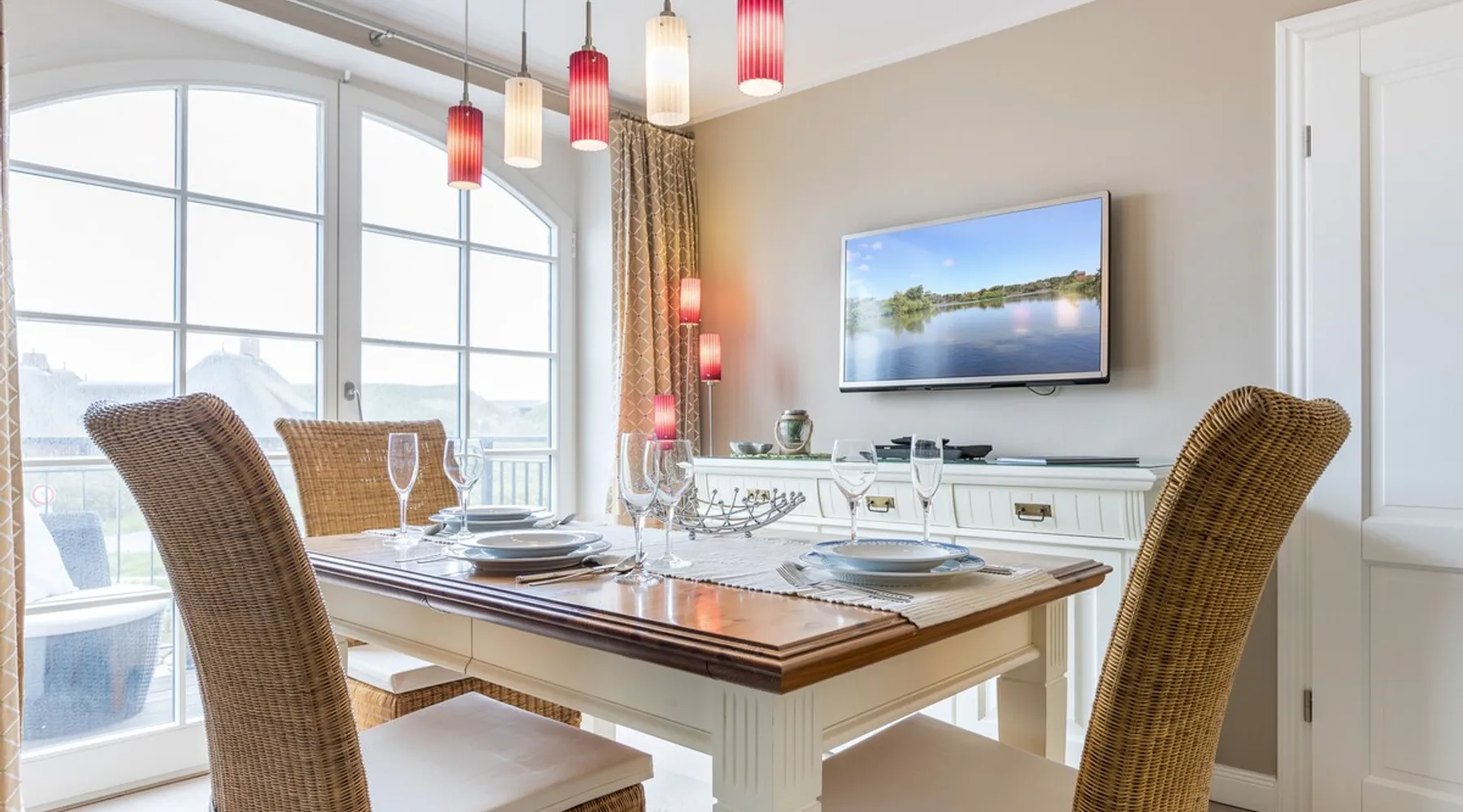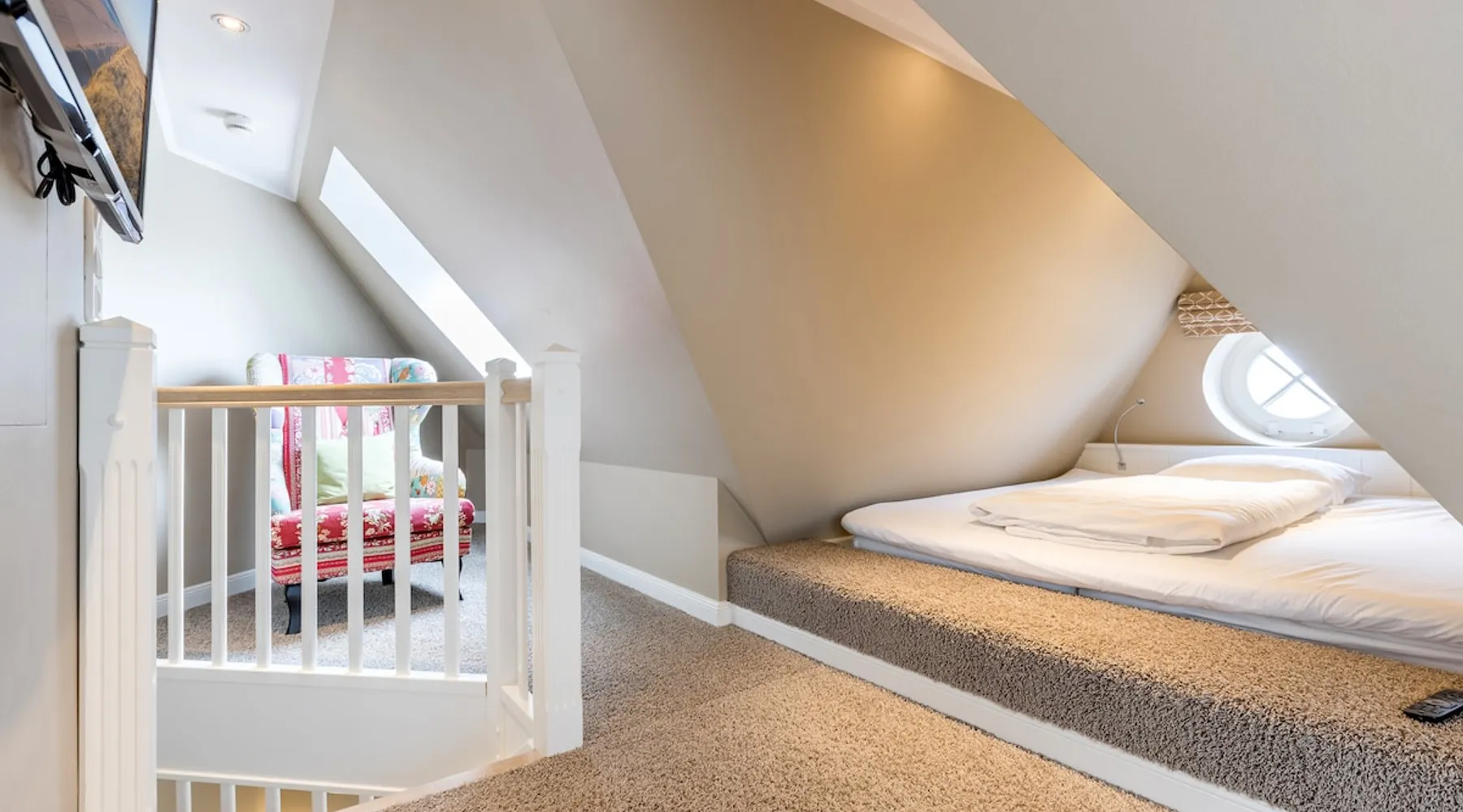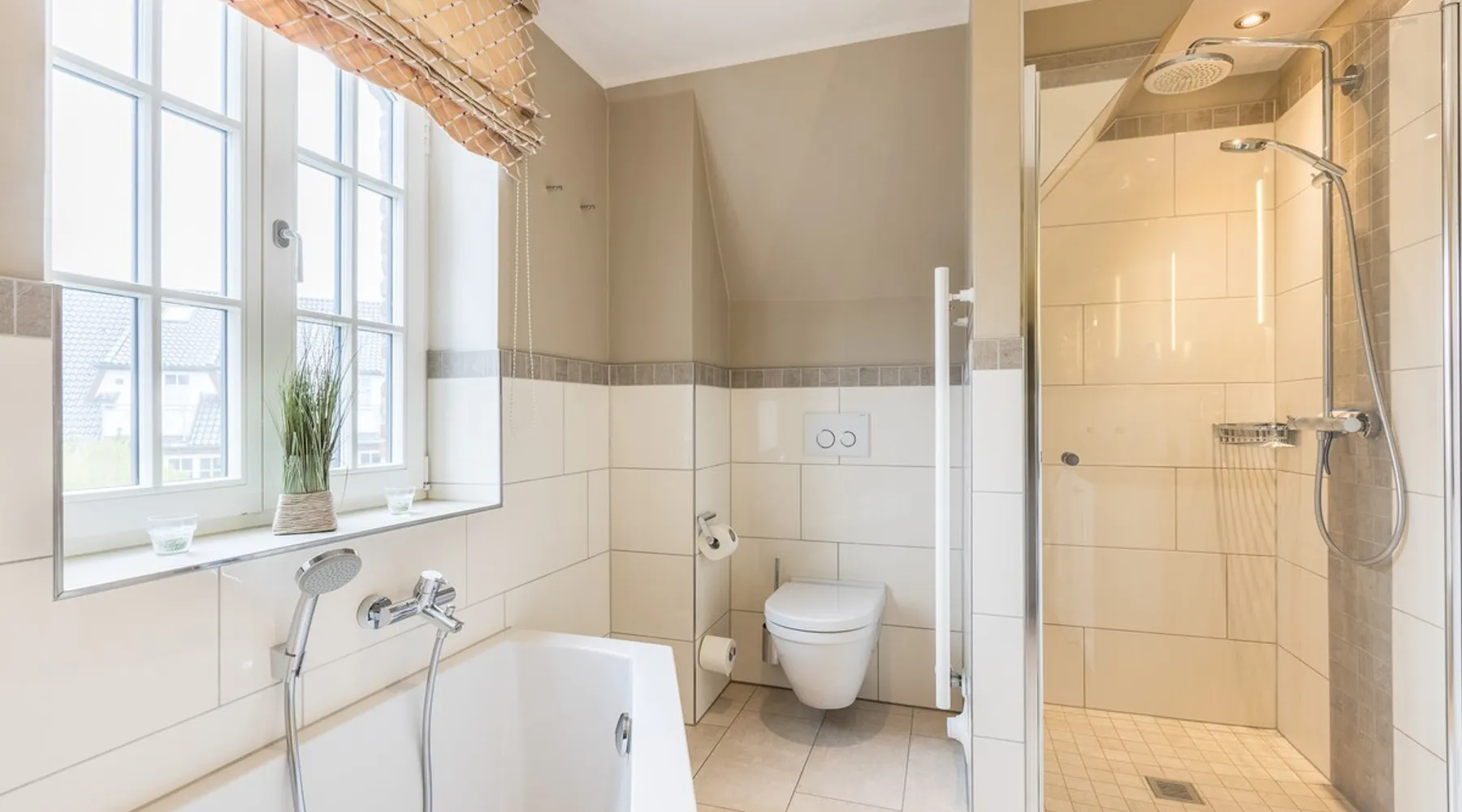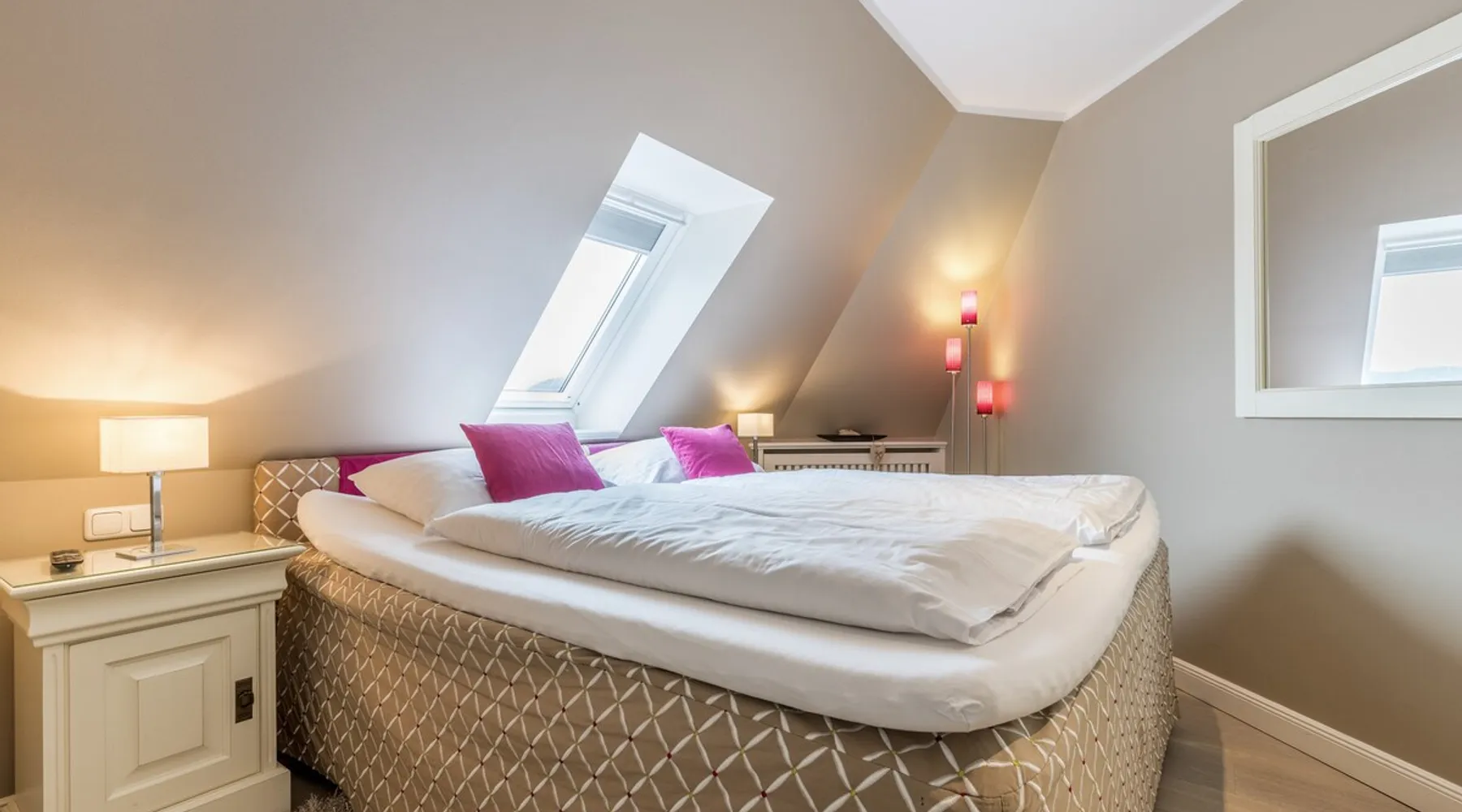 Enjoy unforgettable days in the apartment "Langeneß" in the beach residence on Sylt! This friendly home for up to 4 people has two bedrooms, a modern bathroom, and an open, well-equipped kitchen. Only 100 meters separate you from the beach, where relaxation and adventure are waiting for you. With amenities such as wifi, balcony and parking, this apartment is ideal for families and couples. Book your perfect Sylt vacation now! Other things to note Are you looking for a place to stay centrally located for your holiday on Sylt? The beach crossing almost at your doorstep? Then the Haus Strandresidenz with the apartment Langeneß is for you. The house is located in the heart of the island, the city of Westerland, and offers you everything the holiday heart desires if you want to travel with up to three people. On the upper floor of the apartment Langeneß is the living room with couch corner, 3D flat-screen TV and dining area. From here you can access your balcony, furnished with garden furniture from April to October. The kitchenette is well equipped with an oven, microwave, dishwasher and Nespresso coffee machine, so you won't lack anything. On the same floor there is a bedroom with a box spring double bed (180 x 200 cm) and a bathroom with bath, shower and toilet. In the attic of the apartment you find another room with single bunk bed (160 x 200cm) and a flat-screen TV. Westerland offers something for every holiday flavor, from shopping to numerous restaurants to long beach walks. In addition, from here you can reach the surrounding island towns such as Wenningstedt or Keitum in a few minutes by car or public transport. It's a non-smoking apartment where no animals are allowed. You will find a parking space right by the house. Amenities include: 3-room apartment with approx. 75 sqm of living space in the upper and attic for three people Upper floor: living room with Phillips 3D TV, radio, Blu-ray player, CD player, iPod docking station, telephone and Wi-Fi, open kitchen with microwave, oven, dishwasher, filter coffee machine and Nespresso machine, bedroom with box-spring double bed (180 x 200 cm mattresses separated) and flat-screen TV, bathroom with bathtub, shower and toilet DG: a room with single bunk bed (160x200cm) and flat-screen TV Washing machine, dryer and safe in the house.