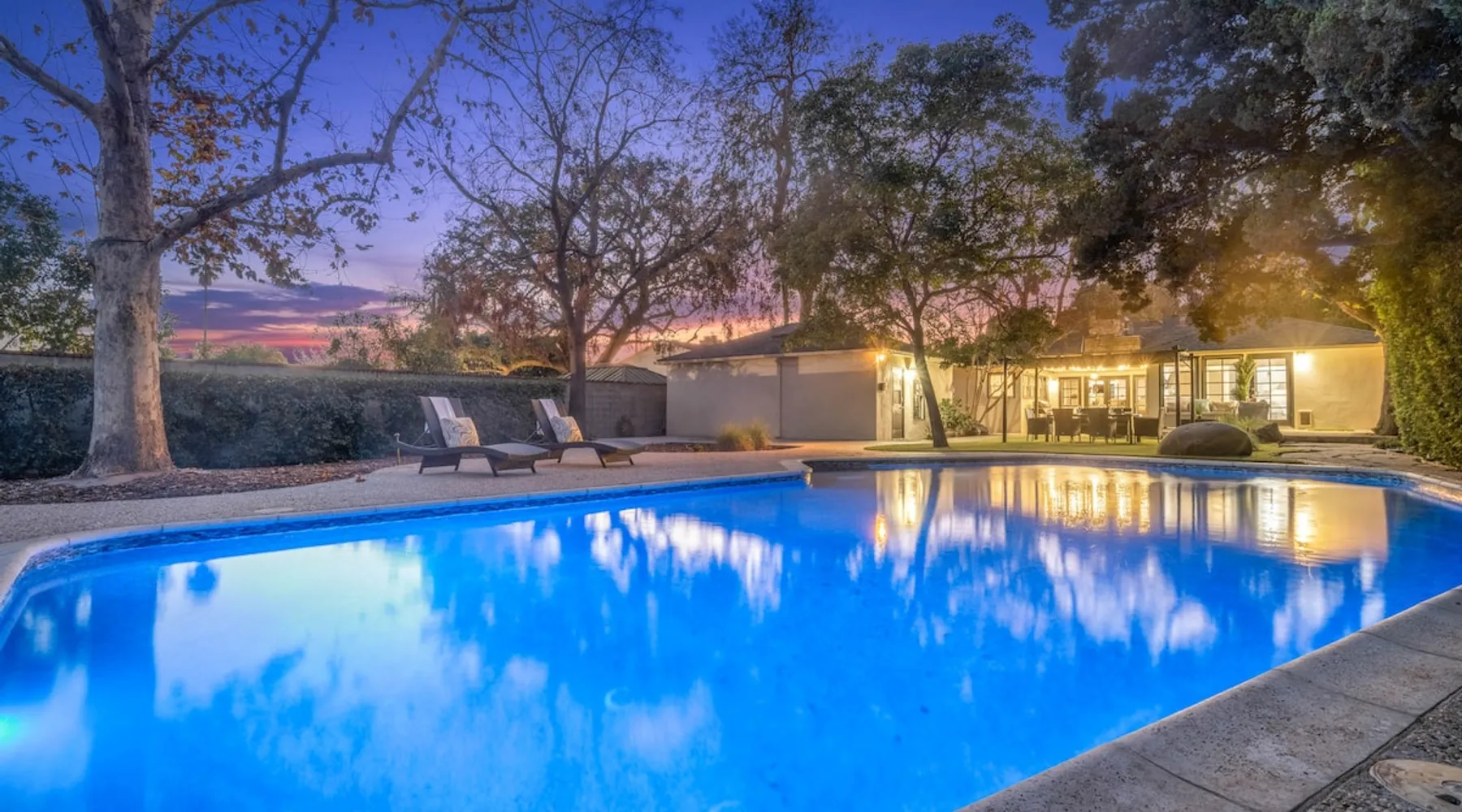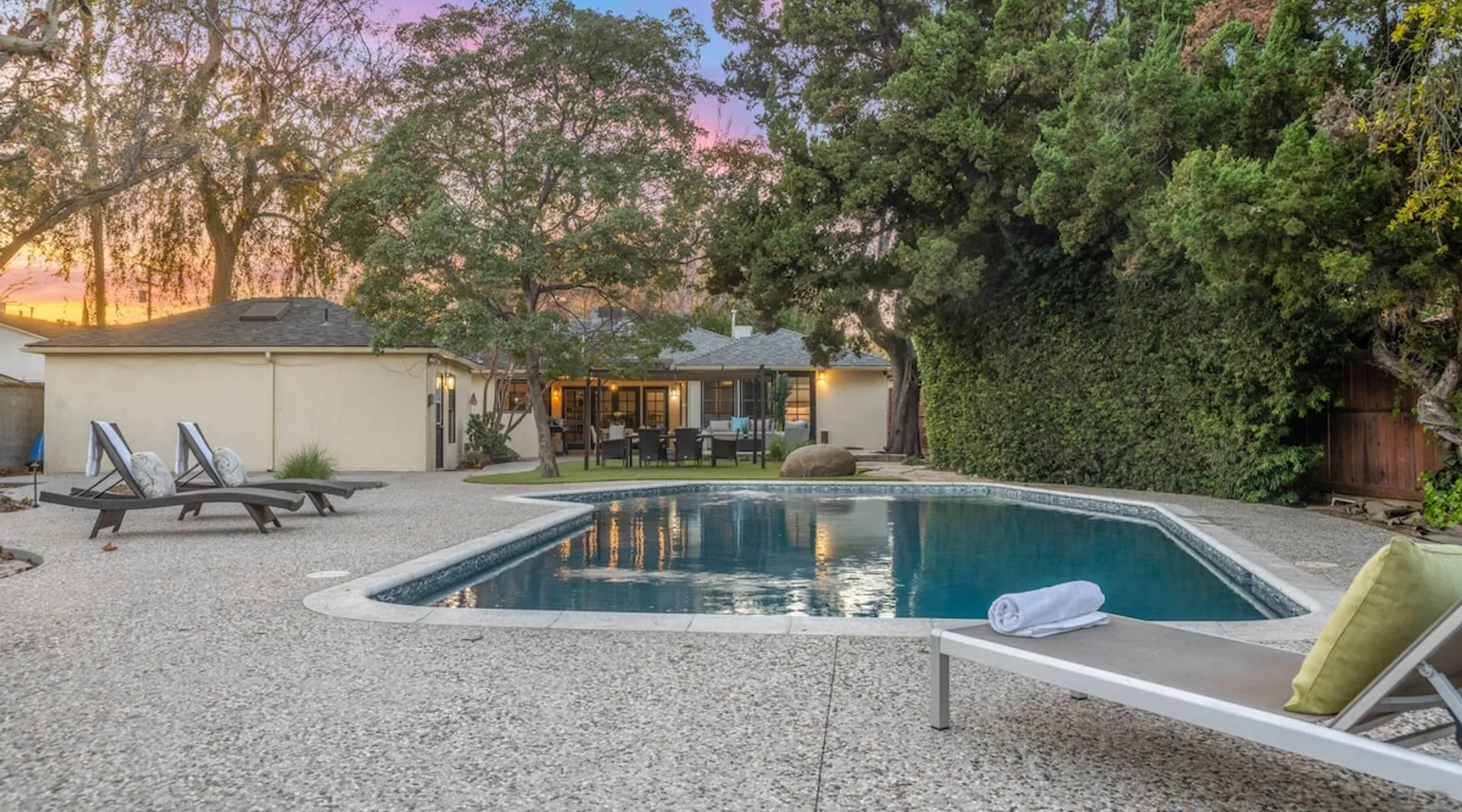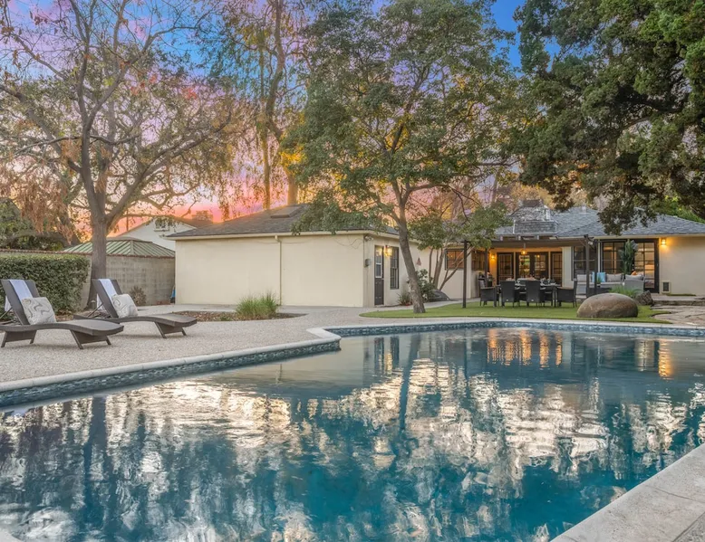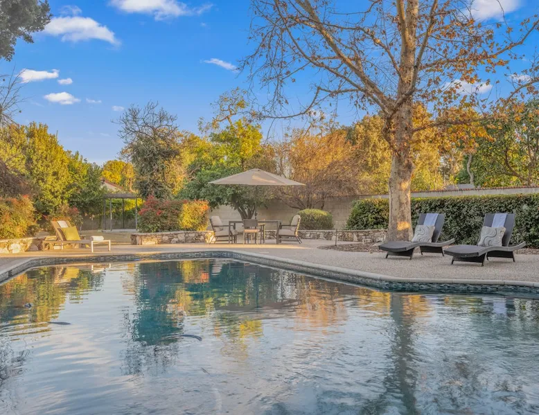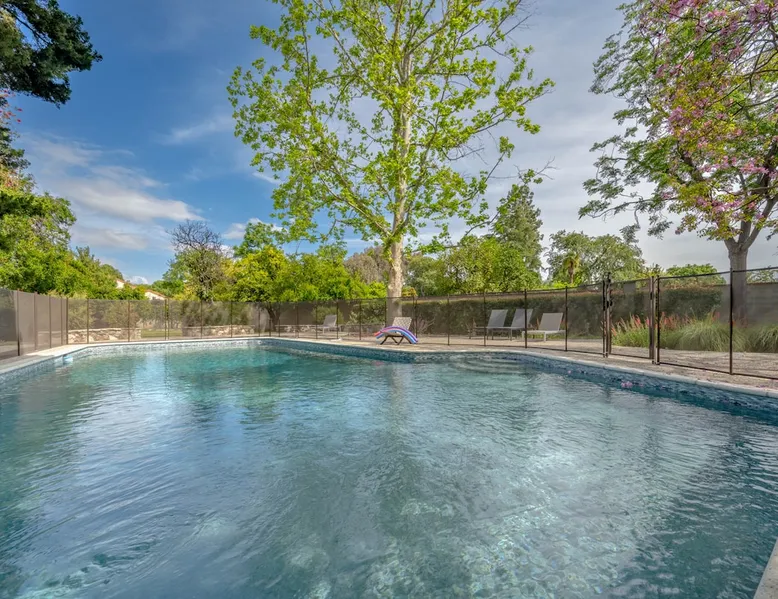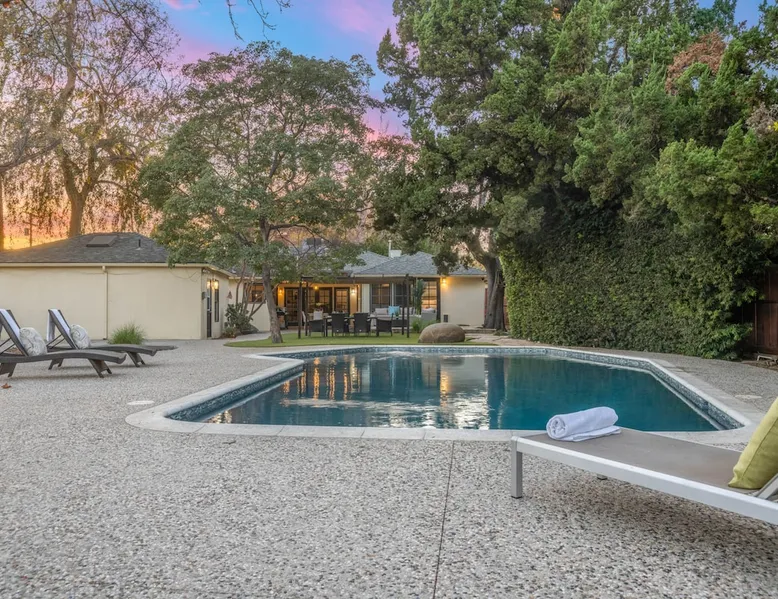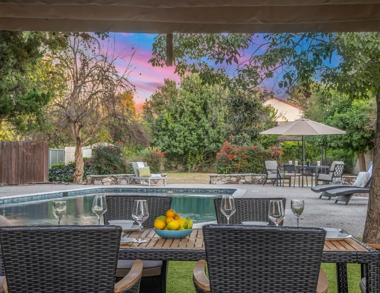 Welcome to Sherwood Oasis, a stunning 5-bedroom gated single-story retreat. Designed for relaxation and entertainment, this home features wide-open spaces, a sprawling, nearly half-acre yard perfect for gatherings, and an oversized sparkling pool for endless fun. A beautifully remodeled chef’s kitchen invites culinary creativity, while including a charming remodeled guest house. Don’t miss this luxurious getaway—reach out now to book your stay and experience Sherwood Oasis for yourself! The space The main house boasts 4 spacious bedrooms and 3 well-appointed bathrooms, while the charming guest house includes a luxurious king bed, a comfortable sofa, a fully equipped kitchen, dining area, and a Smart TV—perfect for hosting friends or family. Outdoor Amenities Welcome to Sherwood Oasis Discover your perfect retreat in the heart of Sherwood Forest, California. This stunning 5-bedroom gated single-story home is designed for ultimate relaxation and entertainment, offering unmatched elegance and comfort. Outdoor Paradise One of the standout features of Sherwood Oasis is its expansive outdoor space. The highlight is the massive gated pool, which can be heated to over 90 degrees for year-round enjoyment (additional fee applies). The pool is surrounded by impeccably landscaped grounds with manicured trees, creating a serene and private sanctuary. The spacious patio, shaded by lush greenery, is perfect for entertaining guests or enjoying tranquil evenings under the stars. The property is surrounded by lush trees and vegetation, creating a beautiful, natural setting. Due to this, occasional leaves may find their way into the pool. While this is part of the charm of a green, serene environment, we do our best to manage it, our pool technician visits twice a week to ensure the pool stays clean and well-maintained. Master Suite Retreat Escape to the separate master wing, featuring an en-suite bathroom that redefines luxury. This Zen-like oasis boasts a Japanese soaking tub, a skylight, a walk-in shower with a rain shower head and waterfall, and elegant tilework throughout. The suite includes an expansive walk-in closet with custom built-ins and breathtaking views of the lush rear grounds, offering a peaceful sanctuary to unwind. Additional Amenities Pool table and games for indoor entertainment Two cozy fireplaces Basketball pool hoop for added fun Stylish patio furniture and outdoor cooler Explore Sherwood Forest Sherwood Forest offers more than beautiful homes. It’s a community filled with opportunities to connect with nature and explore local attractions. Enjoy nearby hiking trails, parks, and renowned golf courses. Seasonal events like farmers’ markets and festivals bring the community to life, while a variety of restaurants—from charming cafes to upscale dining—cater to every culinary taste. Families will love the excellent schools and recreational facilities in the area. Whether you’re relaxing by your private pool, entertaining friends, or exploring the vibrant neighborhood, Sherwood Oasis offers an unparalleled living experience in one of California’s most desirable communities. Book your stay today and experience the magic of Sherwood Oasis! Other things to note Pool heating: Pool Heating is at an additional cost of $299/day (huge pool) with a 3-day minimum. It takes a day to heat the pool so let us know 48 hrs. before checking in if you want the pool heated and at what temperature. *89-96 is recommended. BBQ: Please note we provide a BBQ grill and empty propane tanks. If you would like our staff to fill up the propane tank for you it's $69/per tank. Otherwise, the tanks can be filled at a nearby propane gas station or store for only the cost of the propane. Please let us know if you have any questions. Pets: This home is pet friendly and there is a $250 pet cleaning fee. This fee is per pet. Keys: Any Missing keys to the property will be subjected to a $150 fee per set of keys. Clickers: Any gate/garage clickers missing to the property will be subjected to a $100 per clicker For rentals with term 30-day and longer we require a flat non-refundable utilities fee which is determined by the property size and season specific usage and paid upfront. Additional beds: Please let us know 24 hours before your reservation if you would like us to make up the sofa sleeper so that it’s ready for your stay. Rollaway beds available at $99 each. Important Note for Late or Last-Minute Bookings: Thank you for your reservation! Please note that for bookings made after 4 PM or for same-day arrivals, we may not always have time to fully refresh the property before your check-in, depending on the timing of your reservation. If you notice anything that needs attention upon arrival, please don’t hesitate to message us — we’re happy to send someone out the next day to take care of it. Your comfort is our priority, and we’ll do our best to ensure you have a great stay. Registration Details HSR22-003435