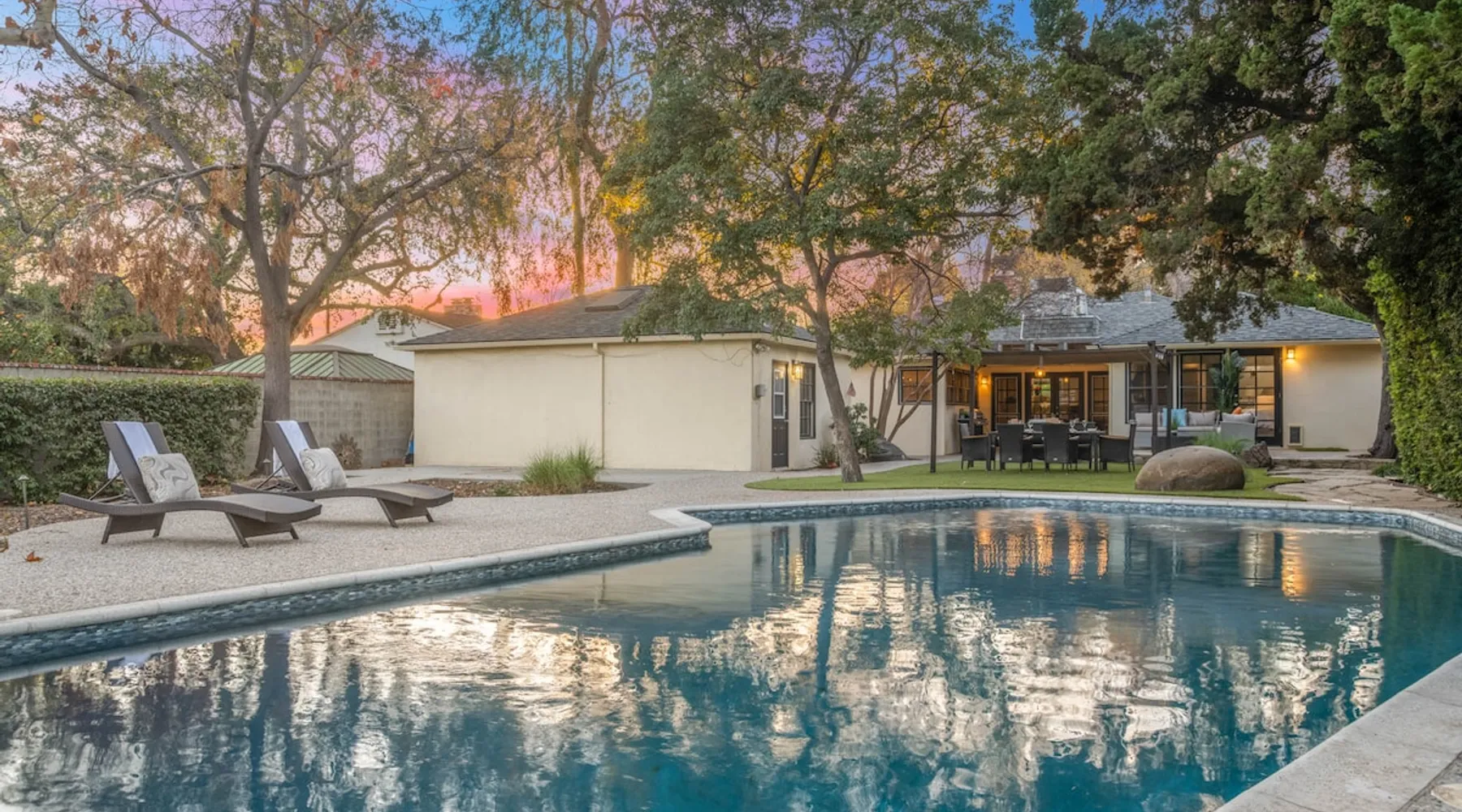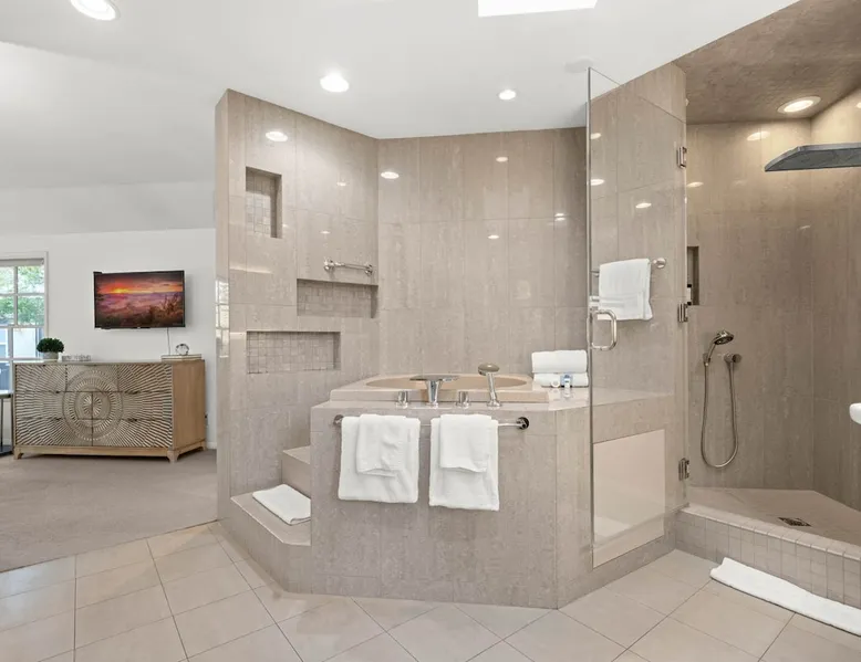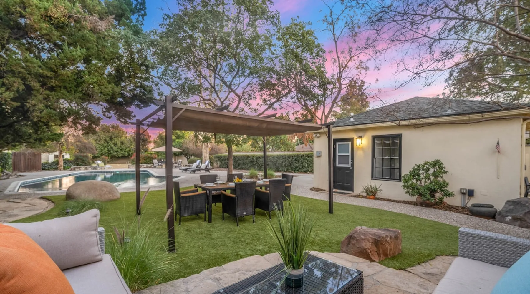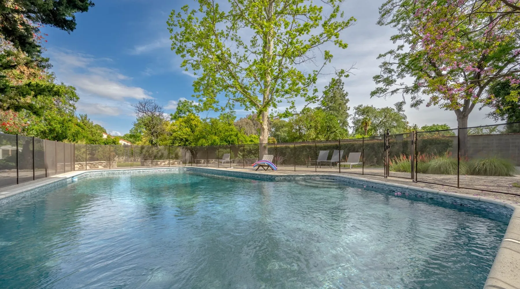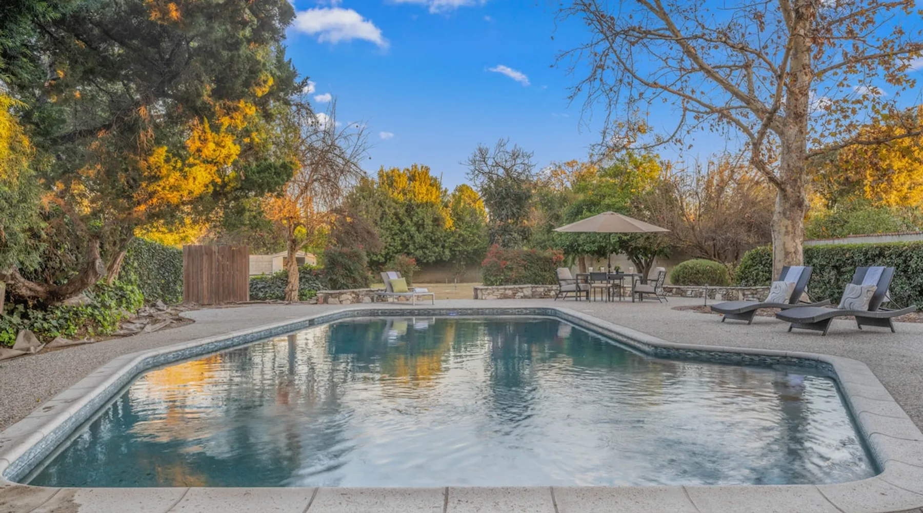 Welcome to Sherwood Oasis, a stunning 5-bedroom gated single-story retreat. Designed for relaxation and entertainment, this home features wide-open spaces, a sprawling, nearly half-acre yard perfect for gatherings, and an oversized sparkling pool for endless fun. A beautifully remodeled chef’s kitchen invites culinary creativity, while including a charming remodeled guest house. Don’t miss this luxurious getaway—reach out now to book your stay and experience Sherwood Oasis for yourself! The space The main house boasts 4 spacious bedrooms and 3 well-appointed bathrooms, while the charming guest house includes a luxurious king bed, a comfortable sofa, a fully equipped kitchen, dining area, and a Smart TV—perfect for hosting friends or family. Outdoor Amenities Welcome to Sherwood Oasis Discover your perfect retreat in the heart of Sherwood Forest, California. This stunning 5-bedroom gated single-story home is designed for ultimate relaxation and entertainment, offering unmatched elegance and comfort. Outdoor Paradise One of the standout features of Sherwood Oasis is its expansive outdoor space. The highlight is the massive gated pool, which can be heated to over 90 degrees for year-round enjoyment (additional fee applies). The pool is surrounded by impeccably landscaped grounds with manicured trees, creating a serene and private sanctuary. The spacious patio, shaded by lush greenery, is perfect for entertaining guests or enjoying tranquil evenings under the stars. The property is surrounded by lush trees and vegetation, creating a beautiful, natural setting. Due to this, occasional leaves may find their way into the pool. While this is part of the charm of a green, serene environment, we do our best to manage it, our pool technician visits twice a week to ensure the pool stays clean and well-maintained. Master Suite Retreat Escape to the separate master wing, featuring an en-suite bathroom that redefines luxury. This Zen-like oasis boasts a Japanese soaking tub, a skylight, a walk-in shower with a rain shower head and waterfall, and elegant tilework throughout. The suite includes an expansive walk-in closet with custom built-ins and breathtaking views of the lush rear grounds, offering a peaceful sanctuary to unwind. Additional Amenities Pool table and games for indoor entertainment Two cozy fireplaces Basketball pool hoop for added fun Stylish patio furniture and outdoor cooler Explore Sherwood Forest Sherwood Forest offers more than beautiful homes. It’s a community filled with opportunities to connect with nature and explore local attractions. Enjoy nearby hiking trails, parks, and renowned golf courses. Seasonal events like farmers’ markets and festivals bring the community to life, while a variety of restaurants—from charming cafes to upscale dining—cater to every culinary taste. Families will love the excellent schools and recreational facilities in the area. Whether you’re relaxing by your private pool, entertaining friends, or exploring the vibrant neighborhood, Sherwood Oasis offers an unparalleled living experience in one of California’s most desirable communities. Book your stay today and experience the magic of Sherwood Oasis! Other things to note Pool heating: Pool Heating is at an additional cost of $299/day (huge pool) with a 3-day minimum. It takes a day to heat the pool so let us know 48 hrs. before checking in if you want the pool heated and at what temperature. *89-96 is recommended. BBQ: Please note we provide a BBQ grill and empty propane tanks. If you would like our staff to fill up the propane tank for you it's $69/per tank. Otherwise, the tanks can be filled at a nearby propane gas station or store for only the cost of the propane. Please let us know if you have any questions. Pets: This home is pet friendly and there is a $250 pet cleaning fee. This fee is per pet. Keys: Any Missing keys to the property will be subjected to a $150 fee per set of keys. Clickers: Any gate/garage clickers missing to the property will be subjected to a $100 per clicker For rentals with term 30-day and longer we require a flat non-refundable utilities fee which is determined by the property size and season specific usage and paid upfront. Additional beds: Please let us know 24 hours before your reservation if you would like us to make up the sofa sleeper so that it’s ready for your stay. Rollaway beds available at $99 each. Important Note for Late or Last-Minute Bookings: Thank you for your reservation! Please note that for bookings made after 4 PM or for same-day arrivals, we may not always have time to fully refresh the property before your check-in, depending on the timing of your reservation. If you notice anything that needs attention upon arrival, please don’t hesitate to message us — we’re happy to send someone out the next day to take care of it. Your comfort is our priority, and we’ll do our best to ensure you have a great stay. Registration Details HSR22-003435