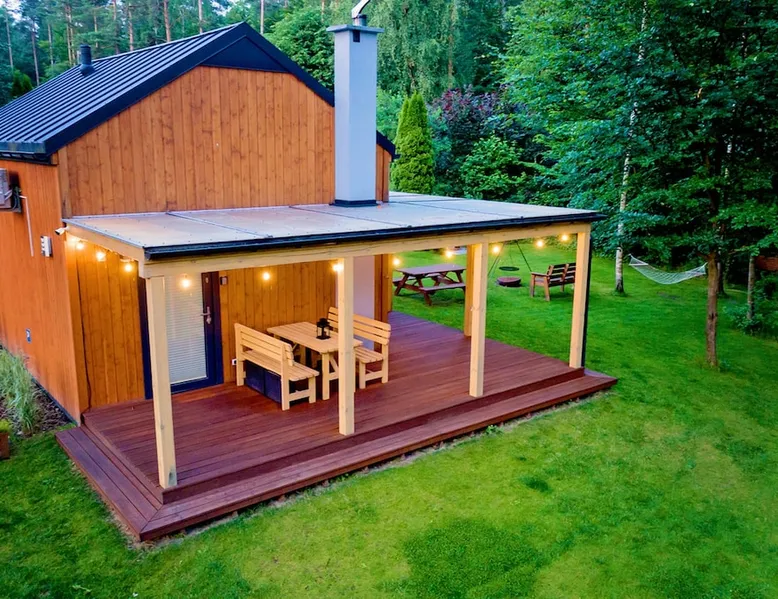 Cosy, modern, year-round cottage with a mezzanine and a large terrace, ideal for a family with children or a group of friends (4 people + 1 child). Family-friendly bedroom with a child and a loft with a double bed or 2 single beds. A cottage with air conditioning in a living room. The space Cosy, modern, year-round cottage with a mezzanine and a large terrace, ideal for a family with children or a group of friends (4 people + 1 child). A glazed living room with a modern fireplace and a view of the forest. Bedroom on the ground floor for parents with a child and mezzanine with a double or two single beds. Functional kitchenette with full equipment and a comfortable bathroom with shower. In the bedroom there is a mini folding desk that can be used for work or study. On the terrace there is a large table with benches and hammocks. In the cottage you will find comfortable equipment: bed linen, towels, internet wifi, smart TV and soundbar (USB input, Netflix), wood for the fireplace, windmill (summer-winter option), dishwasher, oven with a fan, washing machine, amenities for small children (baby seat, bath, potty, toilet pad, contact security, dishes for children), hair dryer, electric heater/dryer, 2 deckchairs, pleated roller shutters on windows, cleaning products, vacuum cleaner. In the garden we provide you a place for a bonfire with benches, barbecue, playground with a sandbox, a roller coaster, hammocks. For children we have prepared a special corner with toys and books. In addition, access to a private lounge with lighting is payable. The use of logs and saunas does not take into account additional towels. Guest access When renting this cottage, you cannot use the facilities on plot No. 8 and 10, including the playroom. Other things to note SECURITY DEPOSIT - Renting a cottage involves paying a security deposit of 500 or PLN 1,000 to the host's account. The deposit is, of course, refunded if the cottage and other items/items are returned in the same condition as before renting. Fee for 1 x pet 100 zł /stay max 2 pets in the cottage Travel crib fee 80 zł /stay Wood stand for the fireplace 100 zł, double stand 200 zł Firewood rack 50 zł Access to a log and sauna, as well as wood for the fireplace and campfire are charged extra according to the current price list of Winiec Family House. Wood for the fireplace and campfire is charged extra according to the price list of the property. The cottages have smart infrared heating. The radiators on the walls or ceiling are controlled remotely and set at 21-22 degrees. I have an extra charge to increase the temperature. >>> For stays of at least 5 nights, the DAILY POOL is included<<< The pool with heated water, countercurrent and bad weather cover is available to guests of our 4 cottages (No. 8,10,13,15). The pool is charged extra in the system person/night according to the price list on the property page. In the period from 15.06-15.09, the pool fee is 10zł/person/day and includes the possibility of opening the pool cover. In the period 20.04 - 14.06 and 16.09-20.10, the pool is also charged extra 20 zł/person /day and it is possible to use only with the lid closed, opening the lid during this period will incur an additional fee for each hour of opening of the cover according to the price list on the site (200 zł/1h). The pool is off from use from 10/21/19/04. The service includes access to the pool up to 2 hours of the day. It is necessary to read the rules and instructions by the pool use between 21.10-19.04. The service includes access to the pool up to 2 hours of the day. It is necessary to read the rules and instructions by the pool. Children's playroom is free of charge, only the cost of heating the playroom during the day is additionally payable according to the price list of the facility - 30 zł/day (we encourage you to bring slippers or sneakers for children) Most of the public equipment can be found in the shed, including the keys to the boat and kayaks that are in the box. Current Price List of Bali and Saunas The electric log service with hot tub and lighting includes 2 hours of day access per person. Spring-Lays-Jesen (1.04-20.11) for the price of 20 zł/person/2h or Period Winter (21.11-31.03) for 30 zł/person/2h. Balia is located on a plot of land at house 8-10. Electric log service is available to guests of all our cottages, for this reason advance booking is required. The bale is heated automatically (it does not require smoking in the furnace) The minimum number of people to be heated for use is at least 2 people and the maximum number of people staying in the log is up to 6 people. The cost of the sauna is 180 zł/cottage, the service includes 2 hours of exclusive access to the sauna on a given day, and access to a basket of wood for independent smoking in the furnace. People who smoke in the furnace take responsibility for preparing the sauna during fire and later smoking, according to the instructions on the device and the rules of use. The purchased service is available for the house that booked the sauna. The sauna can accommodate up to 6 people at the same time. If you are interested in an electric hot tub and sauna, please contact us in advance to arrange availability and dates. Access is available between 2pm-10pm. We do NOT use appliances without prior approval from the owner. The service does not include sauna and hot tub towels. There is also a fee to use the logs and sauna without heating it. In case of very large frosts, the electric bale may not be available for use. The service of a private wooden log with a hot tub and lighting at cottage No. 15 or a private composite log with lighting at cottage no. 13 is the cost of -600 PLN. This price is for private two-day access (2 days under the rule of quiet hours), includes filling the tub with water and preparing the wood to light. Then the customer ignites itself and adds the wood every 30 minutes to reach the temperature of 37-40 degrees in the hot tub (app