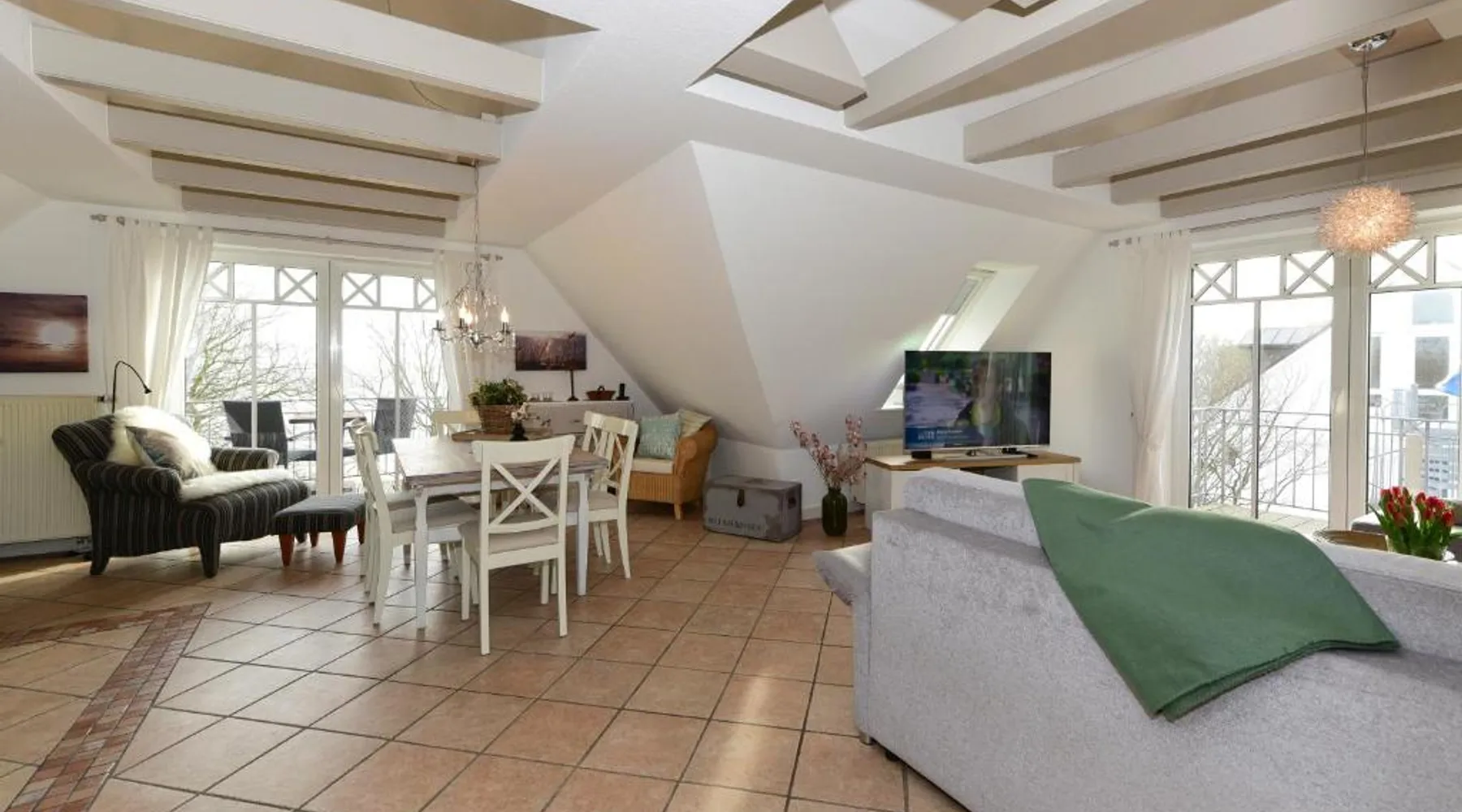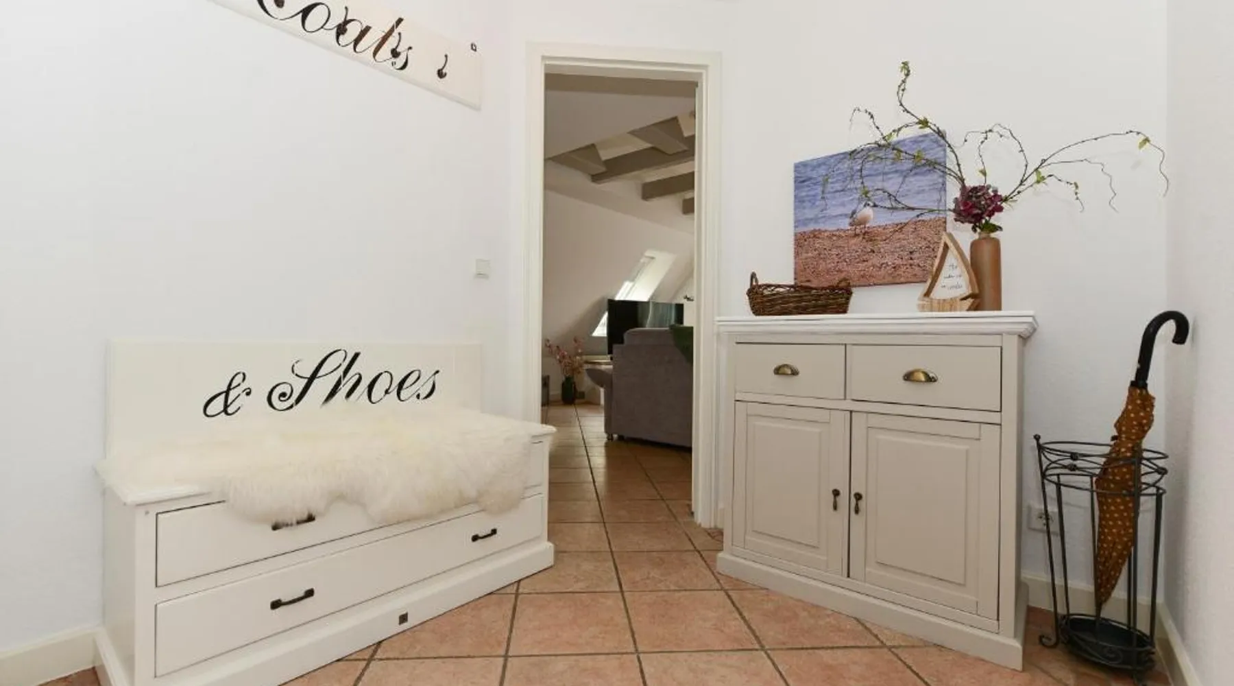 Beachfront and Free WiFi: Haus Martens Whg 04 in Wyk auf Föhr offers direct beachfront access and free WiFi. Guests can relax on the balcony with sea views and enjoy the sunshine. Spacious Accommodations: The apartment features one bedroom and a living room. Amenities include a kitchenette, washing machine, private bathroom, and a sofa bed. Free on-site private parking is available. Local Attractions: Wyk auf Fohr Beach is just a few steps away, while the Museum of Local Frisian History is a 9-minute walk. Ferry docks are 1969 feet nearby, and the Speedboat Harbor is less than 0.6 mi. The Archaeological Monument in Borgsum is 5.6 mi from the property. Nearby Restaurants: A restaurant is located in the surroundings, providing convenient dining options. In the fully equipped kitchenette, guests will find a refrigerator, a dishwasher, an oven and a microwave. The spacious apartment features a washing machine, a coffee machine, a balcony with sea views as well as a private bathroom boasting a hairdryer. The unit has 2 beds.
