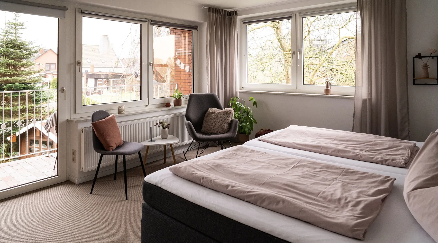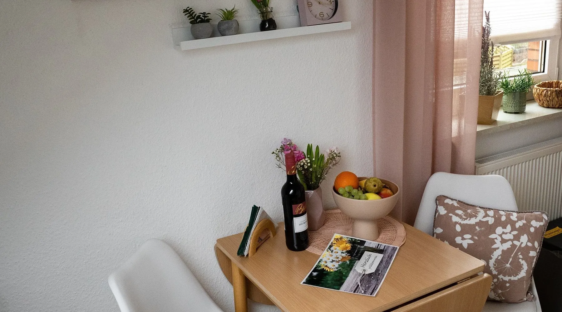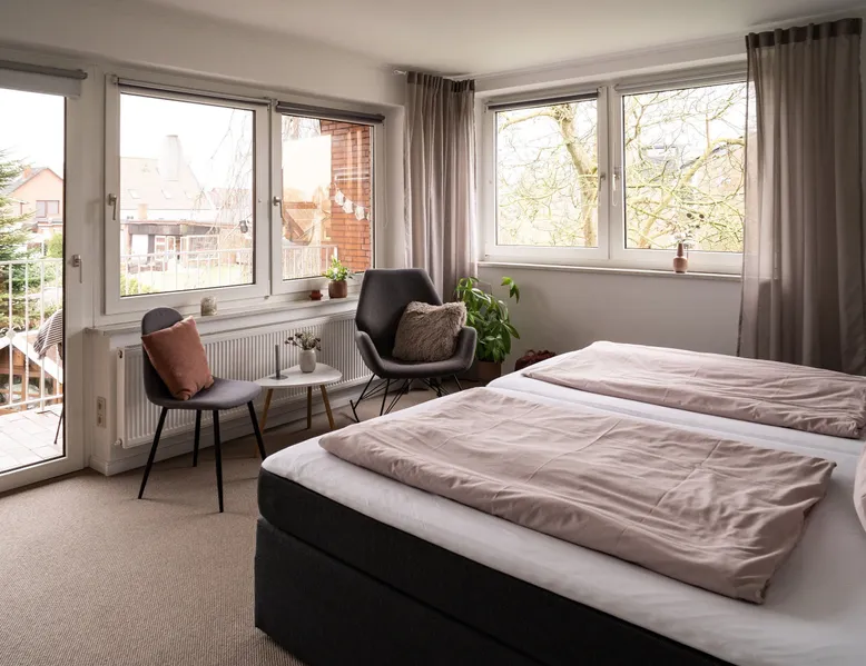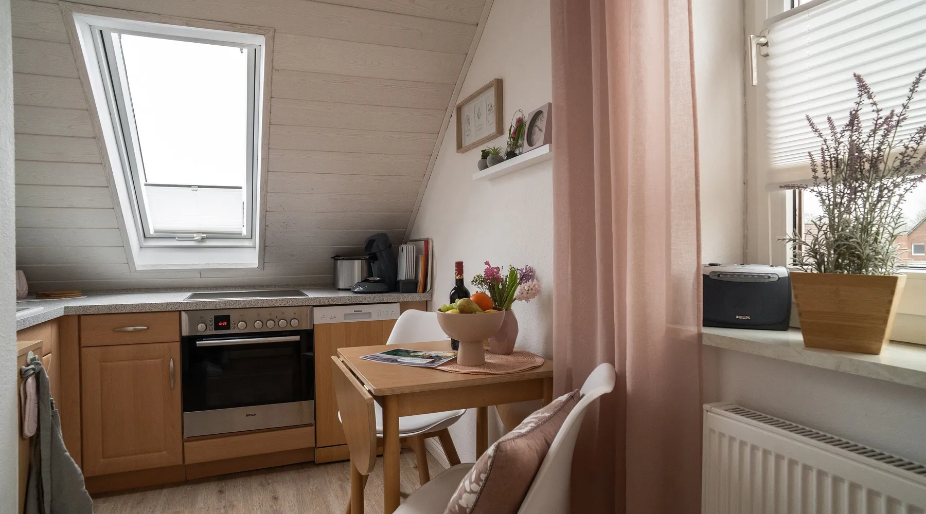 Nice, bright and friendly apartment in a quiet side street of Jemgum. Separate entrance. Upstairs are the bedrooms, once equipped with separate box spring beds (1.20 x 2.00 m) and a bedroom with double bed (1.80 x 2.00). Bathroom and toilet are separated. Cozy little kitchen with everything your heart desires. Two loggias to the south side flood the rooms with sun. The entire apartment is with underfloor heating. Jemgum is always worth a visit and in our beautiful apartment in a quiet street location you can enjoy your holiday to the fullest. Our bright and friendly apartment has a separate entrance and space for up to 5 people. 2 bedrooms with comfortable box spring beds and flat screen TV invite you to relax in comfort. The first bedroom has a loggia with great views, there are separate beds (1.20x2, 00m per bed), the second bedroom has a double bed (1,60x2, 00m), a very nice roof window with insect screen and -schwunklungsrollo and also a TV. Coziness Pure! The apartment has two loggias, a fully equipped kitchen with fridge, freezer and microwave. For 2 people is a place directly in the kitchen, for 3 or more people take the dining room in the living room. The cozy living room with living area and large TV has a beautiful view on the south side, a large loggia with table and chairs and even a small spice bed. The entire apartment has underfloor heating. The bathroom has a shower and bath. WC extra. Bed linen and towels are included. Parking for bicycles is available. No pets.