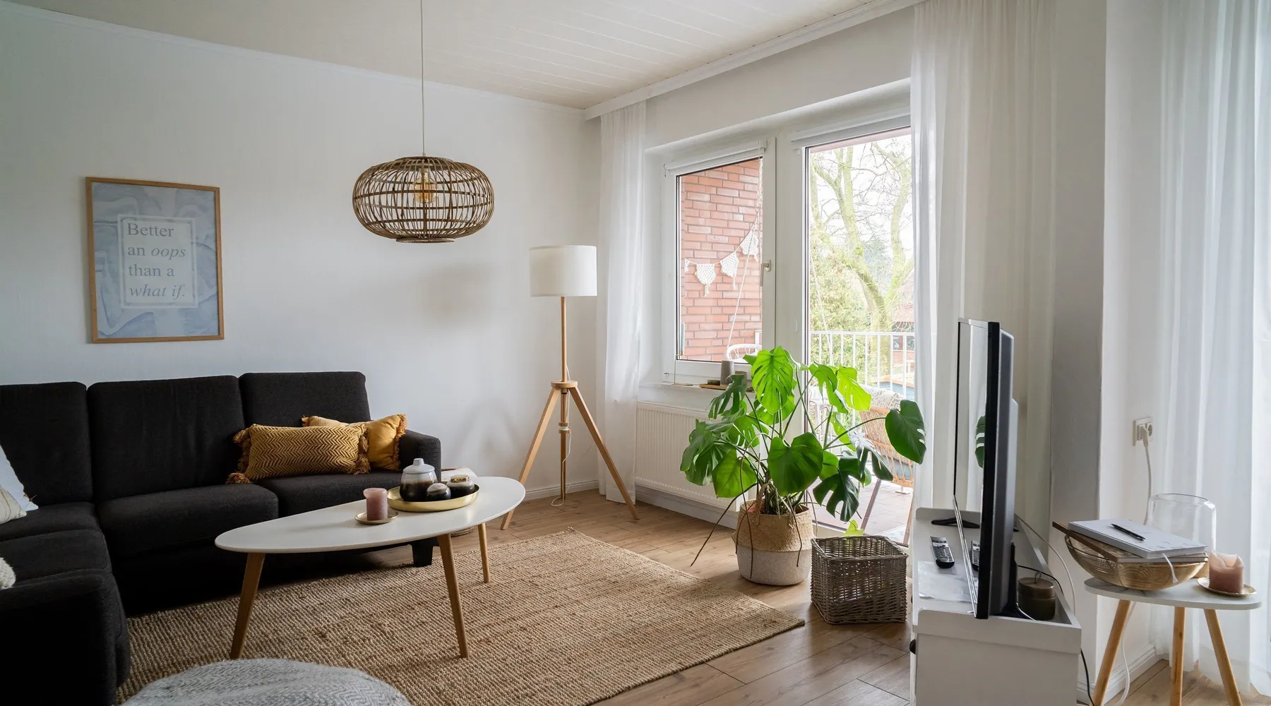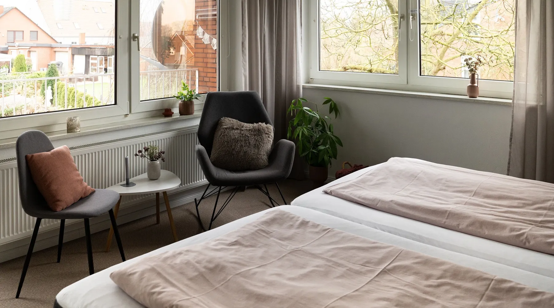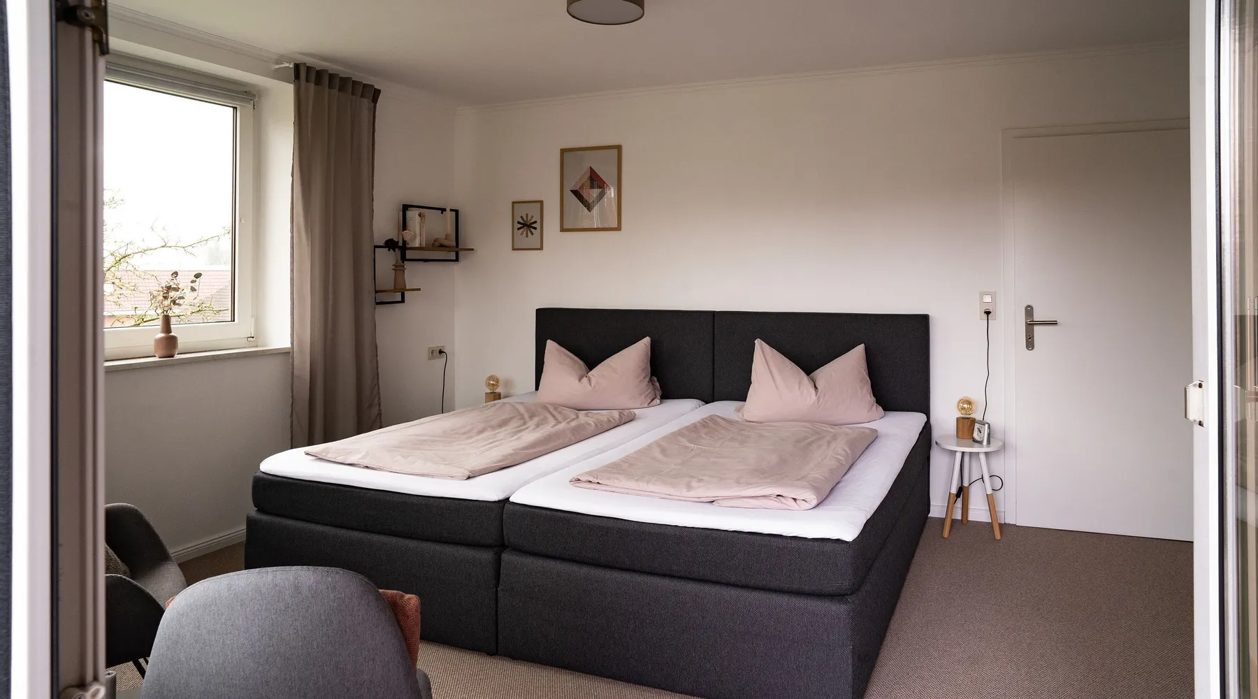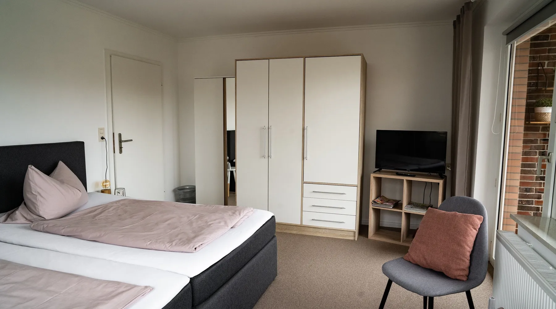 Nice, bright and friendly apartment in a quiet side street of Jemgum. Separate entrance. Upstairs are the bedrooms, once equipped with separate box spring beds (1.20 x 2.00 m) and a bedroom with double bed (1.80 x 2.00). Bathroom and toilet are separated. Cozy little kitchen with everything your heart desires. Two loggias to the south side flood the rooms with sun. The entire apartment is with underfloor heating. Jemgum is always worth a visit and in our beautiful apartment in a quiet street location you can enjoy your holiday to the fullest. Our bright and friendly apartment has a separate entrance and space for up to 5 people. 2 bedrooms with comfortable box spring beds and flat screen TV invite you to relax in comfort. The first bedroom has a loggia with great views, there are separate beds (1.20x2, 00m per bed), the second bedroom has a double bed (1,60x2, 00m), a very nice roof window with insect screen and -schwunklungsrollo and also a TV. Coziness Pure! The apartment has two loggias, a fully equipped kitchen with fridge, freezer and microwave. For 2 people is a place directly in the kitchen, for 3 or more people take the dining room in the living room. The cozy living room with living area and large TV has a beautiful view on the south side, a large loggia with table and chairs and even a small spice bed. The entire apartment has underfloor heating. The bathroom has a shower and bath. WC extra. Bed linen and towels are included. Parking for bicycles is available. No pets.