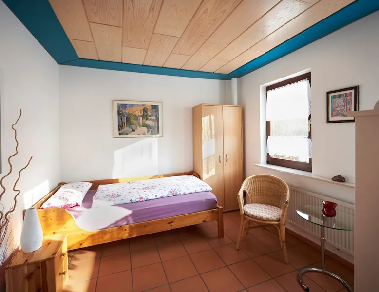 My cozy large house can accommodate 8 to max. 11 overnight guests. There are 2 private bathrooms available for these 4 guest rooms, each with a shower and toilet. The park-like garden with several seats can be used in summer. In the town of about 500 inhabitants, you will find peace and quiet. The space Several cozy bedrooms (2 x 2) people, 1 x 1 person as well as a large apartment (studio) can be used under the roof for up to 5 people), can be booked. Bright, light-filled bedrooms, comfortably furnished. When sleeping, see the stars...., at the same height as the birds in the treetops..., enjoy peace and coziness. On request, the kitchen can be used by prior arrangement (for a fee). Parking is possible on premises or in my garage. Wifi available, Internet with < 50,000 mbts arriving here. Mobile reception possible only with D1. In the studio, TV can be received via SATELLITE antenna. Garden use with a small garden hut. (can only be used in summer), cozy sitting area recessed in the meadow. Located in a wooded valley in the northernmost tip of Rhineland-Palatinate. Motorways and train stations are about 10 to 30 minutes away. A bus runs several times a day. Hiking trails are directly from the house. There are no more shops:-/ but again a restaurant that offers simple food and often live music on Saturdays. In the house, a water-enhancing system according to "Ruth and Johann" is installed and the drinking water is filtered, cleaned and vitalized with the Arctic spring. Original purity, vital life force, energy and harmony - unique water quality. Everything else is available on request. I'm a naturopath, I've closed my practice at the end of 2021. I'm so excited for your visit!! Guest access My guests and I use the same stairwell. I'm requesting to take off street shoes in the entryway. Please bring slippers. Thanks :-) During your stay Dream in the countryside is my home. I'd love the chance to answer any questions you may have. Breakfast can also be booked on request. A full breakfast with predominantly high-quality organic products can be booked for €18.00 per person. On request, my kitchen can be used for cooking on request. Unique for €10.00 and for longer stays per week for €50.00. Washing machine and dryer are provided in the laundry room. Per wash cycle per unit for €2.80.