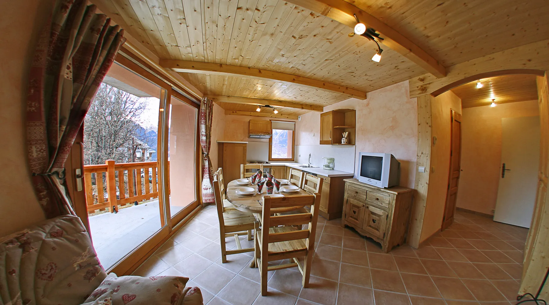 Apartment in chalet. The chalet is a beautifully landscaped old farmhouse located in the heart of the old Savoyard village of Montalbert. The shops are very close: supermarket, bars and restaurants, rental of sports equipment ... Apartment with a surface area of 38m², in the chalet la Tarine residence. Located at the foot of the slopes, in the center of the resort. South-west facing balcony / terrace, private parking. - KITCHEN: oven, 4 electric hobs, microwave, fridge, dishwasher, raclette machine - LIVING ROOM: 1 double sofa bed - BEDROOM: 1 pull-out bed (2 x 80) - BEDROOM: 1 double bed - BATHROOM: Shower, sink, - WC: Separate - Ski room - Sheets rental and end of stay cleaning possible