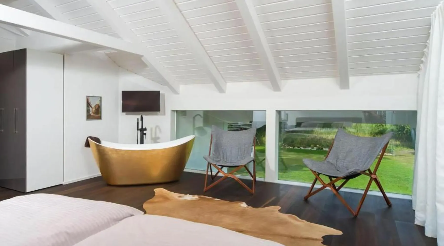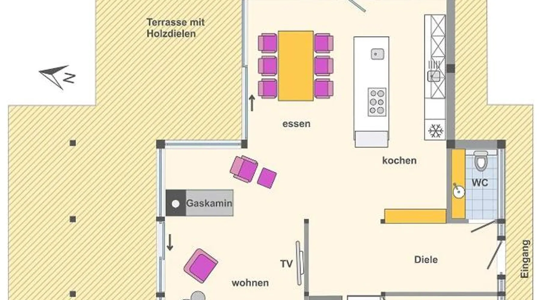 Spacious Accommodations: Ferienhaus Fünfjahreszeiten In Bodstedt in Fuhlendorf offers a spacious holiday home with two bedrooms and two bathrooms. The property features a fully equipped kitchen, washing machine, and a cozy fireplace. Outdoor Amenities: Guests can enjoy a garden, terrace, and an outdoor swimming pool. The terrace provides a perfect spot for relaxation, while the outdoor swimming pool offers a refreshing dip. Free WiFi is available throughout the property. Additional Facilities: The holiday home includes a hot tub, balcony, and barbecue area. Free on-site private parking is provided, ensuring convenience for all visitors. Nearby Attractions: Rostock-Laage Airport is 50 mi away, while Stralsund Central Station is 22 mi from the property. Other attractions such as Marienkirche Stralsund and Stralsund Harbor are within 24 mi. Guests will have a special experience as this holiday home features a hot tub and a fireplace. Featuring 2 bedrooms, this spacious holiday home offers 2 bathrooms with a bath, a seating area and terrace where you can relax. Guests will find a stovetop, a refrigerator, a dishwasher and an oven in the fully equipped kitchen. The holiday home also has a barbecue. Boasting a balcony with garden views, this holiday home also offers a washing machine and a TV. The unit has 3 beds.