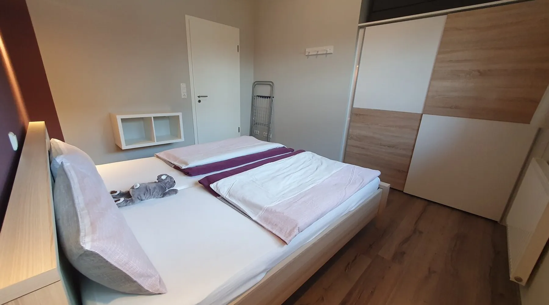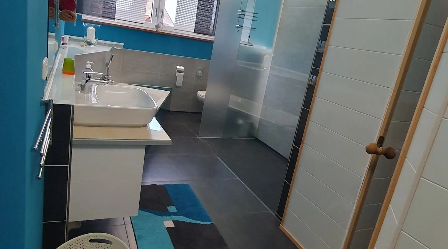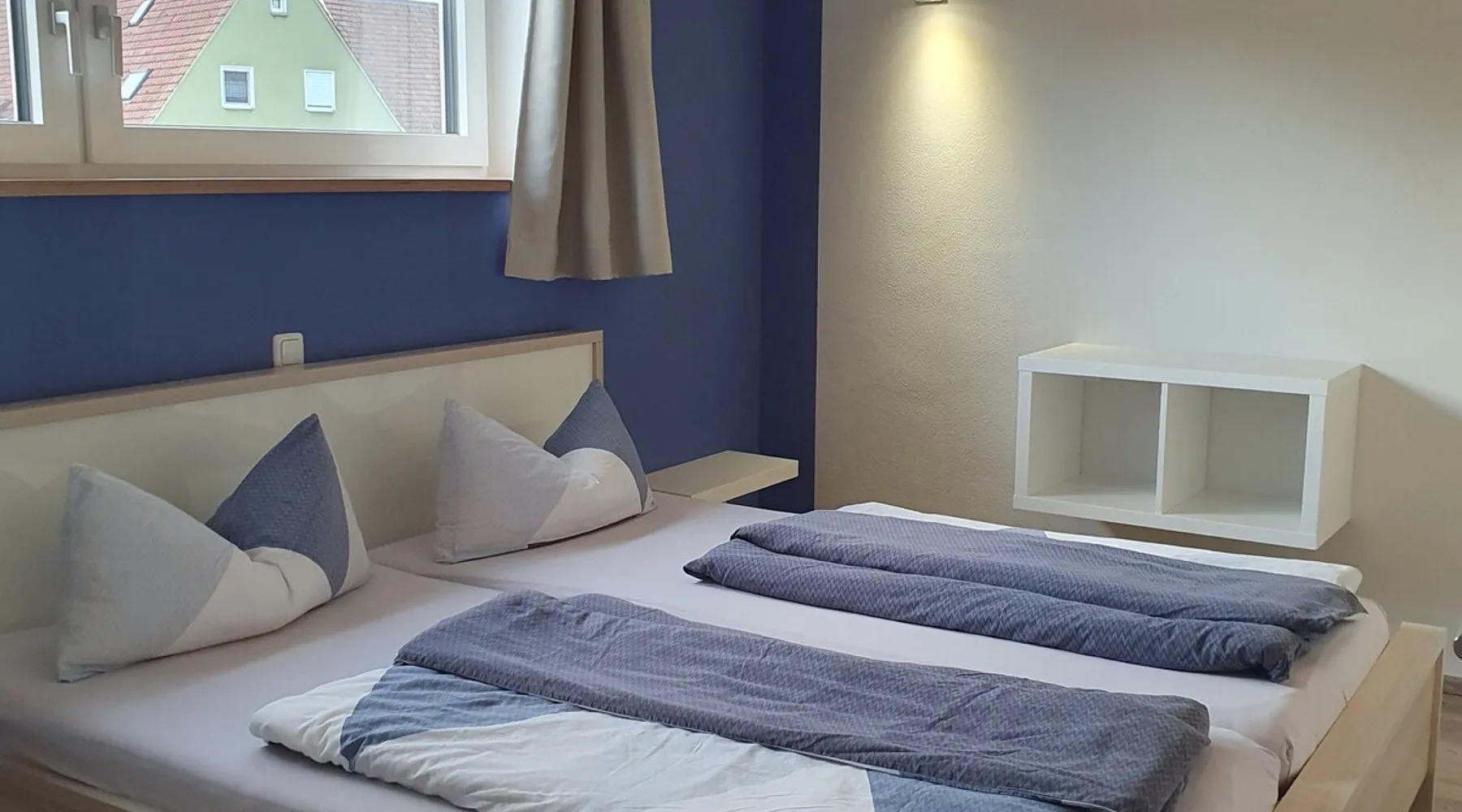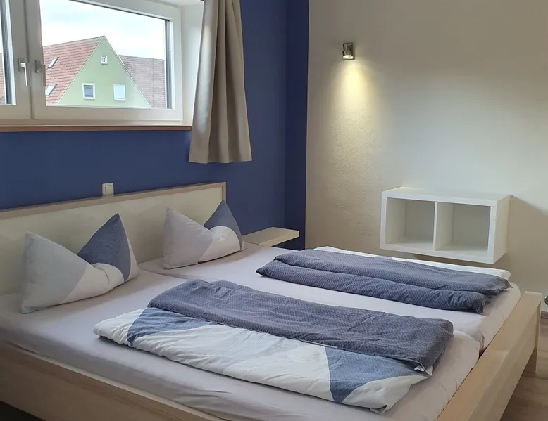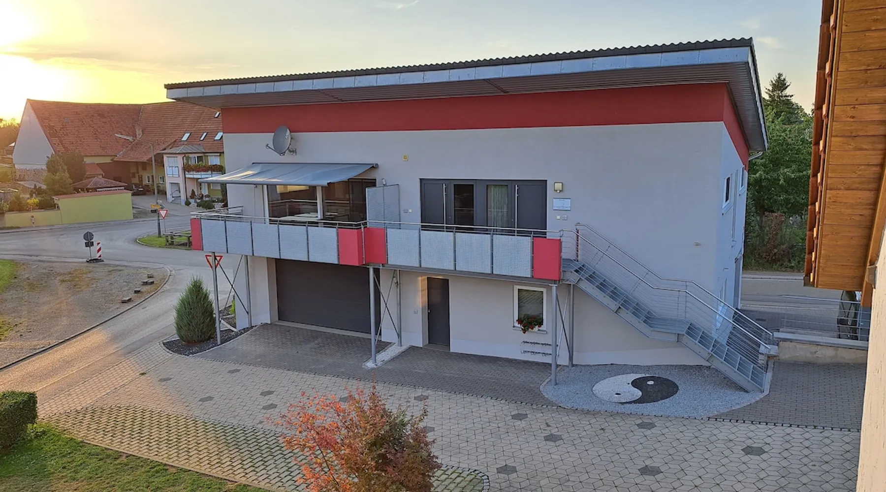 Our apartment is in the countryside on the outskirts of town. (Completion in January 2016). Apartment is on the 1st upper floor An electric charging station with 11 kW is available to you at the current electricity price. From the living-dining area you have access to the large balcony, which is on the south side. The living area is bright and filled with light. The bathroom is a small wellness oasis with sauna and rain shower. The sauna is used by our guests in summer and winter at no extra cost. The space The balcony is equipped with a table group, 2 sun loungers and an electric awning. At breakfast in the dining area or in summer on the balcony, you can already enjoy the beautiful view and tranquility. Thanks to the large windows, the light-flooded living-dining area is very bright and pleasant. Pleated blinds and curtains are available for sufficient shading or darkening. You can spend your vacation with up to 6 people in our modern furnished apartment. There are two double bedrooms, each with a closet. Another person (or 2 children) can also fit on the pull-out sofa 195 cm x 120 cm. A fully equipped kitchen with Senseo coffee pod machine (pods are in the kitchen cabinet), toaster, kettle, oven, microwave and fridge-freezer combination awaits you. In the living room is a flat-screen TV, a stereo system and the pull-out sofa, but there is an additional mattress to increase the comfort. The living area is particularly cozy in the evening thanks to LED lighting and backlighting. The bathroom has a bathtub and a walk-in shower with rain shower. Also in the bathroom is the sauna, just for you. For further relaxation and for your well-being, there is a practice for craniosacral therapy and APM according to Penzel in the same house. If you are interested, please inquire a few weeks in advance. Linens, towels, dishtowels, cleaning supplies, toilet paper, kitchen towels and dishwashing liquid are provided. Countryside vacation with great surroundings for hiking and cycling. A small garden, fireplace grill and an open fireplace are there for you, as well as a table tennis table (please bring rackets and balls). The bed linens and towels are professionally washed in an industrial machine with a disinfection program to minimize the risk of infection. We hope this is also in your interest. We wish you a quiet, relaxing and eventful vacation with us. Guest access The washing machine and dryer are located in the building. The fee is 3.00 euros each time, including detergent. Other things to note Ideas for your vacation with us: The Franconian Lake District invites you to swim, boat, surf and cycle. At Lake Brombach there is a climbing and adventure forest. Take a boat trip with the trimaran and get off at the various jetties to enjoy the beautiful scenery. The romantic old town of Dinkelsbühl (awarded as the most beautiful old town in Germany), Rothenburg, Nördlingen, Oettingen, the Roman park Ruffenhofen and the Hesselberg with its great views is just a small selection of what there is to see and experience here. In clear weather you can see the Alps from Hesselberg. All destinations can be reached in 5 to 30 minutes by car. Many guests with children drive to the Geiselwind amusement park, Legoland Günzburg or the Bad Mergentheim wildlife park. In our village, there is a very idyllic swimming pond (800 meters) and a small children's playground (50 meters) away.