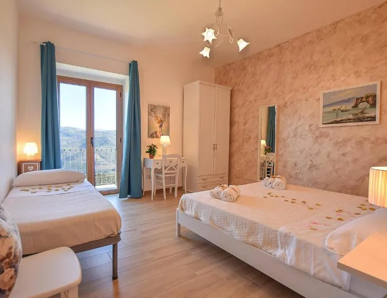 Spacious Accommodations: Miralento Country House in Rutino offers seven bedrooms and six bathrooms. The property features a living room and a fully equipped kitchen with modern appliances. Outdoor Amenities: Guests can enjoy a terrace, outdoor swimming pool, and free WiFi. The holiday home includes an outdoor play area, seating area, and children's playground. Convenient Facilities: The property provides free on-site private parking, air-conditioning, washing machine, and a dishwasher. Additional amenities include a barbecue, tea and coffee maker, and a TV. Nearby Attractions: Salerno - Costa d'Amalfi Airport is 31 mi away. The area offers sea and mountain views, providing ample opportunities for relaxation and exploration. This holiday home's standout feature is the private pool. Boasting a private entrance, this air-conditioned holiday home includes 1 living room, 7 separate bedrooms and 6 bathrooms with a shower and a hairdryer. Guests will find a stovetop, a refrigerator, a dishwasher and kitchenware in the kitchen. The holiday home also features a barbecue. The spacious holiday home offers a washing machine, a tea and coffee maker, a dining area as well as a terrace with sea views. The unit has 11 beds.