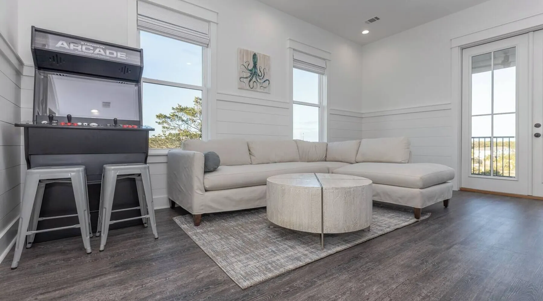 Spectacular gulf views and observation deck, 2.5 blocks from the beach Multiple identical houses available next door to each other. New construction that is a professionally decorated, luxury property completed November 2019. Sleeping arrangements include four king bedrooms plus a bunk room that has four queen mattresses so the house comfortably sleeps and entertains 12-16 people. First floor has a den with 65” tv, kitchen with professional stainless appliances and white quartz, half bath, laundry room with full size Samsung front loading steam washer and dryer, and a king bedroom. Second floor has two king bedrooms plus bathrooms and the bunk room which has four queen mattresses. Third floor has a king bedroom and bath plus a den with a 70” tv and an arcade machine. Third floor porch is a covered outdoor kitchen and seating area with a tv plus a spiral staircase that leads to the fourth floor, rooftop observation deck that has amazing gulf and sunset views. This new neighborhood is being built out as an 11-house community that is themed to blend in with the new surrounding developments on the east end of 30A. Exteriors are white, hard-coat stucco with every house having unique shutter colors. Interiors have shaker cabinets, white quartz, professional kitchen appliances, nickel gap shiplap wall siding, built in bunks, hardwood floors, soft LED lighting, NEST Thermostats, and all the items you need to be comfortable during your stay such as a Dyson Animal cordless vacuum. Why Grove at Inlet? This new neighborhood has you in the middle of everything but it isn’t as congested as surrounding communities. Once you unpack the groceries, it is possible to park your car and not use it for the rest of your week. Here are some of the attractions within two blocks of the house: Beach access – It is only a four minute, two and half block (approximately 460 steps) walk to the beach. What you will come to love about this South Wall Street beach access is that it is a Walton County neighborhood beach access point. This means that there is no parking for vehicles. The only people at this access point either walked here or biked here so it is a much quieter and less crowded beach than neighboring communities. There is a second public beach access point with parking and restrooms, approximately 760 steps away. Rosemary Beach – There is only one long block between us and the western border of Rosemary Beach but it is a further walk (approximately 1400 steps) to get all the way over to the Town Center at Rosemary Beach where there is great food, shopping, and seasonal activities open to the public. Restaurants include Amavida Coffee & Tea, Cowgirl Kitchen, Edward’s Food & Wine, Havana Beach Bar & Grill in the Pearl Hotel, La Crema Tapas & Chocolate, Pescado Rooftop Bar & Seafood Grill, Restaurant Paradis, and the Sugar Shack. Rosemary Beach is home to a popular farmers market every Sunday from 9am-1pm at Barrett Square. Like tennis? Rosemary Beach’s Racquet Club is one of the top 75 tennis destinations in the world and they are open to the public. Contact the Racquet Club to book a reservation. Food – Donut Hole, Shades Bar & Grill, Destin Ice Market 30A, Big Bad Breakfast at the Pointe, 30Avenue (Amici 30A Italian Kitchen, Barbacoa Mexican Grill, Cuvee 30A, Freshii, Great American Cookies, Marble Slab Creamery) are all within a two block radius of the house. Shopping – 30Avenue includes 30A Olive Oil, Design, L.A. Green, Lighting Etc., Love 2 Run, Margaret Ellen Bridal, Mingle, Outpost, Otium, Shades Sunglasses & Casual Apparel, Shimmering Seas, Willow + Mercer, and the 30A Medical Spa. Crossings at Inlet Beach includes DRIFT Home & Gifts | 30A On the Coast, Tassels Furniture & Design, Beach Blinds, Draperies & More, Lightning by Lavonne, and Rug Island. Rosemary Beach has Bombora Sun & Surf, Curate A Collaboration with Vinings Gallery, Gigi’s Fabulous Kids’ Fashions and Toys, Hissyfits Boutique, Moonpize a ladies shoe and gift boutique, Pish Posh Patchouli’s, Rosemary Beach Trading Company, and SEA Contemporary Art Space. Convenience – Destin Ice house across the street is an upscale grocery market for Fresh Gulf Seafood, Prime Meats, Fine Wines and Craft Beers, Gourmet Cheeses, Deli and Prepared Foods, and more that is open 9am-8pm daily. There is also a UPS Store across the street at Inlet Crossing. Gas station and convenience store are within a block of the house. No smoking in the house nor on patios, observation decks, or yards. Come see why Inlet Beach is becoming the best place to be in South Walton and on 30A! Construction – it is hard to find anywhere on 30A that doesn’t have any construction going on! This neighborhood consists of 11 houses. The first seven are complete and none are currently under construction. Houses 8 and 9 are estimated to break ground during September 2020 for a summer 2021 delivery. We will do our best to minimize the disruptions to our guests and keep everything contained but please be aware of this potential inconvenience. The common pool is complete. Reviews - Please see sister properties for reviews and availability. VRBO listings 1288308, 1262353, 1622778, 1620573, 1622323, 1767490, and 1885228.