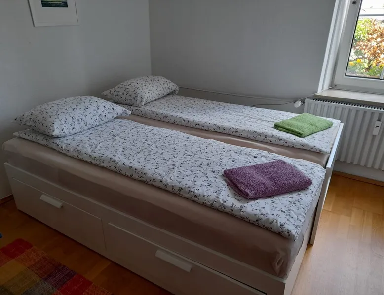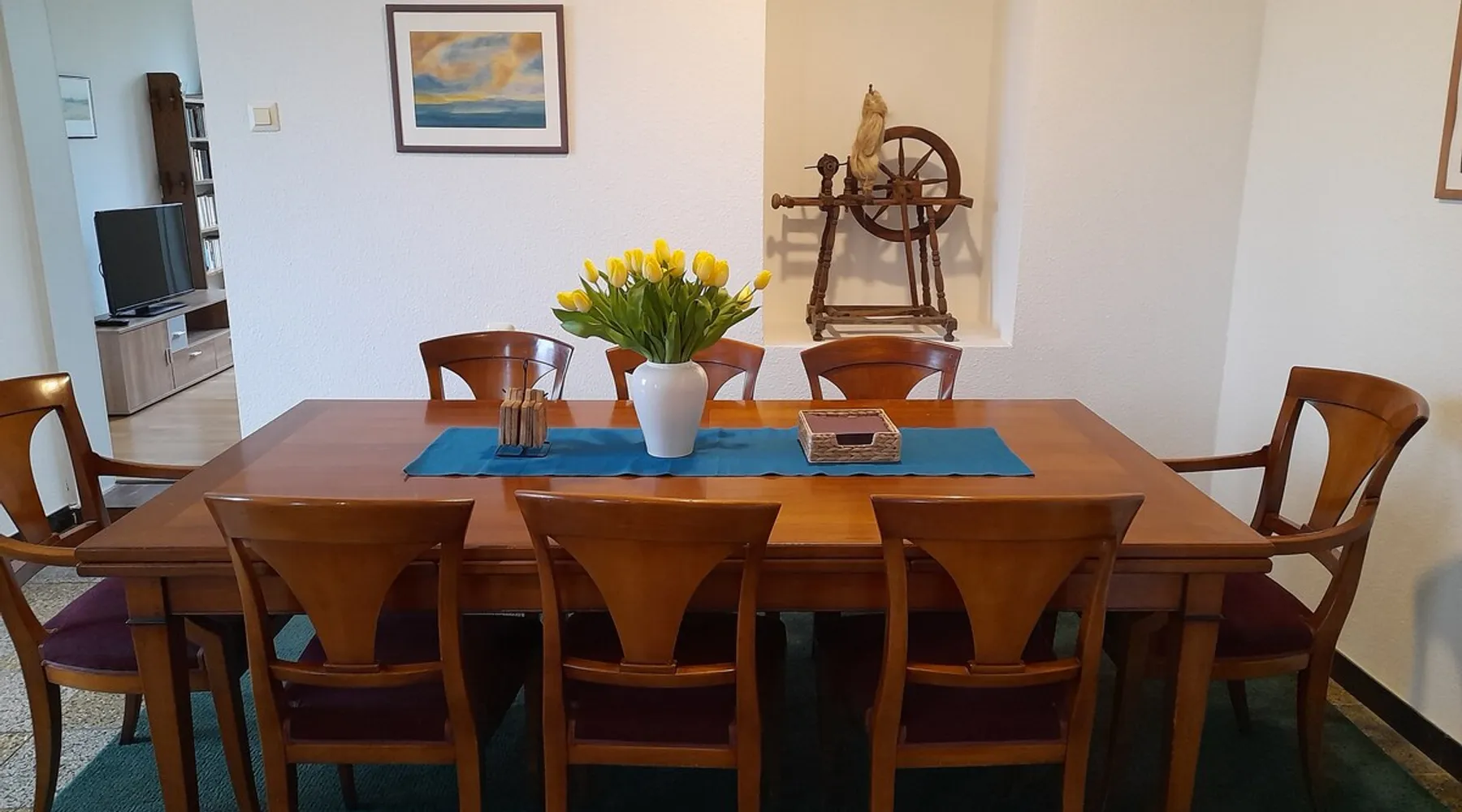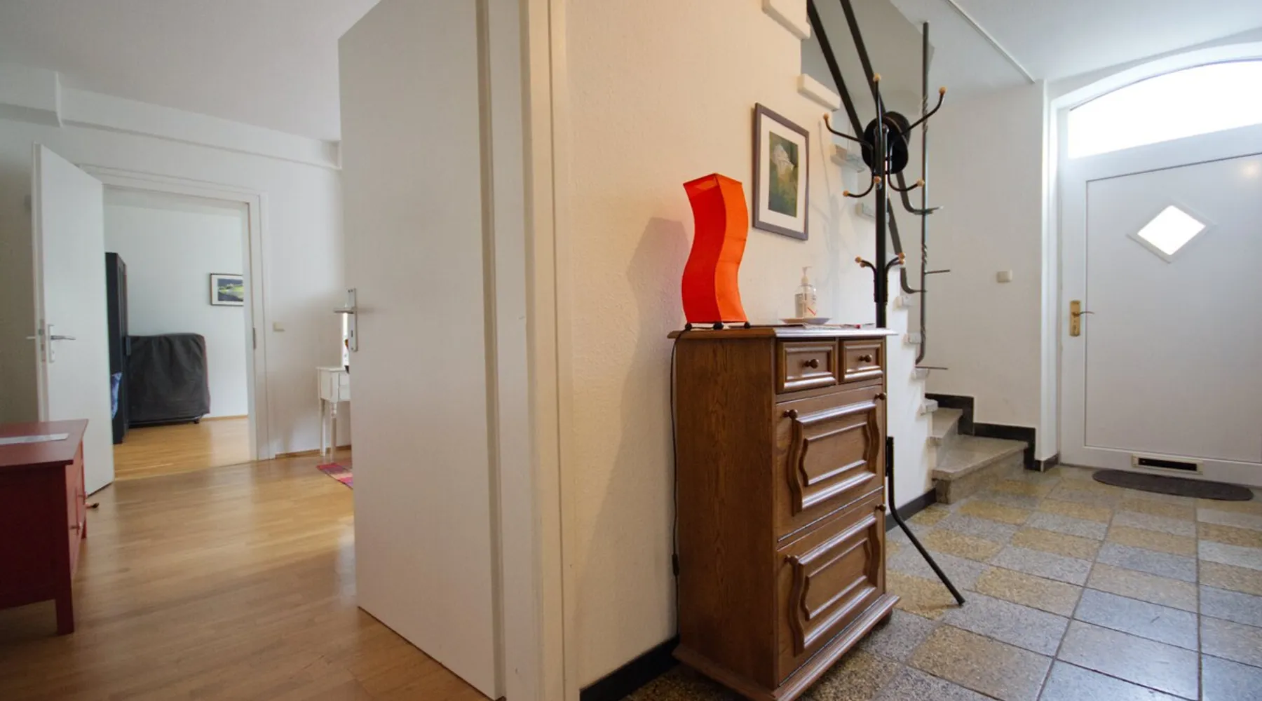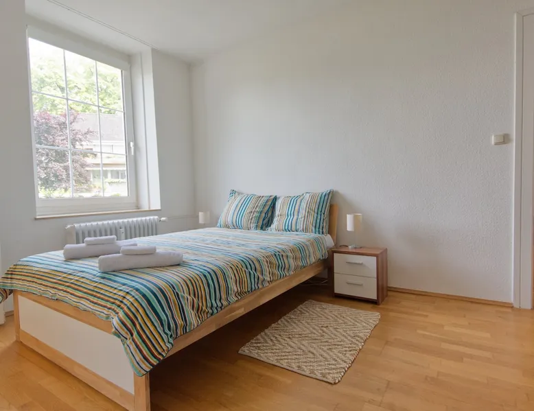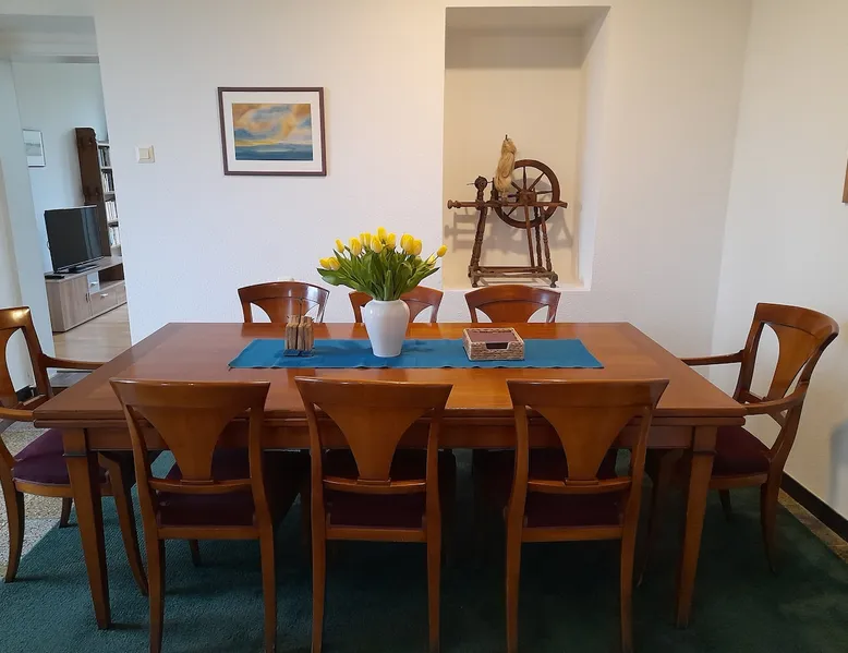 The Pension Altes Rathaus is a historical building that was used as a town hall 150 years ago. Thick walls guarantee natural coolness in summer and warmth in winter. A spacious lawn and two parking spaces can also be used. The cozy apartment is located in a quiet location on the edge of downtown Aachen, at the same time geographically close to recreational areas (Eifel, Dutch Switzerland, Ardennes) as well as connections to highways to Cologne, Düsseldorf, Brussels, Amsterdam, etc. The space As a building several hundred years old, the apartment is modernly furnished inside and has all the utensils necessary for a nice stay. It is quite cozy in the apartment, especially in the spacious dining room, which also houses the kitchen, and in the bright living room, from where our guests have direct access to the lawn and garden with terrace. It's a great place to sunbathe and marvel at the huge old trees and curious garden plants. From a position higher on the property, in good weather, a sensational distant view of Aachen, the Voreifel and the Hürtgenwald can be experienced. In unfavorable weather, guests in the apartment can cook, read, watch TV or just relax. Guest access On the left side of the house is the separate house entrance for guests. The entire living space of 92 square meters is at your disposal, as is the large lawn with terrace behind the house. Other things to note Aachen hosts some interesting events annually: At the beginning of the year, during the Carnival season, there are Rosenmontag trains and events such as the Order's awarding against the animal seriousness (also broadcast on national television). In summer, the world's most famous equestrian show jumping and riding tournament Chio takes place in the Soers (3 km away). In June of each year, the Aachen Karl Prize is awarded to famous personalities who are committed to the agreement of Europe. Then the market fills up in front of Aachener Rathaus with thousands of outlookers. In winter, tens of thousands of international visitors come to the Aachen Christmas Market on Bendplatz (3 km). Registration Details 005-2-0013725-22