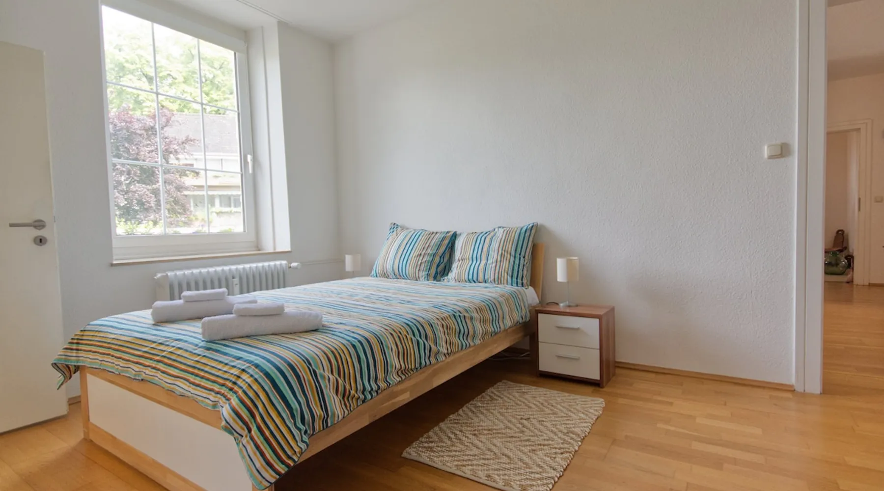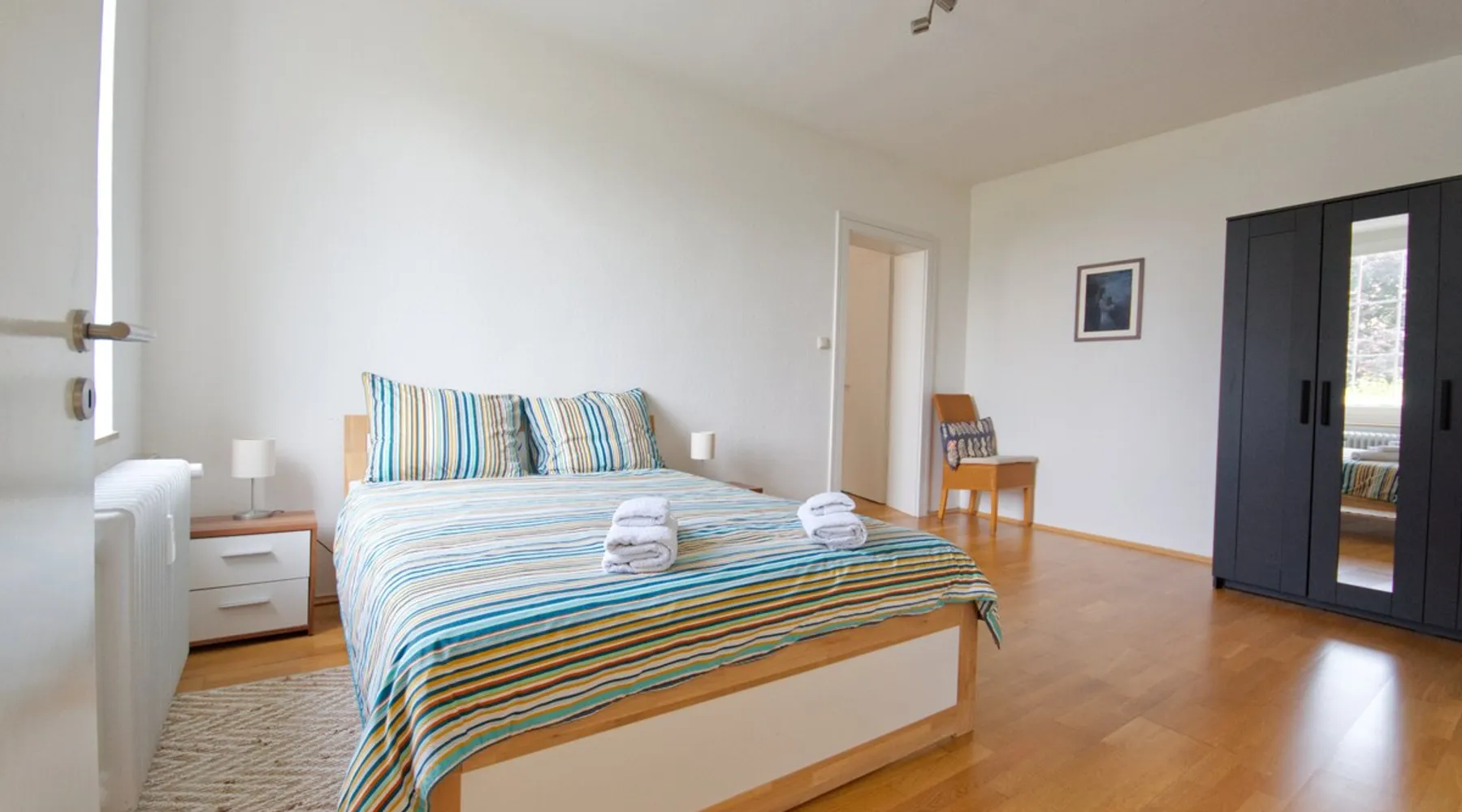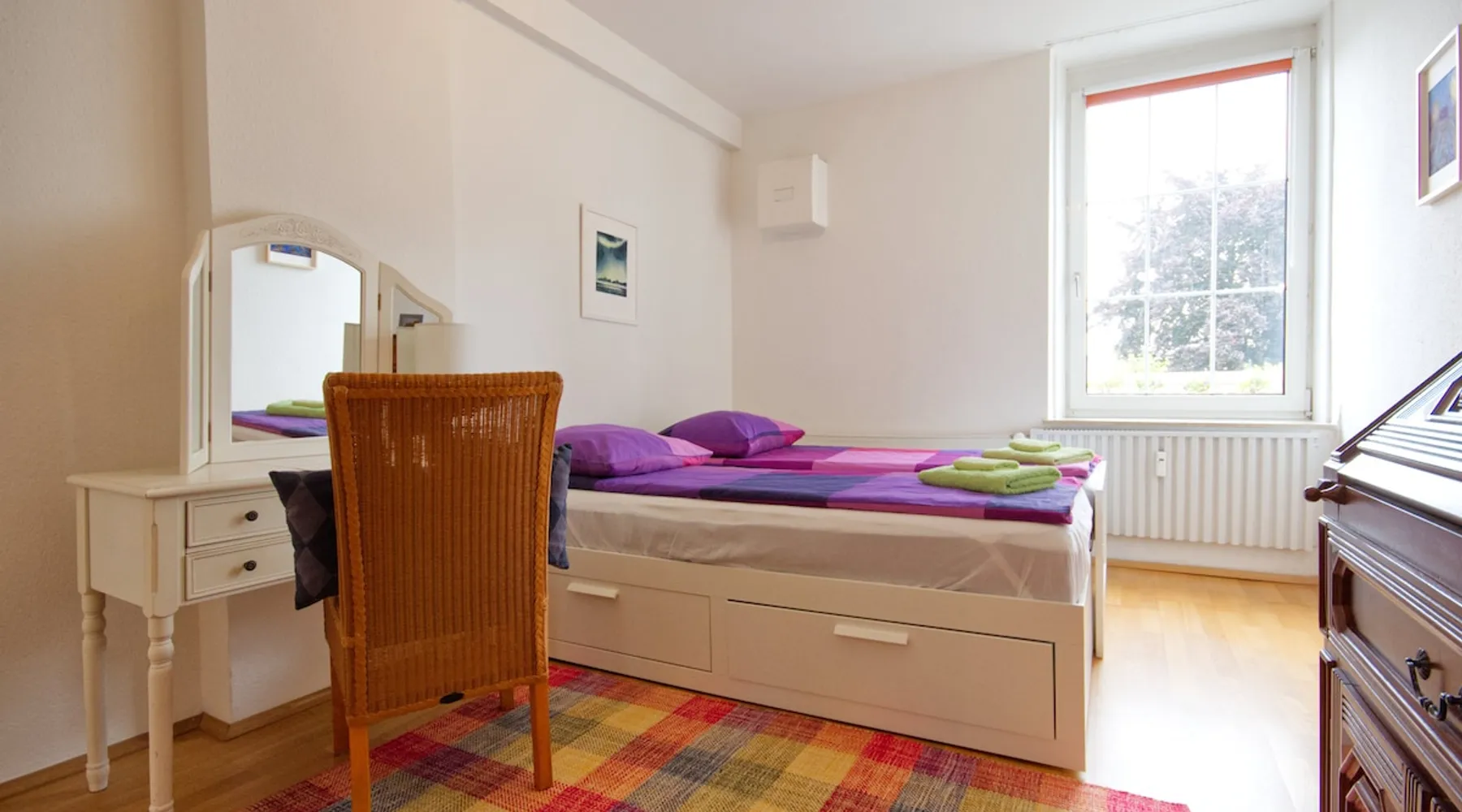 The Pension Altes Rathaus is a historical building that was used as a town hall 150 years ago. Thick walls guarantee natural coolness in summer and warmth in winter. A spacious lawn and two parking spaces can also be used. The cozy apartment is located in a quiet location on the edge of downtown Aachen, at the same time geographically close to recreational areas (Eifel, Dutch Switzerland, Ardennes) as well as connections to highways to Cologne, Düsseldorf, Brussels, Amsterdam, etc. The space As a building several hundred years old, the apartment is modernly furnished inside and has all the utensils necessary for a nice stay. It is quite cozy in the apartment, especially in the spacious dining room, which also houses the kitchen, and in the bright living room, from where our guests have direct access to the lawn and garden with terrace. It's a great place to sunbathe and marvel at the huge old trees and curious garden plants. From a position higher on the property, in good weather, a sensational distant view of Aachen, the Voreifel and the Hürtgenwald can be experienced. In unfavorable weather, guests in the apartment can cook, read, watch TV or just relax. Guest access On the left side of the house is the separate house entrance for guests. The entire living space of 92 square meters is at your disposal, as is the large lawn with terrace behind the house. Other things to note Aachen hosts some interesting events annually: At the beginning of the year, during the Carnival season, there are Rosenmontag trains and events such as the Order's awarding against the animal seriousness (also broadcast on national television). In summer, the world's most famous equestrian show jumping and riding tournament Chio takes place in the Soers (3 km away). In June of each year, the Aachen Karl Prize is awarded to famous personalities who are committed to the agreement of Europe. Then the market fills up in front of Aachener Rathaus with thousands of outlookers. In winter, tens of thousands of international visitors come to the Aachen Christmas Market on Bendplatz (3 km). Registration Details 005-2-0013725-22