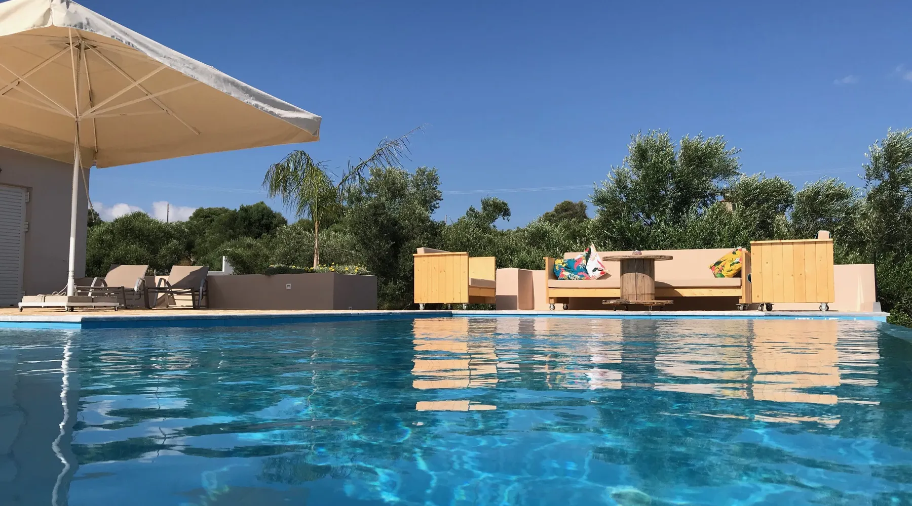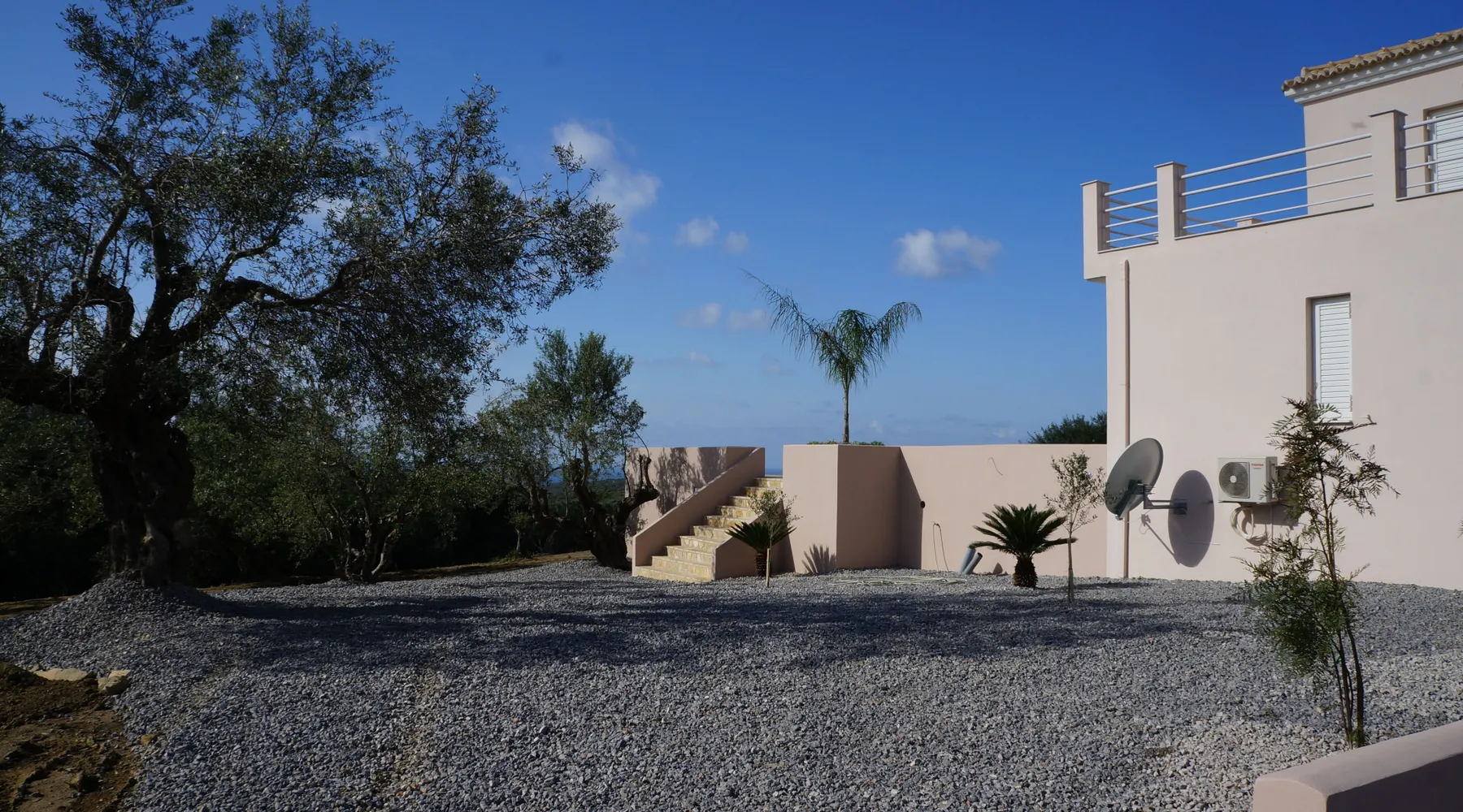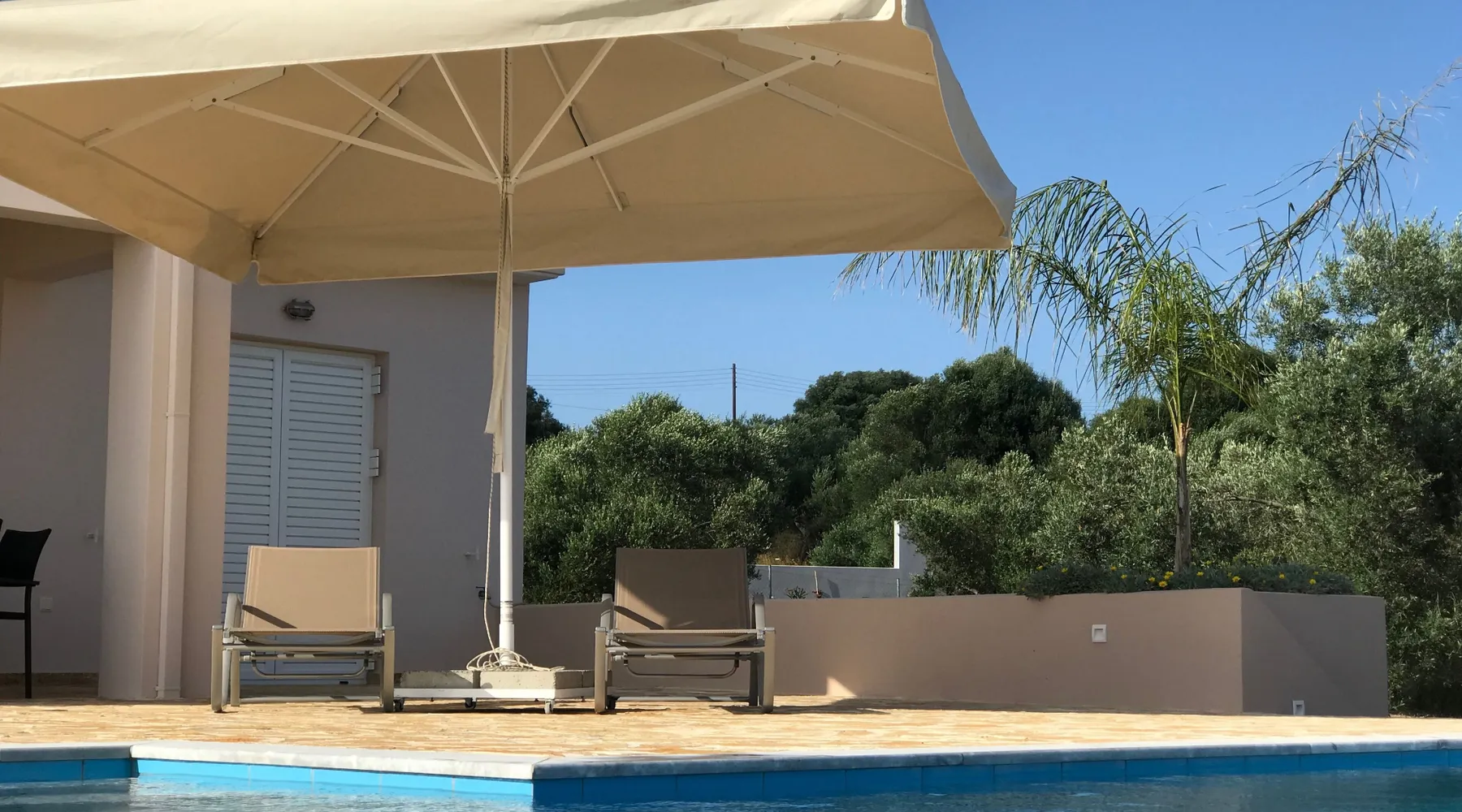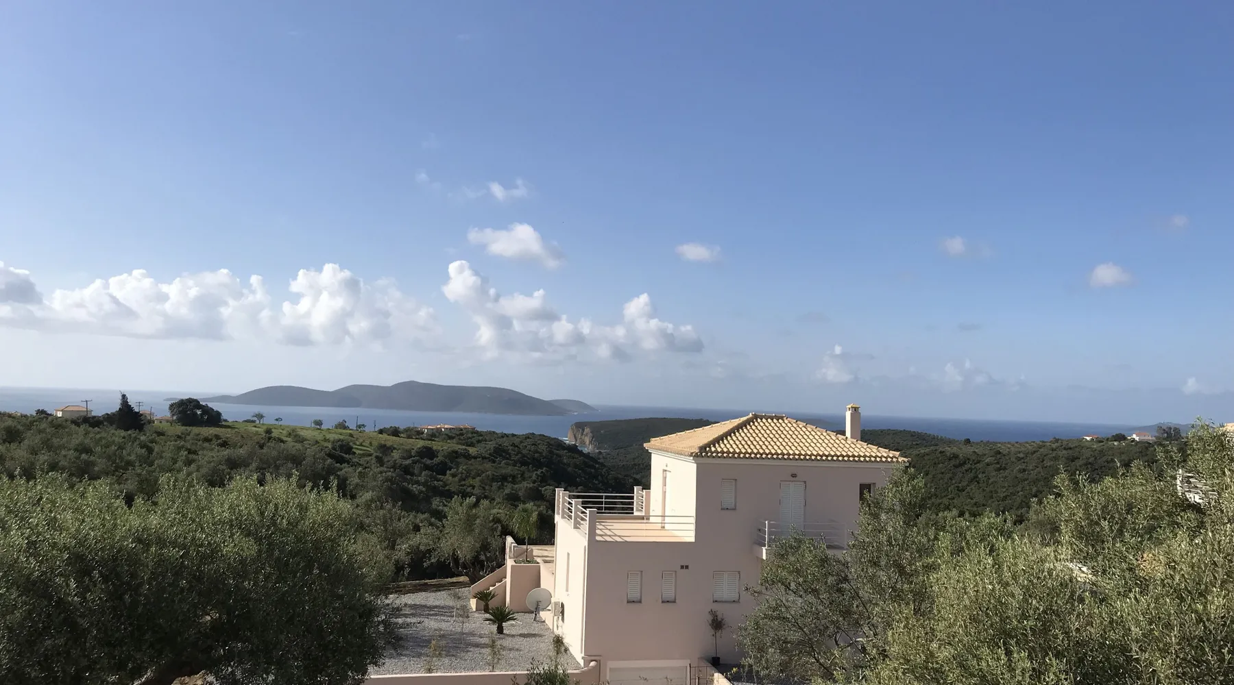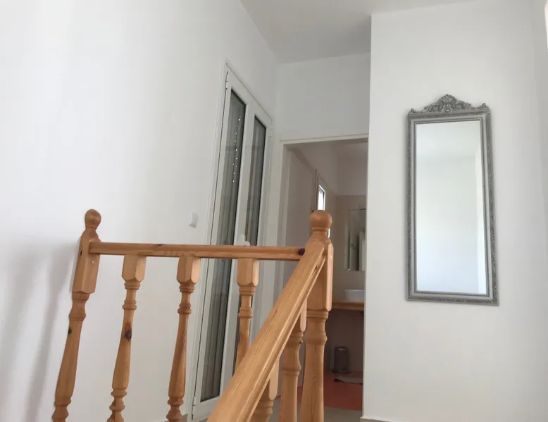 Villa Elia (2017) is a luxury holiday home with a private infinity swimming pool and outdoor shower. There are three terraces. The villa is located in a beautiful olive grove. The terrace upstairs has a beautiful view over the valley and the village of Finiki. The luxurious kitchen diner is fully equipped including clean drinking water. On the same floor you will find the cozy living room, a toilet, a luxurious bathroom and the master bedroom with doors opening onto the terraces with a sea view. On the terrace is a lounge set with a parasol, wonderful sun beds to relax by the pool. All windows and doors are fitted with mosquito nets. 2 bedrooms with large terrace with luxury bathroom are on the first floor. From all rooms you have a beautiful view of the sea and the valley. Both bedrooms have two separate box springs, which can be connected, and have a closet. All bedrooms are air-conditioned. A washing machine is available in the garage. Villa Elia stands in the middle of the Natura 2000 nature reserve, in a valley with unobstructed views and a serene tranquility. You can walk to the Greek tavern Apolafsy. At 2 kilometers you will find the village of Evangelismos, where you will find an authentic Greek village tavern, and a mini supermarket. Ideal for families who want to have their own villa together, but still. You therefore also book Villa Kamaria l. These houses are in the same area.