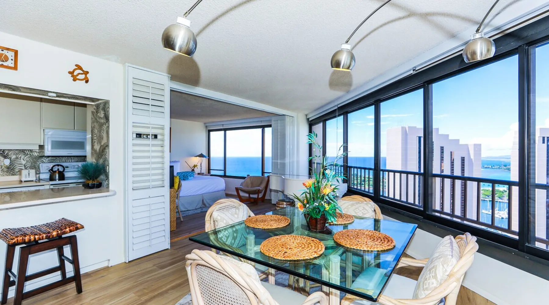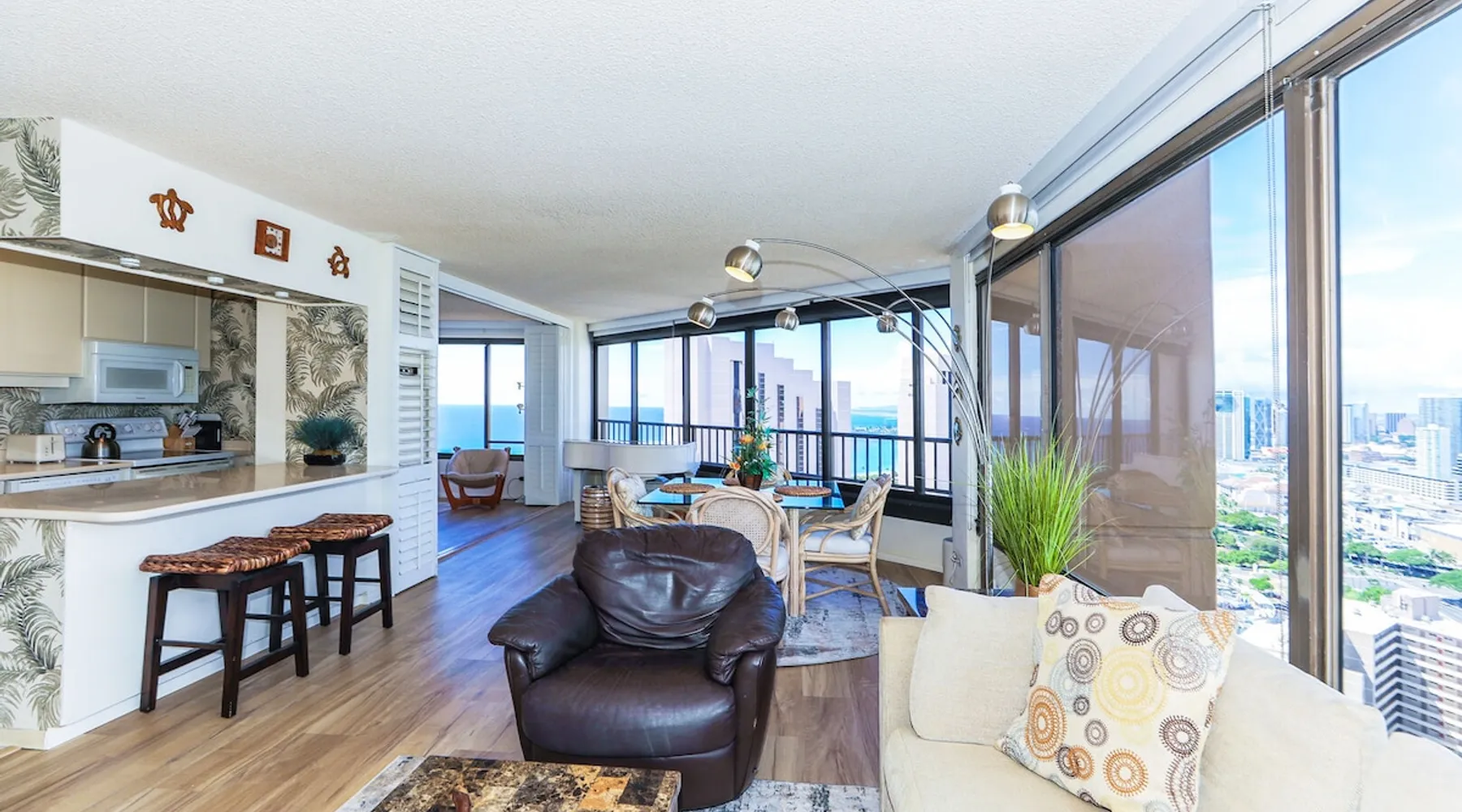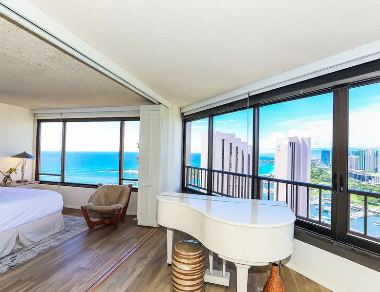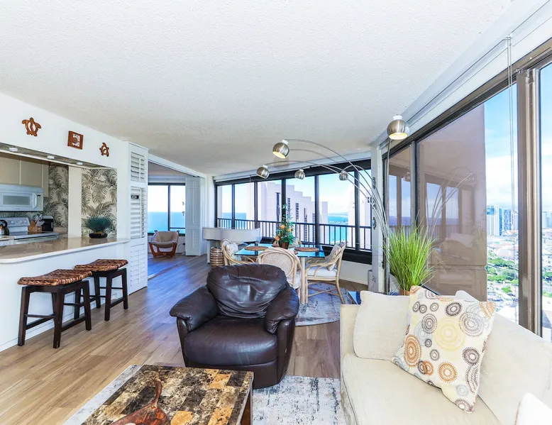 Soar above the city in this spacious 2-bedroom, 2-bathroom condo on the 36th floor of Discovery Bay, offering stunning panoramic views of the Pacific Ocean. This beautifully furnished unit features a king bed in the primary bedroom and a queen bed in the second bedroom, providing comfort for families or groups. Enjoy modern conveniences including FREE WiFi, cable TV, central A/C, in-unit washer/dryer, and one assigned parking stall. The space 2 Bedroom Deluxe Ocean View on the 36th Floor! This updated unit is near shopping, the bus line, restaurants, world famous Waikiki Beach and much more. One parking stall is also included. Amenities include a sun bathing deck, pool, jacuzzi, fitness room, BBQ stations, and a sitting area with tables and benches. This is your perfect home away from home, with a great location and amenities for you to use! TA-016-744-0384-01 Registration Details 260120100274, 3604, TA-016-744-0384-01