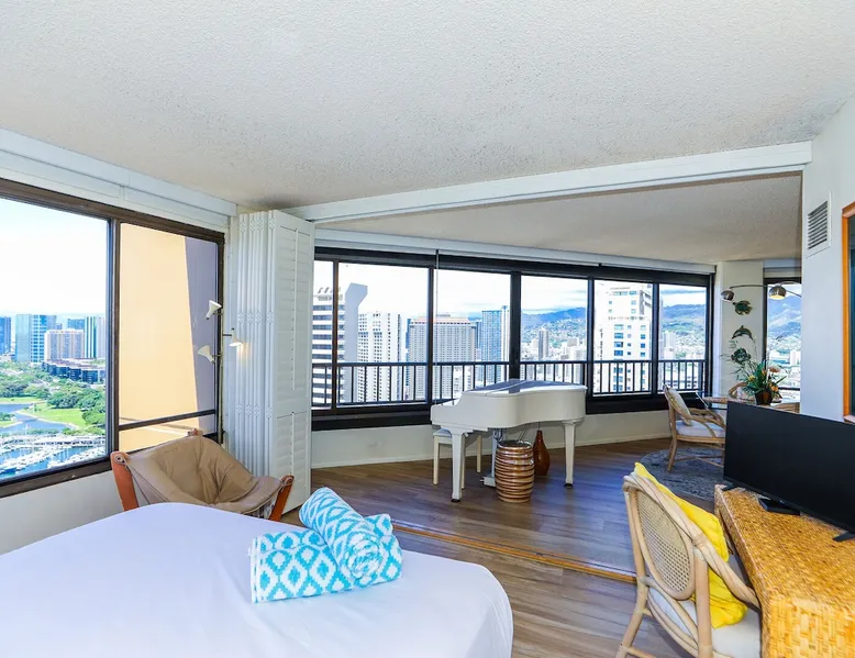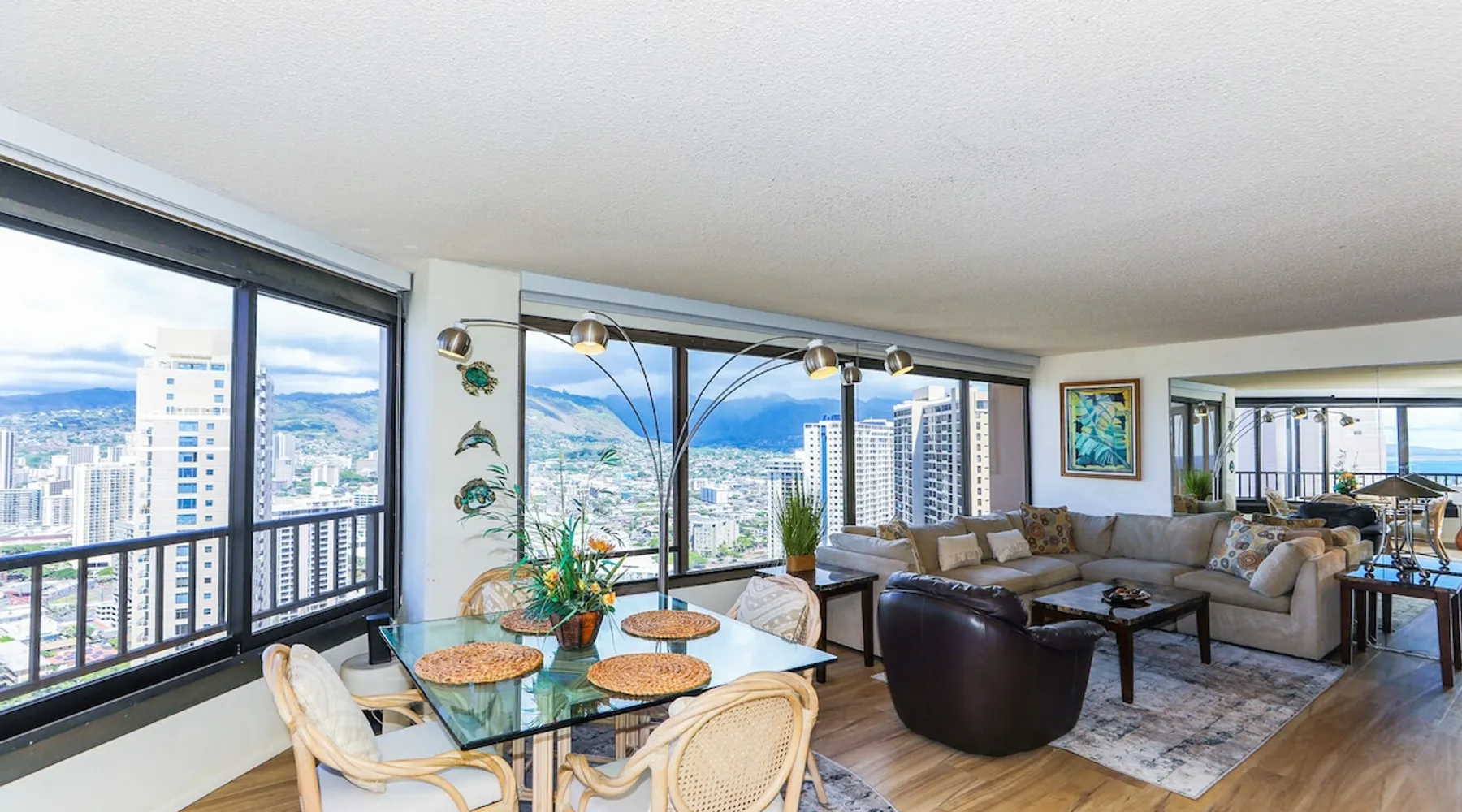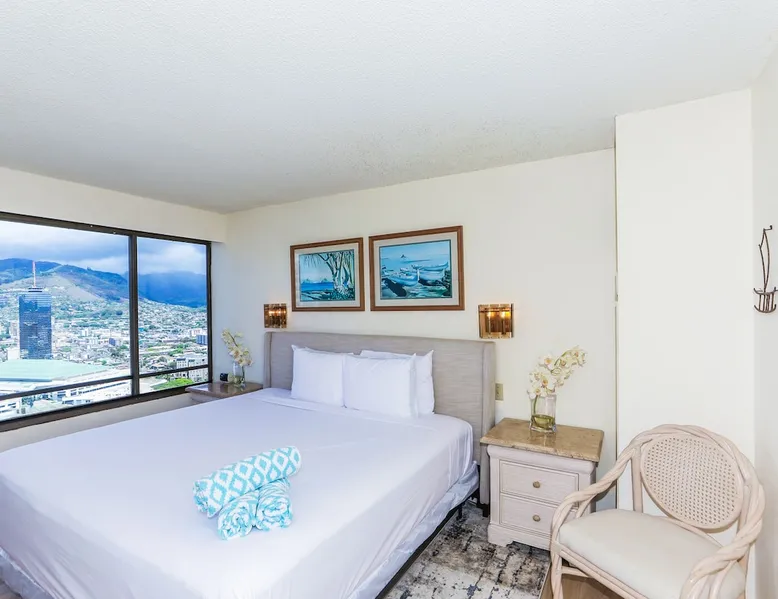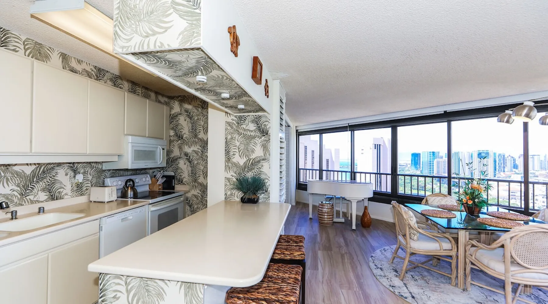 Soar above the city in this spacious 2-bedroom, 2-bathroom condo on the 36th floor of Discovery Bay, offering stunning panoramic views of the Pacific Ocean. This beautifully furnished unit features a king bed in the primary bedroom and a queen bed in the second bedroom, providing comfort for families or groups. Enjoy modern conveniences including FREE WiFi, cable TV, central A/C, in-unit washer/dryer, and one assigned parking stall. The space 2 Bedroom Deluxe Ocean View on the 36th Floor! This updated unit is near shopping, the bus line, restaurants, world famous Waikiki Beach and much more. One parking stall is also included. Amenities include a sun bathing deck, pool, jacuzzi, fitness room, BBQ stations, and a sitting area with tables and benches. This is your perfect home away from home, with a great location and amenities for you to use! TA-016-744-0384-01 Registration Details 260120100274, 3604, TA-016-744-0384-01