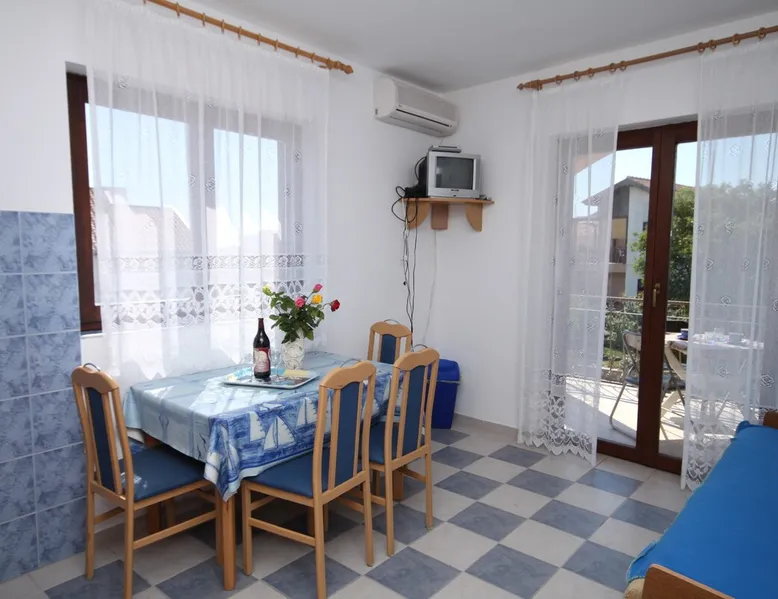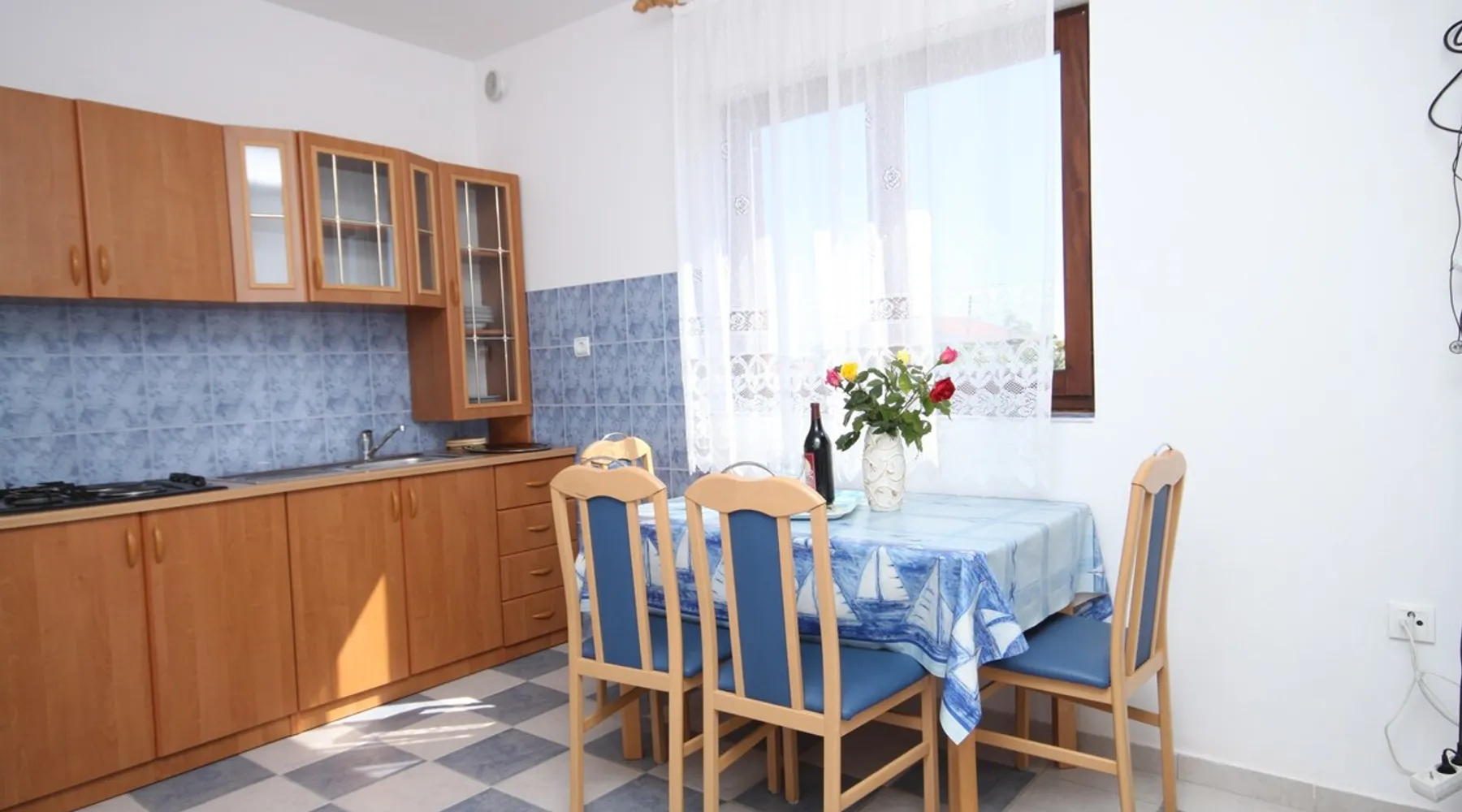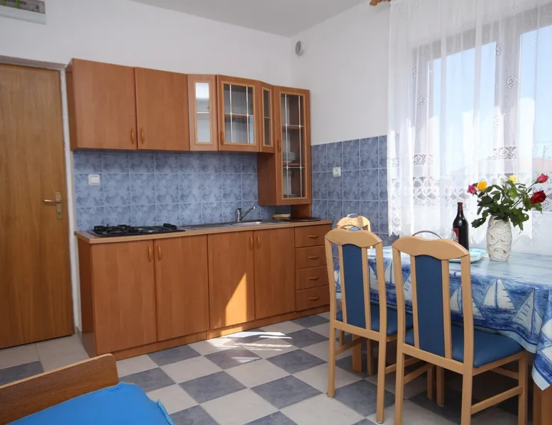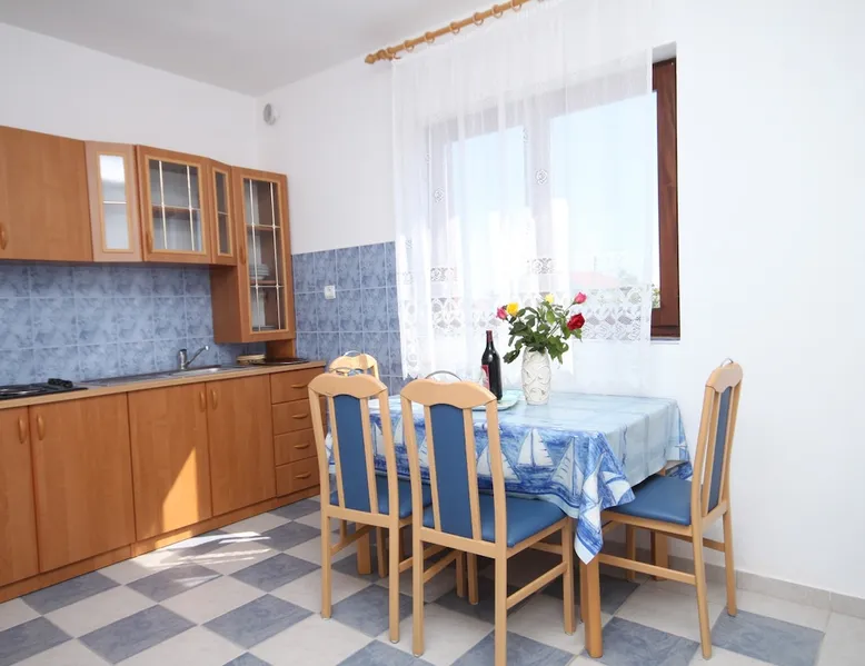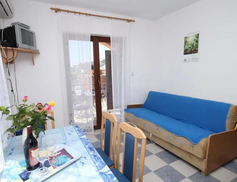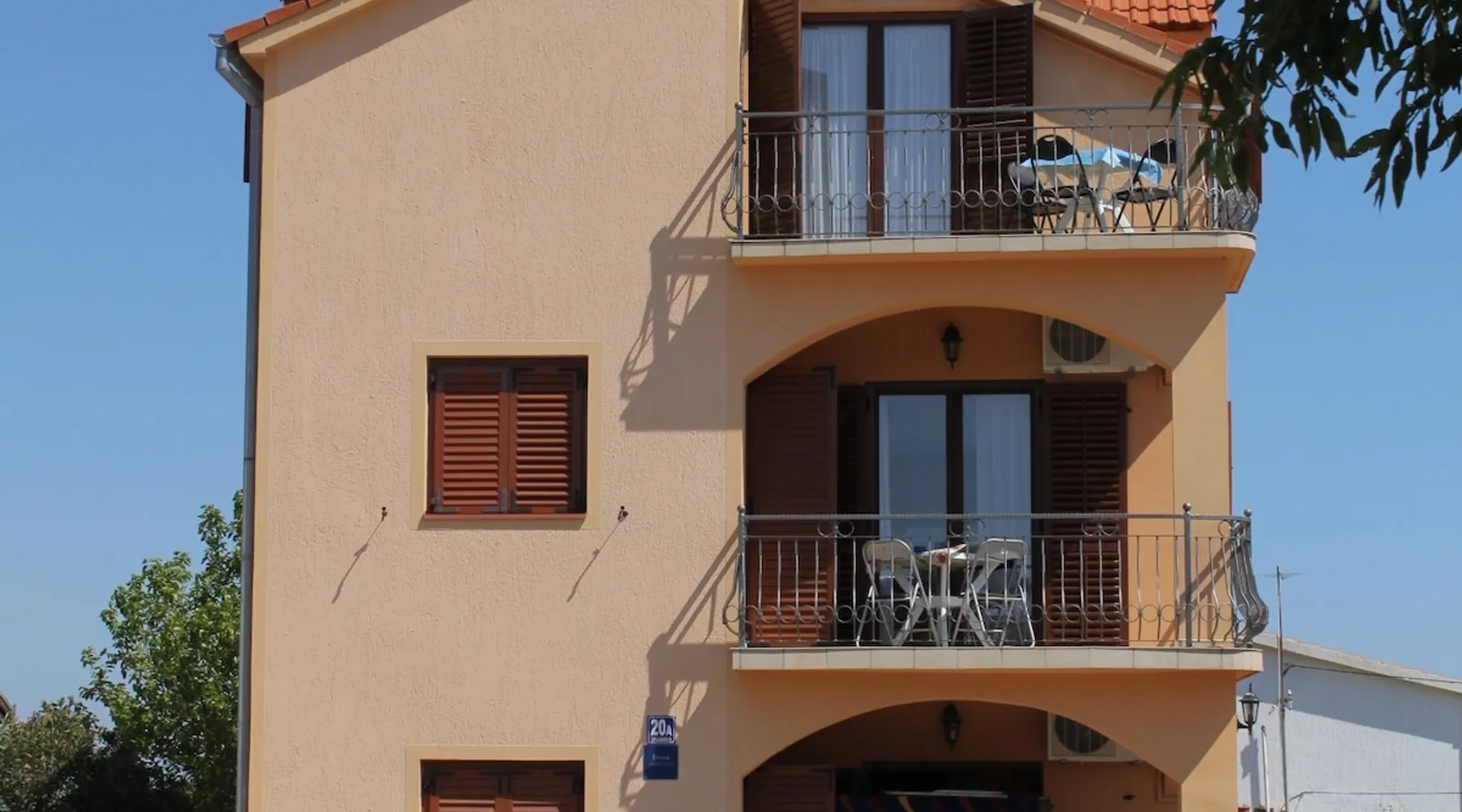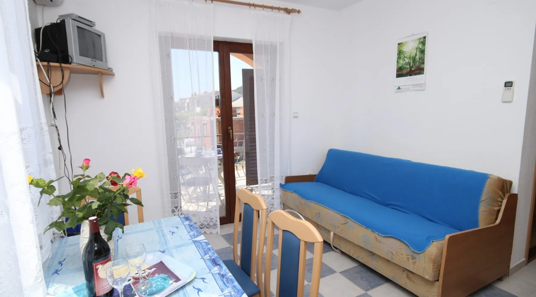 House 6223 in the town of Tribunj, Vodice - North Dalmatia has accommodation units of type Apartment (4) and is 550 m away from the sea. The nearest beach to this accommodation is a pebble beach. During your holiday, there may be other guests in the house's other apartments. During your holiday, your hosts will also be present in the house. The house owner is under no obligation to accept additional persons and pets that were not stated in the reservation request and it is necessary to report th The space Apartment can accommodate 4 guests. Beds are situated in 1 sleeping rooms, but also in the living room, within 30m2. Guests can enjoy a sea view from the private terrace. Food can be prepared using barbecue which is shared with other guests too. This accommodation unit welcomes pets at an additional charge. INCLUDED IN THE PRICE: tourist tax, final cleaning, parking, internet, laundry, iron, ironing board, hairdryer. OPTIONAL ADDITIONAL COSTS: air-conditioning (€0.80 per hour), pets (€5.00 per night). The availability of additional services for your chosen dates of stay, as well as their prices (if none are listed) must be checked ahead of time. Any additional services not shown in the price calculation are payable directly to the property owner and only if used by the visitor. AMENITIES Courtyard (100m2, Sitting area), Parking lot (Number of parking spaces: 4, Distance from the house: In the courtyard), Barbecue: shared, WiFi Internet, Laundry service, Hairdryer, Iron, Ironing board LOCATION AND ACCESS Main road between the property and the beach Car access possible: Yes The facility is situated in relatively quiet surroundings The property isn't surrounded by greenery DISTANCES Sea: 550 m Beach: 550 m Centre: 2.5 km Shop: 850 m Urgent medical care: 3 km Pharmacy: 3 km Exchange office: 850 m ATM/Bank machine: 850 m Tourist info: 1.2 km