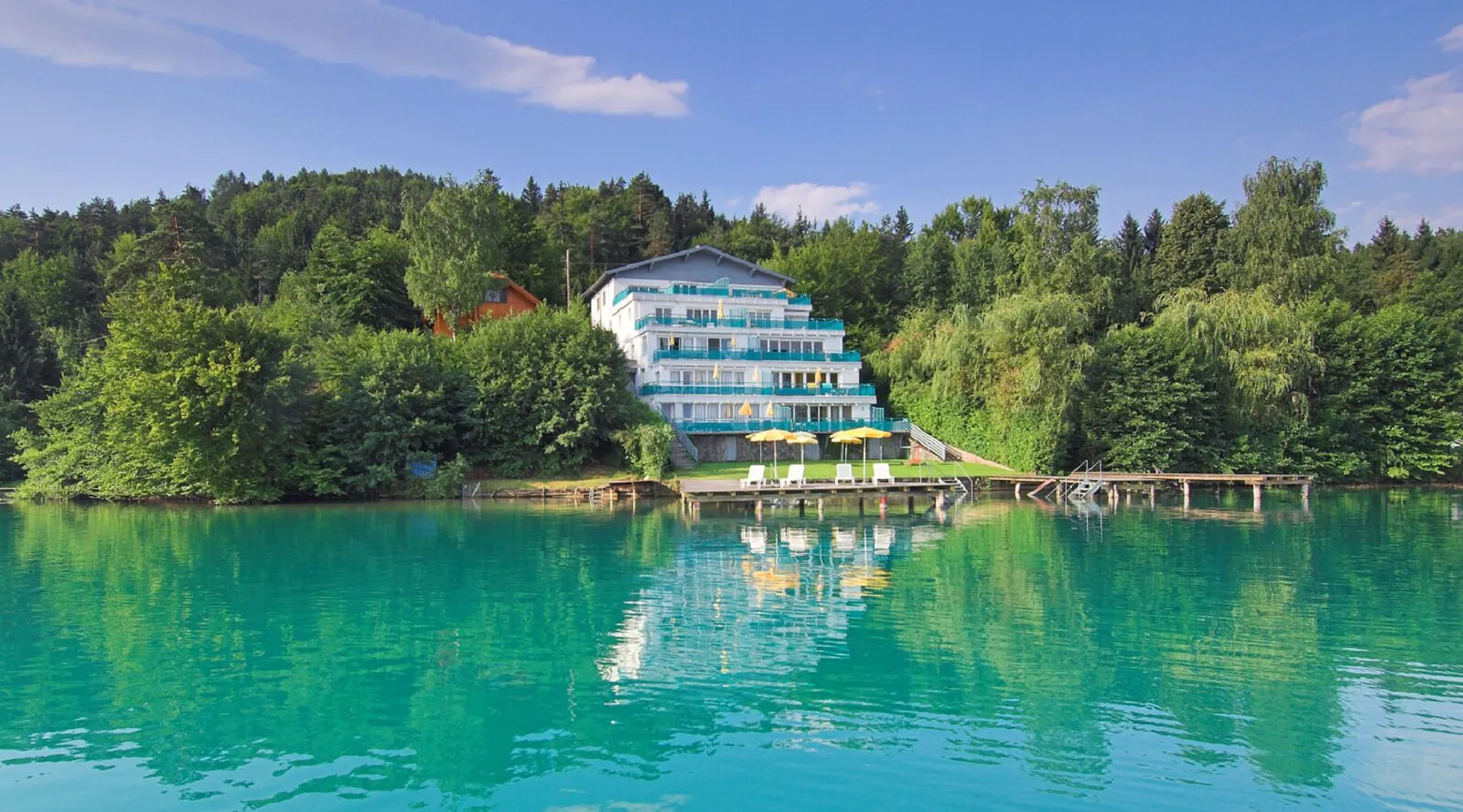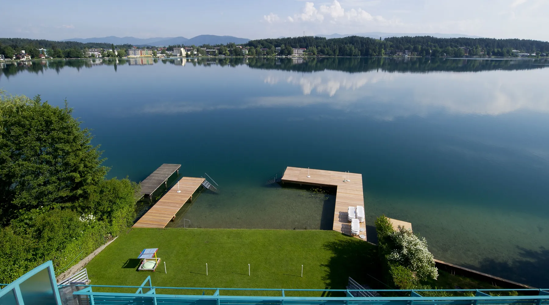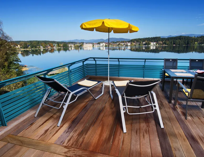 An unforgettable dreamlike stay in a particularly appealing ambience, in an excellent, quiet location, embedded in a dreamlike mountain and lake world. This is what our fantastic apartment right on Klopeiner See, in the beautiful southern Carinthia, the sunny corner of Austria, offers, with top marks in all major web forums. Our terraced holiday home is in a fantastic location on the particularly quiet south shore of Lake Klopein. The apartment is modern and individually decorated. The well-kept lawn and the bathing jetty are sufficiently equipped with sun loungers and parasols.