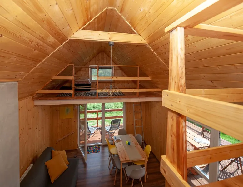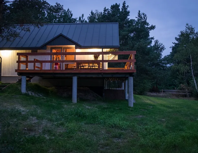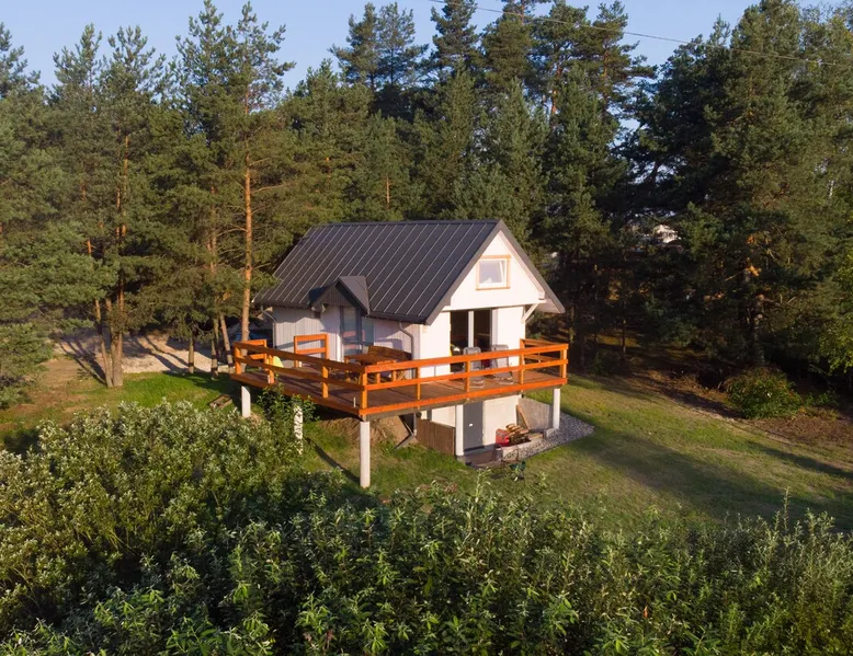 A new wooden house, under a forest in Roztocze in the Landscape Park of the Solska Forest. Rooms: lockable bedroom, living room with kitchen, two mezzanines with sleeping areas, basement with laundry. Equipment: dishwasher, electric kitchen, refrigerator, dishes. On the large deck with sun loungers, you can inhale clean and fresh air, smelling pine trees grow next to it. Getting into the woods is a walk through a meadow 100m. Bikes, hammock, swing, grill. You can heat up in the house by smoking in a pieco-combins. The space From the house you enter the forest, which is our property, and there is already a wealth of nature: mushrooms, berries, blueberries, and beautiful nature. And you can explore by bike, 4 for adults, 2 for children. Guest access An entire home, adjacent land, and forest. Other things to note For A relaxing retreat, we can't accommodate party-goers who may be disruptive to neighbors and forest animals. We don't accept stays for bachelorette parties, smoking, alcoholic libations. Pets can stay, but as long as they don't leave fur or damage. We built this home for ourselves to relax from Krakow's smog. If you stop by, respect this place so you can use it for a long time. ATTENTION!!! The house has central heating powered by a wood-burning stove. Guests who will be spending time in the fall and winter must know that they will have to light a stove and add trees themselves:)