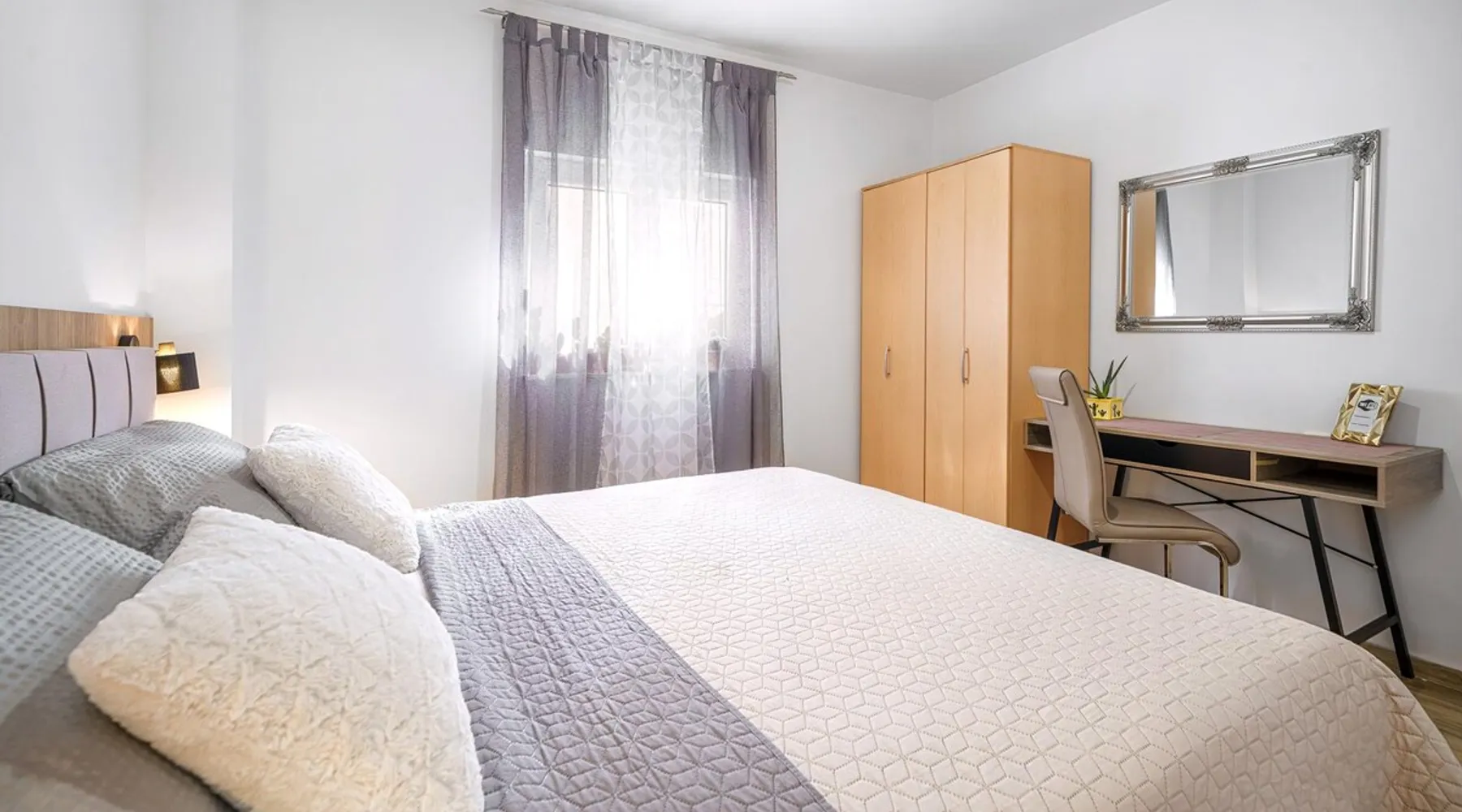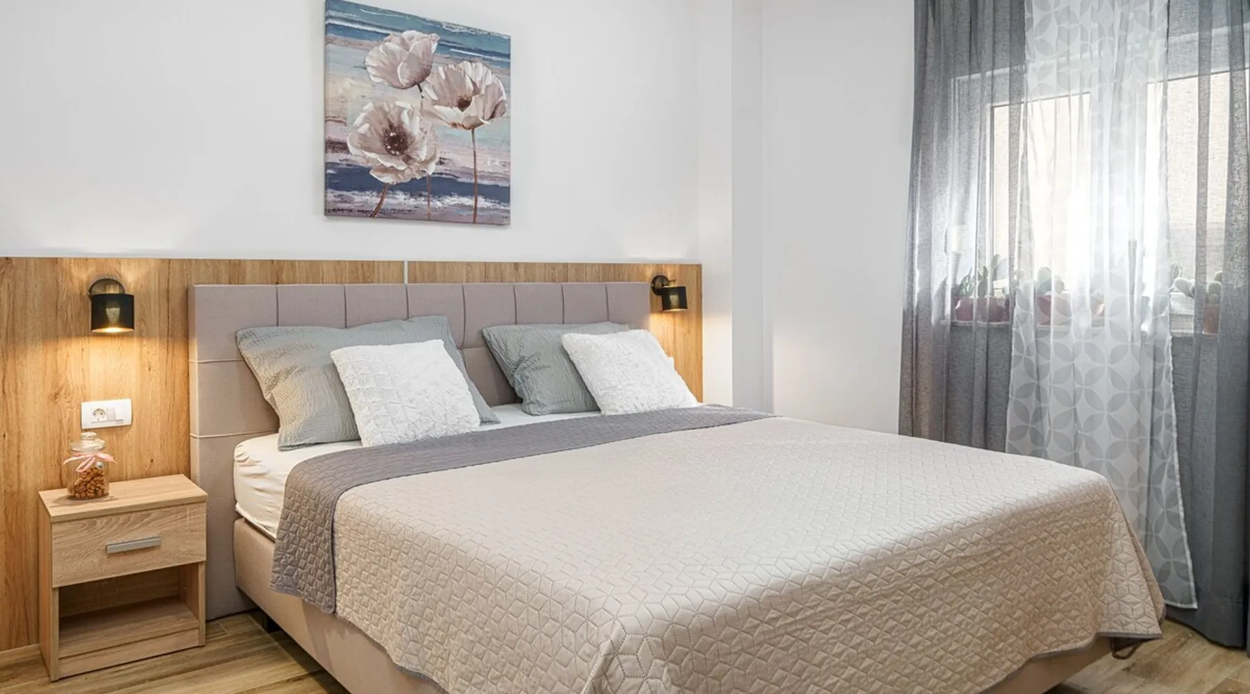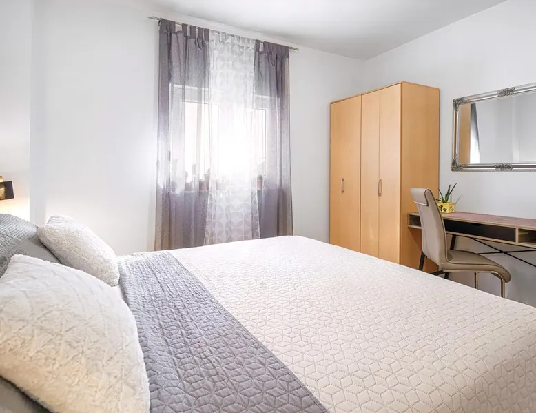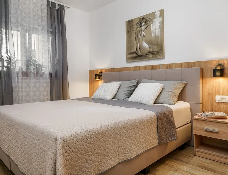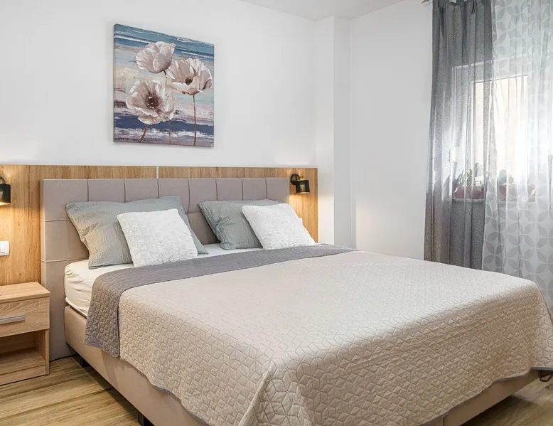 The space Discover our inviting ground-floor vacation apartment, ideally suited for couples or families in search of relaxation and adventure. This lovingly maintained apartment features two blackout bedrooms, along with a spacious living area, which, combined with the 70m² (753 sq ft) of living space and an additional 18m² (194 sq ft) terrace, offers a perfect holiday oasis. Thanks to the separate entrance that provides a marvelous view of the garden, you will feel at home from the moment you arrive. Inside, the air-conditioned environment ensures comfortable temperatures at all times. The two bedrooms with large double beds promise peaceful nights, while the living area is equipped with a ceramic hob, dishwasher, a filter and capsule coffee machine, as well as a kettle, to make your stay as comfortable as possible. The apartment also features underfloor heating in some areas and includes a bathroom with a shower and a separate toilet, catering optimally to your needs for comfort and privacy. The apartment's terrace, surrounded by a lovingly designed garden, offers you a furnished haven of tranquility outdoors. A parking space with ample room for your vehicles is also available. The location promises closeness to both the blue sea and beach (500m) as well as the lively town center (500m), where shops, bakeries, restaurants, and other services are within a few minutes' walk. Enjoy the comfort of our vacation apartment as a starting point for explorations in the area, from beach visits to water sports activities (600m), and make your vacation an unforgettable experience.