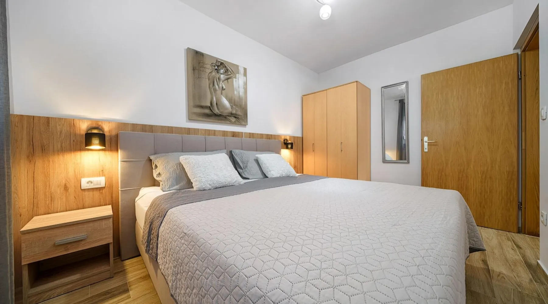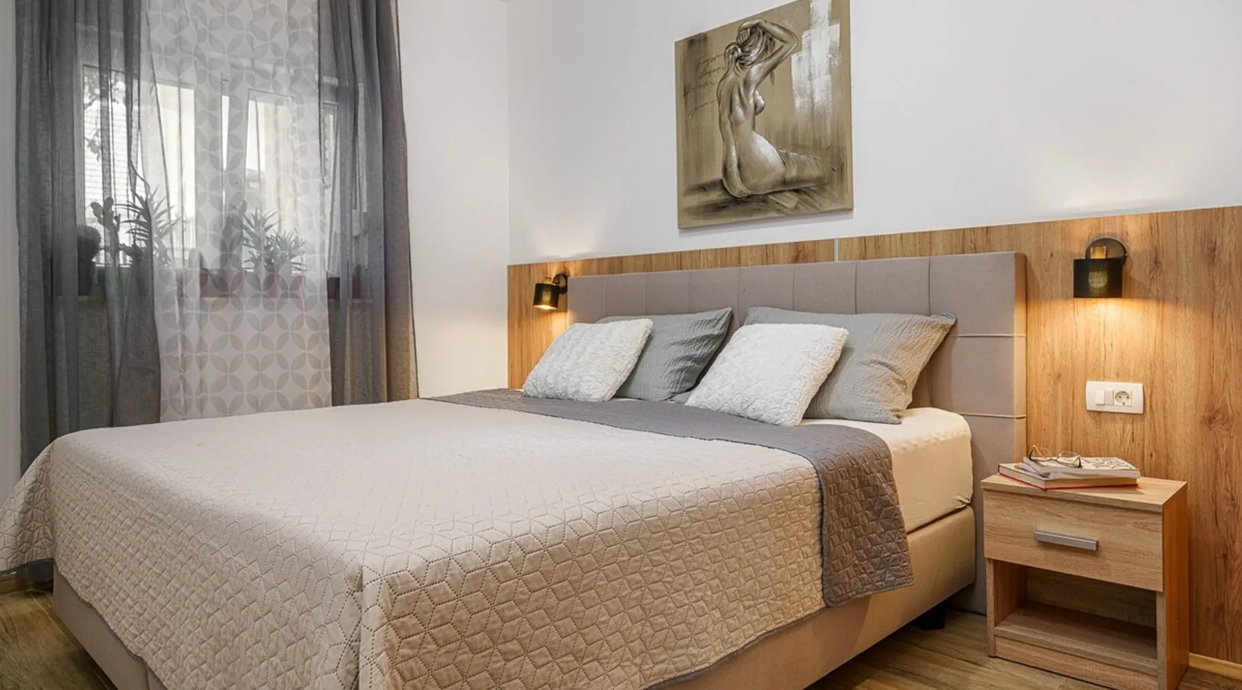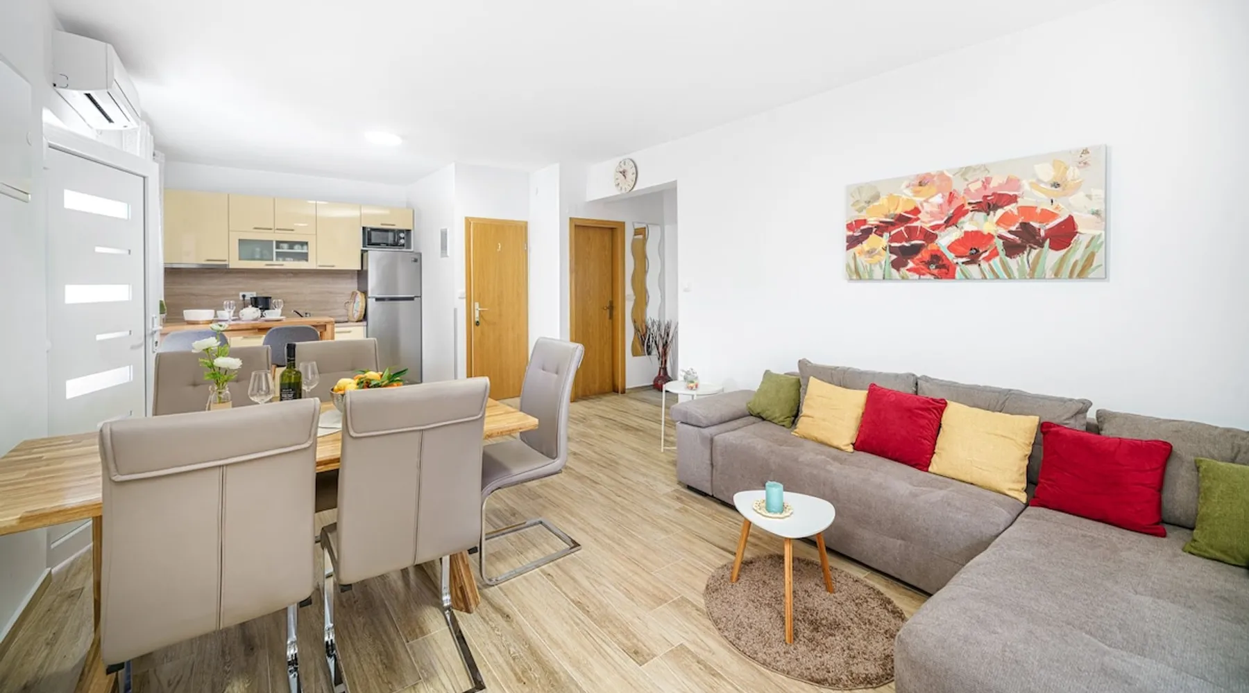 The space Discover our inviting ground-floor vacation apartment, ideally suited for couples or families in search of relaxation and adventure. This lovingly maintained apartment features two blackout bedrooms, along with a spacious living area, which, combined with the 70m² (753 sq ft) of living space and an additional 18m² (194 sq ft) terrace, offers a perfect holiday oasis. Thanks to the separate entrance that provides a marvelous view of the garden, you will feel at home from the moment you arrive. Inside, the air-conditioned environment ensures comfortable temperatures at all times. The two bedrooms with large double beds promise peaceful nights, while the living area is equipped with a ceramic hob, dishwasher, a filter and capsule coffee machine, as well as a kettle, to make your stay as comfortable as possible. The apartment also features underfloor heating in some areas and includes a bathroom with a shower and a separate toilet, catering optimally to your needs for comfort and privacy. The apartment's terrace, surrounded by a lovingly designed garden, offers you a furnished haven of tranquility outdoors. A parking space with ample room for your vehicles is also available. The location promises closeness to both the blue sea and beach (500m) as well as the lively town center (500m), where shops, bakeries, restaurants, and other services are within a few minutes' walk. Enjoy the comfort of our vacation apartment as a starting point for explorations in the area, from beach visits to water sports activities (600m), and make your vacation an unforgettable experience.