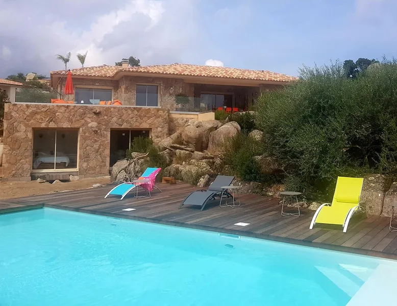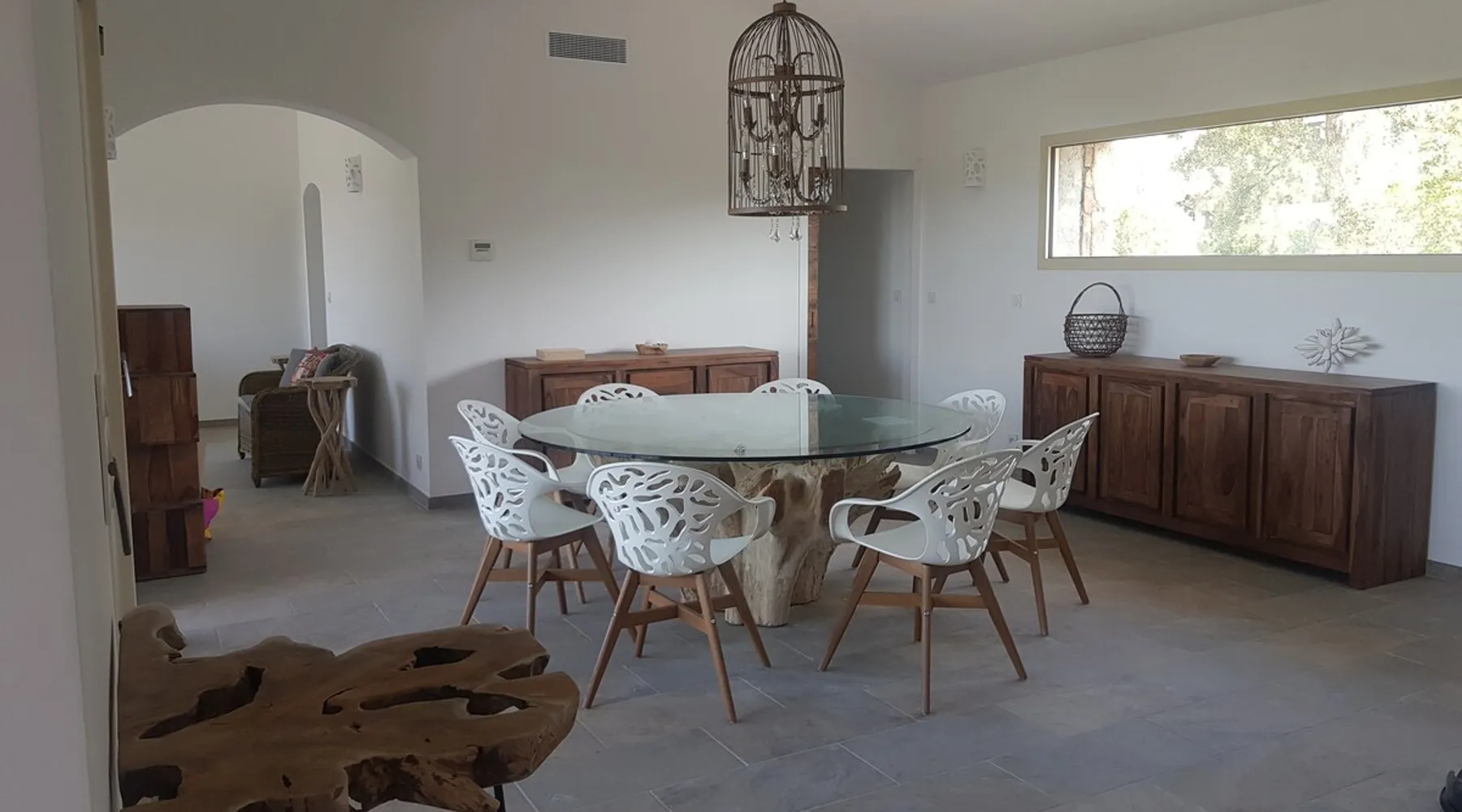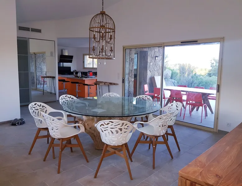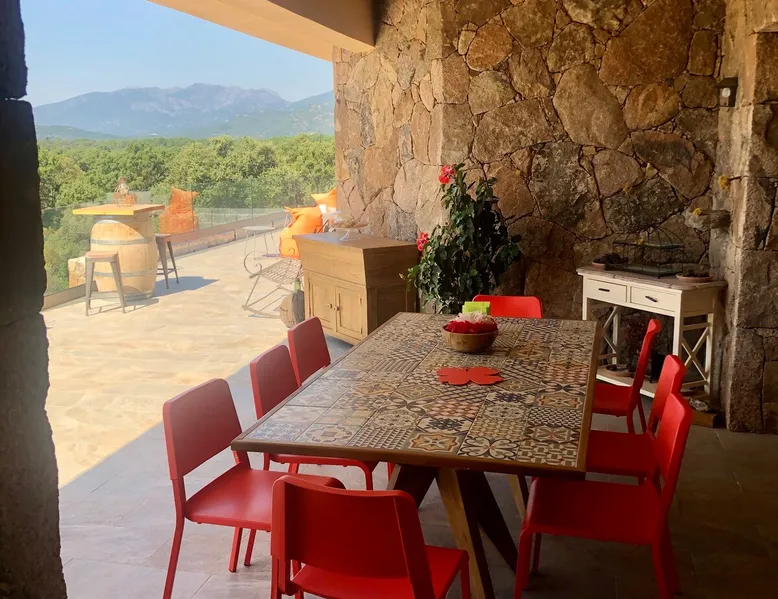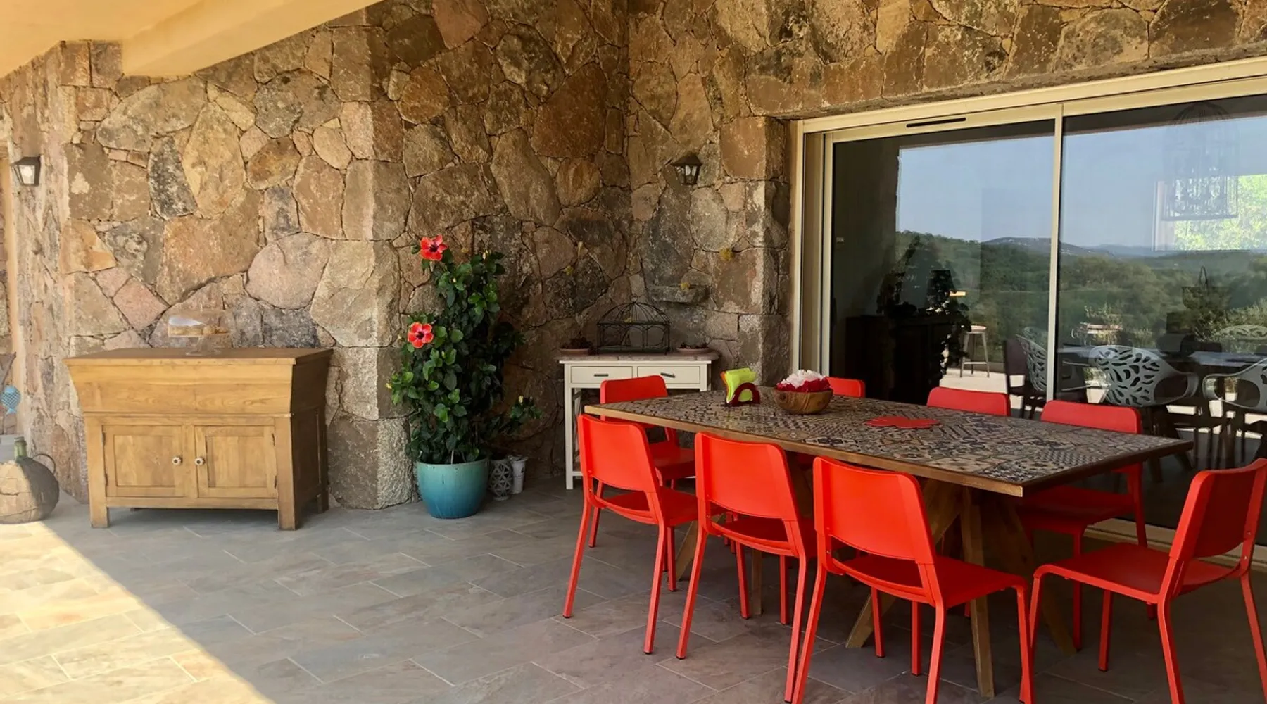 A jewel of serenity in the middle of the maquis. Come and enjoy the Dolce Vita in the south of Corsica with this magnificent stone villa nestled in the heart of the maquis, on the heights of the beach of Saint-Cyprien with a breathtaking view. Villa Gliastriccia features a pool downstairs from the house surrounded by rock. The space It is equipped with four bedrooms, two bathrooms, three toilets. Upstairs, an open kitchen fully equipped, ideal for sharing moments of conviviality, a living room, a large dining room and a huge terrace await you in an air-conditioned environment.