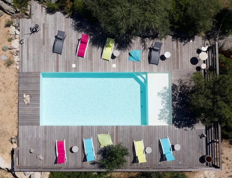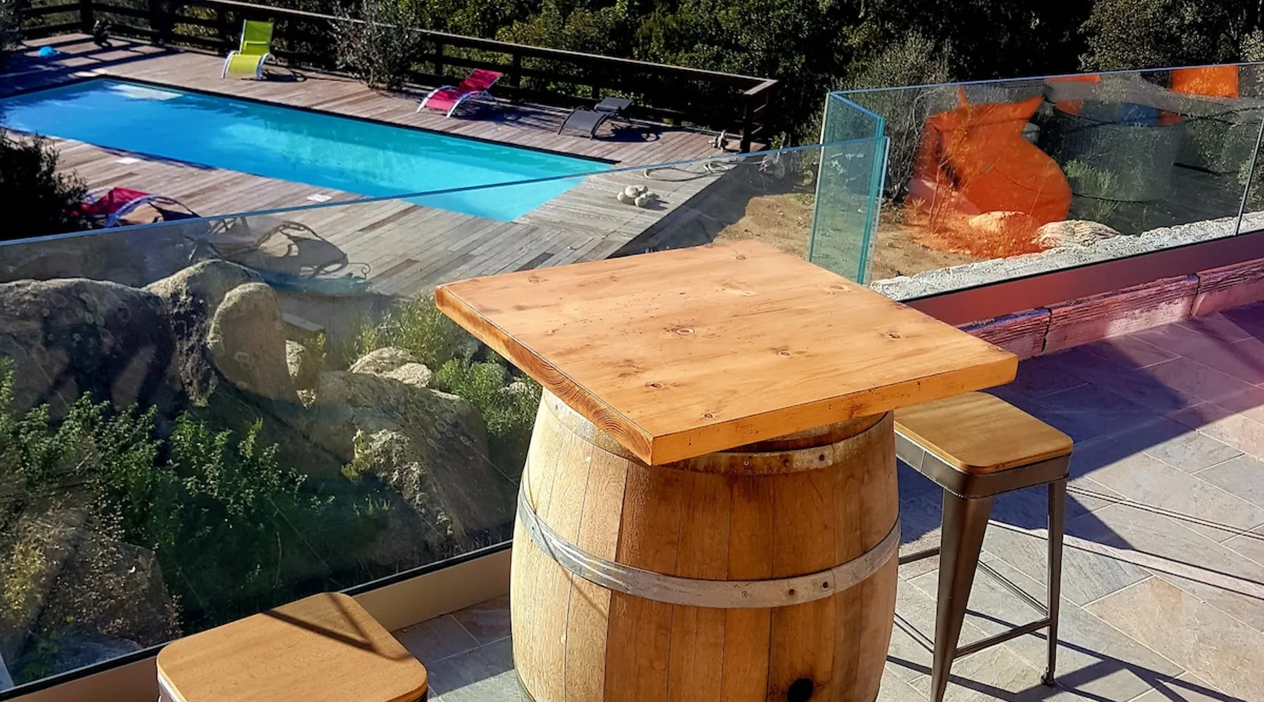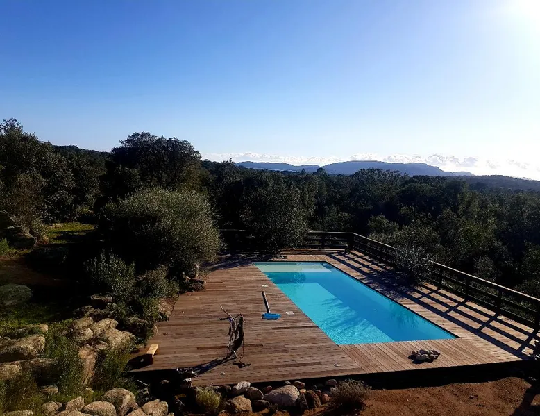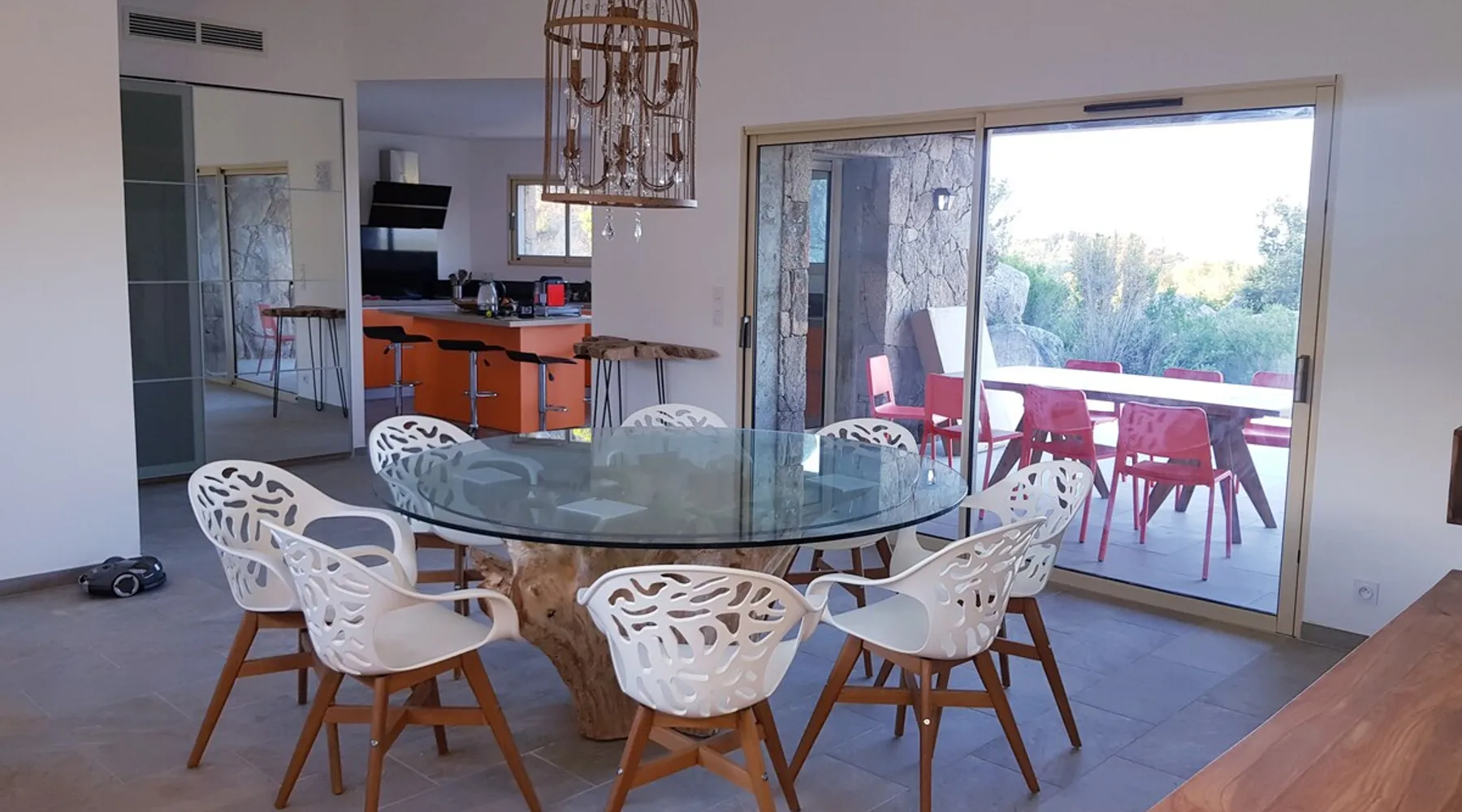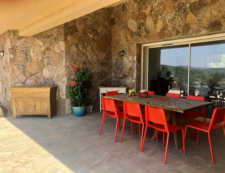 A jewel of serenity in the middle of the maquis. Come and enjoy the Dolce Vita in the south of Corsica with this magnificent stone villa nestled in the heart of the maquis, on the heights of the beach of Saint-Cyprien with a breathtaking view. Villa Gliastriccia features a pool downstairs from the house surrounded by rock. The space It is equipped with four bedrooms, two bathrooms, three toilets. Upstairs, an open kitchen fully equipped, ideal for sharing moments of conviviality, a living room, a large dining room and a huge terrace await you in an air-conditioned environment.