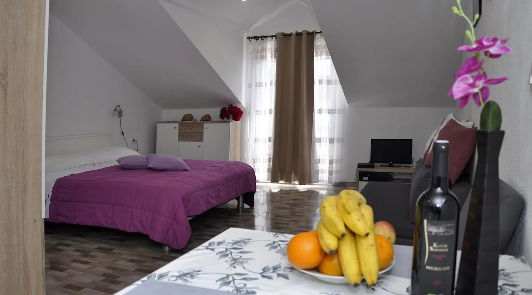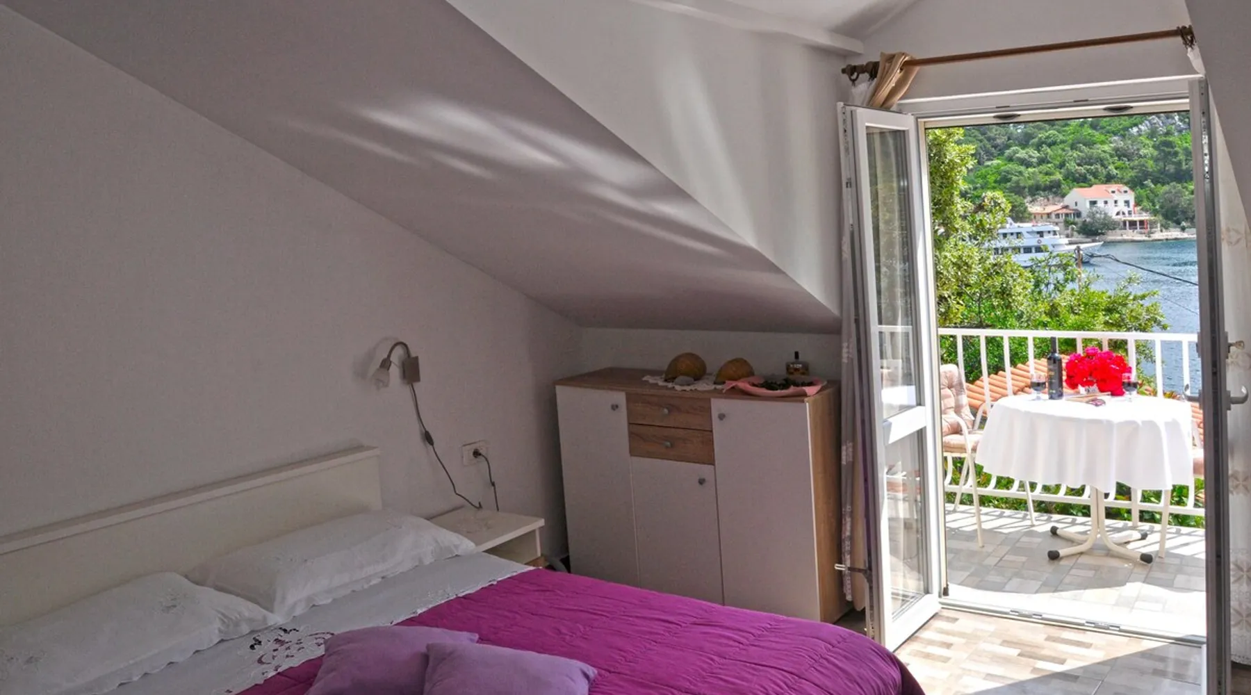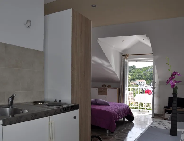 Apartment Danijela is located in Okuklje, quiet little place in a beautiful bay on the eastern side of the island of Mljet, popular anchorage spot for sailors. Luggage storage is possible prior check in and after check out, so you can explore the place a little more before your departure. Free public parking is available off site. The space This lovely studio apartment can comfortably accommodate up to 2 persons. Overlooking the Adriatic sea, studio with furnished balcony features free WiFi, air conditioning and LCD TV. It includes a kitchen, dining area and a private bathroom with shower. Kitchen comes with stove, refrigerator, water kettle and dining table. Fireplace is at the guests' disposal. Guest access Guest will have access to: exterior lightening, balcony, outdoor furniture, outdoor dining area, sea view, beachfront, Fireplace, air conditioning, Wi-Fi, flat screen TV, wardrobe/closet, hangers, bed linen, towels, kitchen, dining area, dining table, stove, refrigeration, water kettle, kitchenware, trash cans, bathroom, shower, toilet, soap, toilet paper, first aid kit.