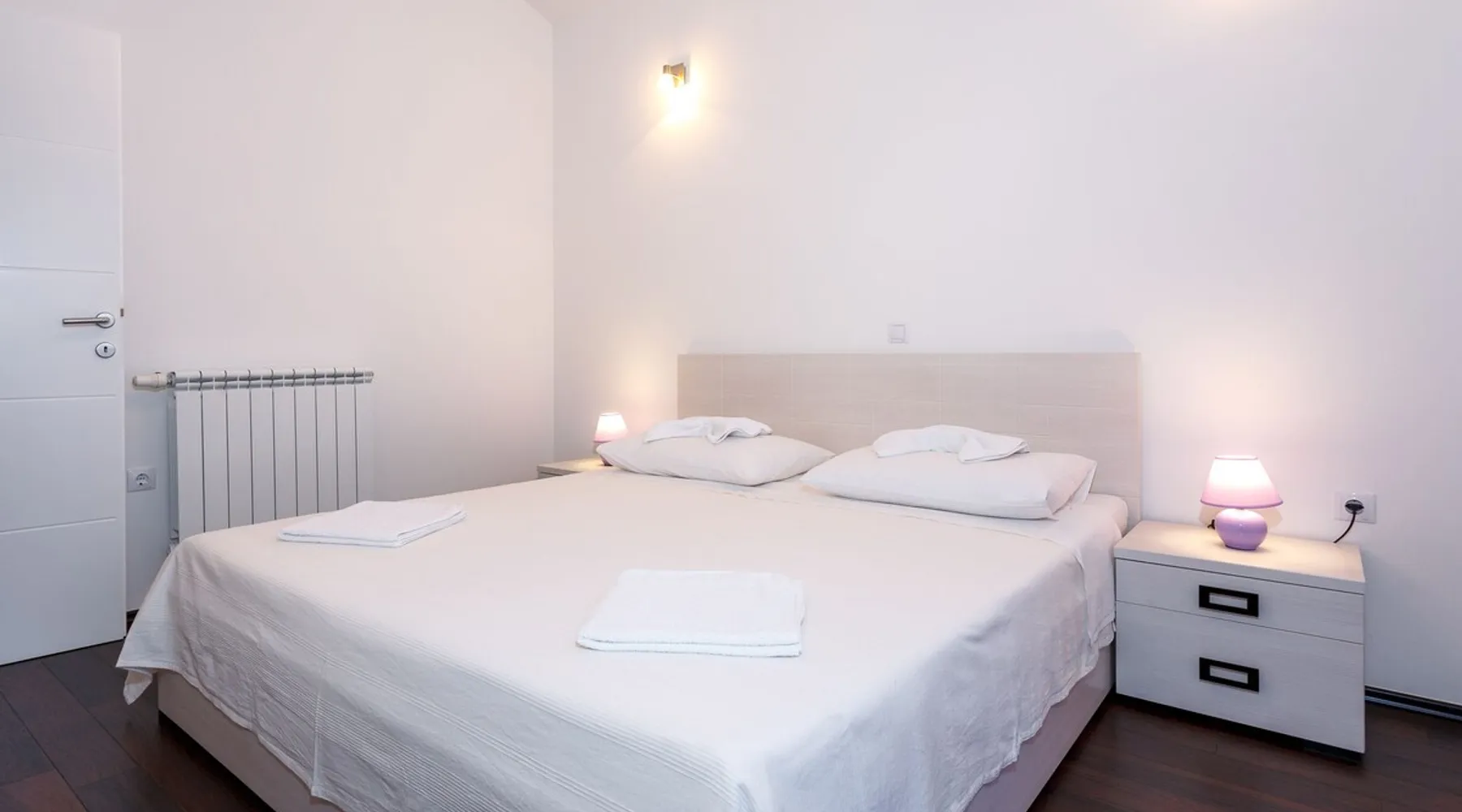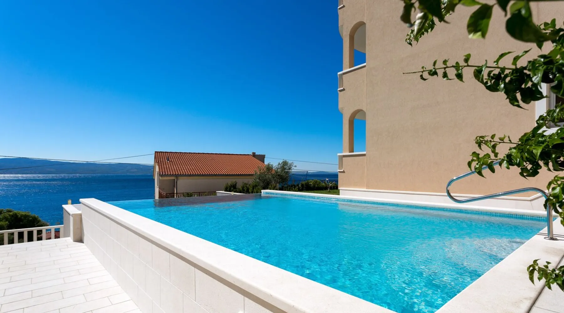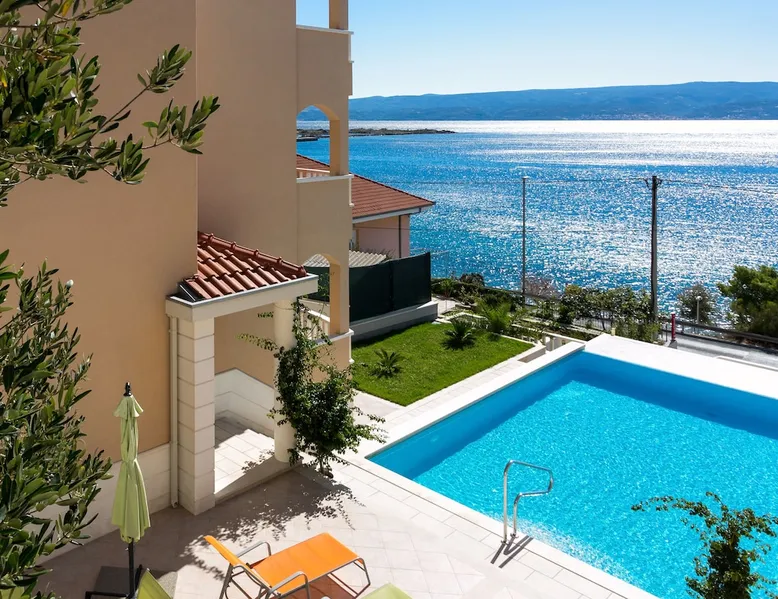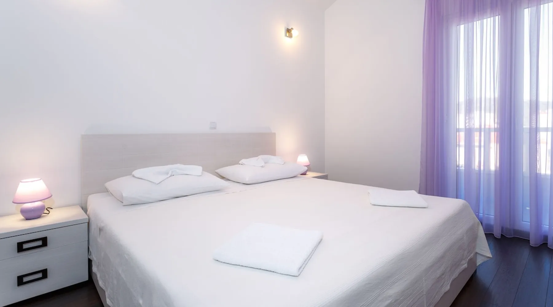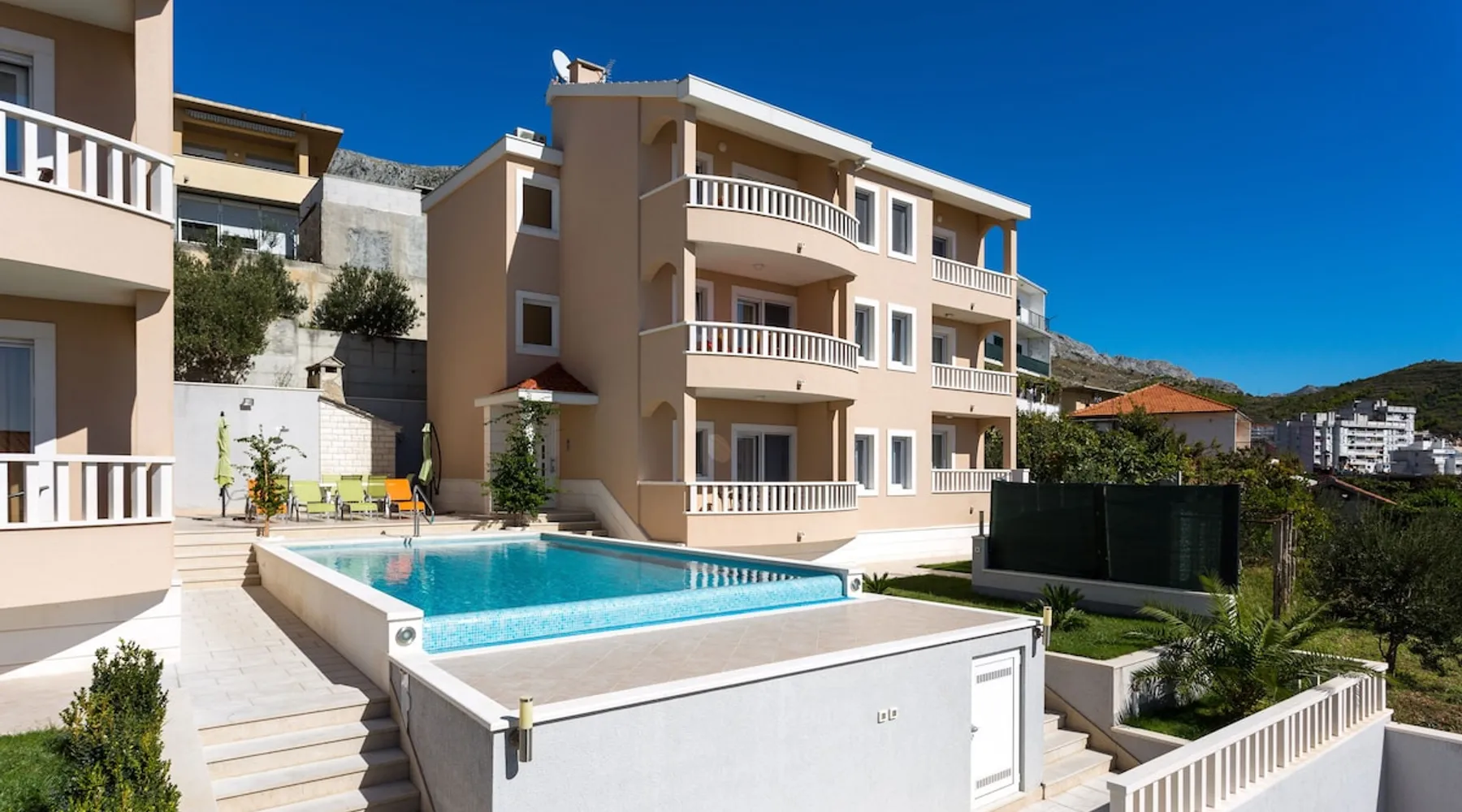 Our holiday apartment (A6) is one of six apartments with a sea view, for a maximum of 5 people, a five-minute walk from the town centre in Dugi Rat. The apartment is located on the second floor of the eastern house. It is 50 metres from the private guest parking space right in front of the house to the beach – a very well-maintained and clean pebble beach with two small cafés, inviting you to relax, sunbathe and swim. It is 6 km to Omiš and 20km to Split, the ‘capital of Dalmatia’. The space The 86m² of living space (not including the balconies) provides ample space to relax. You can recharge your batteries in the two bedrooms with a comfortable double beds, a balcony and a sea view. The living room, the dining room and the kitchen receive plenty of daylight owing to the balcony. The comfortable sofa beds invite you to relax. You can prepare delicious meals in the open, fully-equipped kitchen and dine in the light dining room during the day or on the adjoining balcony in the evening with candlelight – whatever you prefer. The two beautiful bathrooms with modern fittings provide a shower or a bath respectively. Other things to note Please, note that pets are not allowed on our property. Please, note that smoking is not permitted in our property and the entire residential complex, both indoors and outdoors (including the balconies). Parties, loud music, or similar noise disturbances are prohibited. The prescribed quiet hours between 10:00 PM and 6:00 AM must be strictly observed. Visitors are not allowed.
