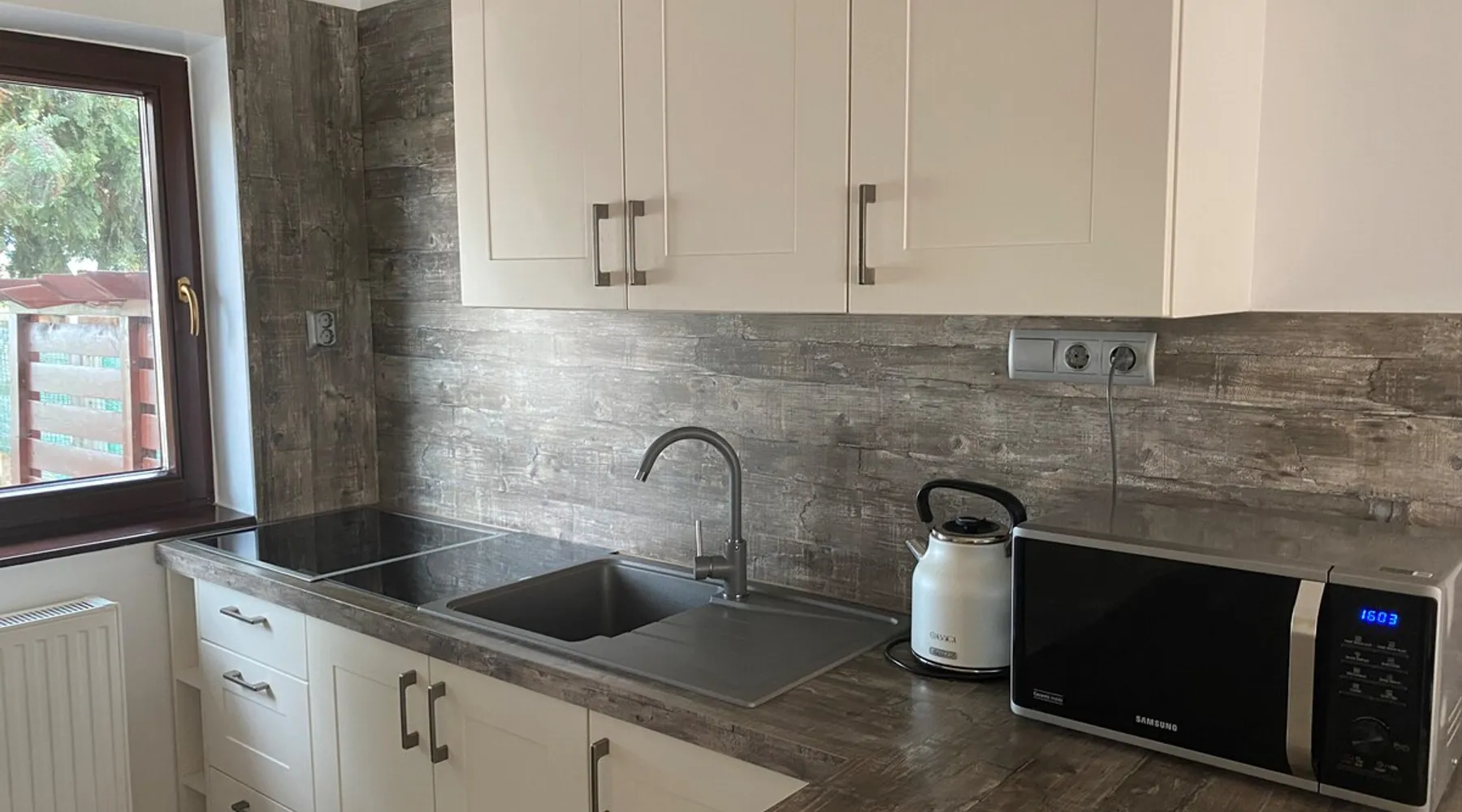 Located in nice surroundings in residential area of Bük close to spa, our family-run and newly-renovated holiday rental, EreliaCottage, offers you a friendly welcome and excellent accommodation for 2-8 persons for a family holiday or shorter breaks. The space THE COTTAGE With 1 double room downstairs and 2 superbly-presented bedrooms and an open-plan room upstairs (with open wall facing down the living room), our newly-renovated and refurbished cottage offers the comfort of an airy lounge with fireplace, a dining area for max. 8 persons, a fully stocked kitchen and two stylish bathrooms with spacious showers. The kitchen comes with stainless steel sink and drainer, electric cooker and stove, upright fridge freezer, microwave, dishwasher and all other dinnerware and cooking accessories. The modern bathrooms are equipped with showers. THE PROPERTY Around the cottage, the front courtyard with seatings, the patio and the backyard with BBQ facilities during the summer are all to aid your comfort to sit back and enjoy the sunshine. A storage for firewood supply on wintery days is also available to our guests. The drive next to the cottage provides parking space, convenience and safety. SUMMARY Should you prefer to spend some days in the close proximity of the spa bath with all the convenience of a home, our cottage is the ideal place for you! Guest access Our guests can have access to all the facilities the cottage has to offer including the BBQ and the front and back terrace throughout their stay. Other things to note WHAT'S INCLUDED: • Bed linen and towels • Internet • Wood-burning stove and logs to get you going • TV • Heating • BBQ & patio area with tables & chairs • Welcome Pack • 10 % discount deals at some local restaurants and cafes WHAT'S OFFERED (at extra cost): • In-house massage - pre-established appointment necessary Registration Details MA19010982