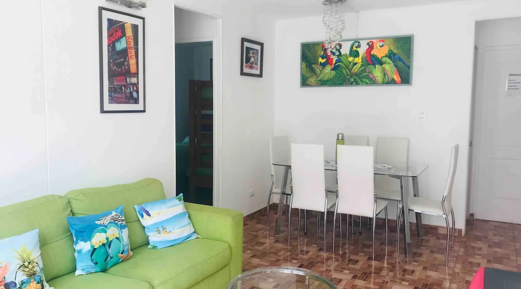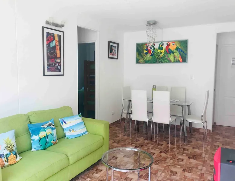 My apartment is on the second floor, all ceramic and porcelain, has 3 bedrooms and a bathroom, enabled for 6 people, with cable television, Wi-Fi, stereo, washing machine, vacuum cleaner and everything you need to cook, with modern decoration, steps from Avenida Cuatro Esquinas and one from Avenida Del Mar, so you are very close to the beach! Half a block from Los Arrayanes, where you'll find a convenience store, fresh bread at all times Features parking for one car The space My apartment is with everything you need to cook, everything new, with internet, Smart TVs with excellent image, Sony brand, in the living room and in the master bedroom, both connected to Cable TV, with many HD channels, where you can enjoy many movies according to your liking. The entire floor is ceramic and porcelain, making it easier to clean with a vacuum cleaner, which I also have. There are new and very comfortable beds for all people with the respective bedding It has parking, there is a 24-hour concierge. Steps to the beach and several convenience stores. Guest access It has children's games and green areas that are newly growing because the condominium is new