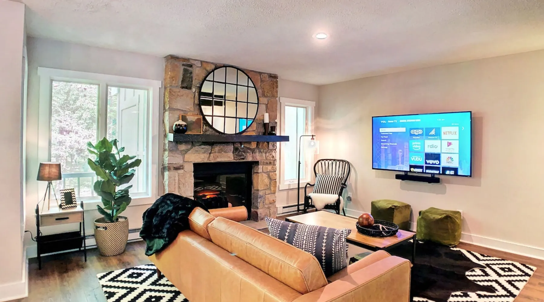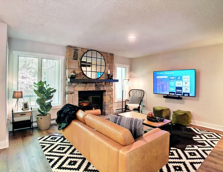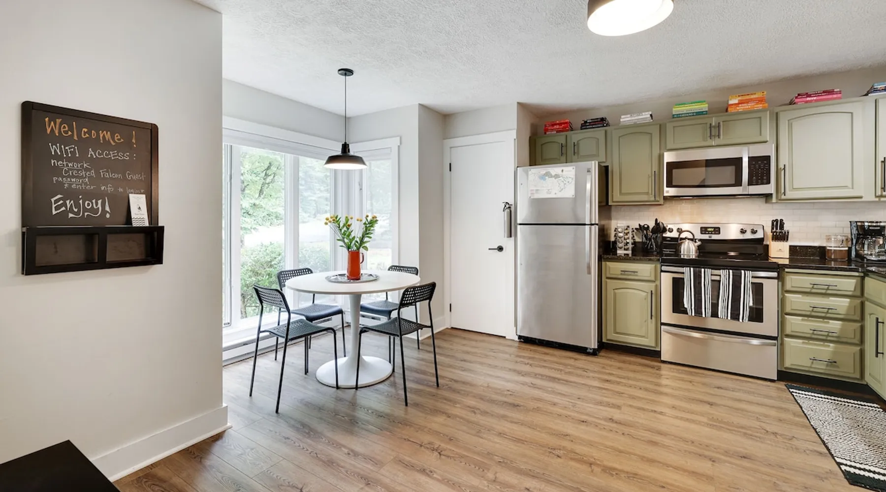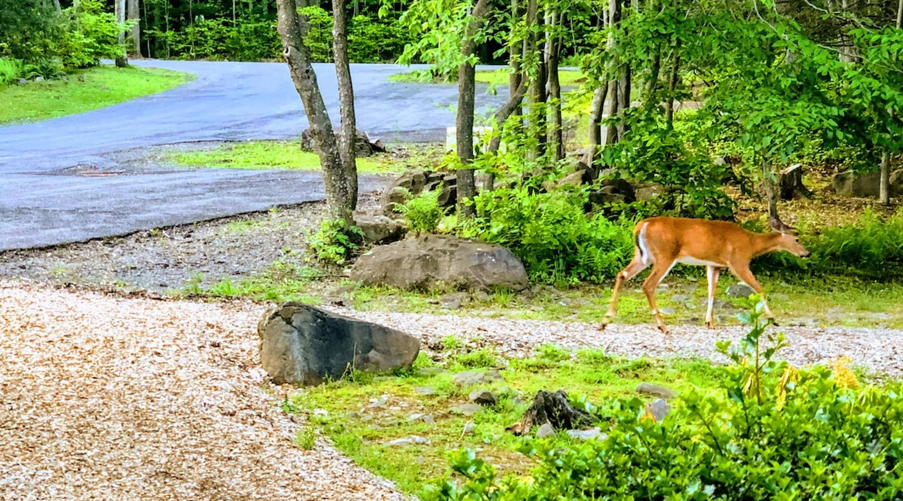 ⟶ Gaze peacefully at the lake from the deck lounge with fire table ⟶ Perfect for getting a break from the fast pace of everyday life ⟶ Charge up with a Level 2 EV Charger ⟶ Family friendly configuration Guests love CONVENIENT LOCATION & PROXIMITY TO ATTRACTIONS + AMENITIES Casual sophistication at your 1500 square foot 3 bed, 2.5 bath retreat on the lake in Pinecrest Golf & Country Club. Comfortably sleeping 8 in our crisply designed two-level townhome that has a friendly nod to cabin living. The space A redefined lakeview townhome designed for discerning families and groups who value comfort, design, and direct access to resort-quality amenities. Enjoy top-tier seasonal offerings via included private club membership — all just a short walk away: ✦ Oversized outdoor pool with slide, Baja ledge, and lap lanes (open late June–Labor Day) ✦ Sandy beach with lake swim dock ✦ 8 pickleball courts and 6 Har-Tru tennis courts ✦ Access to a par-72, 18-hole golf course (green fees apply) ✦ Private clubhouse dining The Home You’ll park steps away in two dedicated spots — including one with a complimentary Level 2 EV charger — and enter a spacious two-story home fully equipped for relaxing, entertaining, and working remotely. ►►►Main Level Features◄◄◄ ➜ Fully renovated kitchen with olive cabinetry, granite counters, and stainless steel appliances ➜ Live-edge dining table seats 8 comfortably ➜ Living room with buttery leather seating ➜ Electric fireplace with auxiliary heat ➜ 65" 4K Roku Smart TV with Sonos soundbar ➜ Wet bar and coffee station ➜ Powder room off the entry hall ➜ Multispeed Ceiling fan ➜ Individually wall-controlled Minisplit HVAC with A/C & heat ★★★★★ Lakeside deck ★★★★★ • Bistro table for two • Conversation chairs + side table • 3-burner Weber propane grill • Propane fire pit • Outdoor games and spare propane tank stored in closet ►►►Upper Level Sleeping Quarters◄◄◄ All three bedrooms feature cathedral ceilings, zoned ductless mini-split heating and cooling, ceiling fans, remote-controlled tower fans, personal Sonos speakers, and fast-charging USB ports. ★★★★★ Primary Suite (Sleeps 2)★★★★★ ➜ King canopy bed with luxury bamboo blend linens and cool-gel memory foam mattress ➜ 65” 4K Roku Smart TV with Sonos soundbar ➜ Auxiliary heat & cozy ambiance electric fireplace ➜ Private office desk setup with task lighting and USB ports ➜ Private coffee station with Keurig & essentials ➜ Ensuite bath with oversized rain shower + bidet ➜ Full closet with mini fridge, safe, steamer, and hamper ➜ Multispeed Ceiling fan ➜ Individually wall-controlled Minisplit HVAC with A/C & heat ★★★★★ Queen Bedroom (Sleeps 2)★★★★★ ➜ Queen bed with cool-gel memory foam mattress & bold green accent wall ➜ White bamboo blend linens ➜ Bedside charging stations and Sonos One ➜ Multispeed Ceiling fan ➜ Individually wall-controlled Minisplit HVAC with A/C & heat ★★★★★ Bunk Room (Sleeps 5)★★★★★ ➜ Double full bunk beds with twin trundle ➜ Bedside USB charging station ➜ Window seat ➜ Kid tent ➜ 55" 4K Roku Smart TV with Sonos soundbar ➜ Retro Pac-Man arcade game ➜ Multispeed Ceiling fan ➜ Individually wall-controlled Minisplit HVAC with A/C & heat A shared hallway bathroom with tub/shower combo serves the Queen and Bunk rooms, and a full-size LG washer/dryer with detergent is conveniently located at the end of the hall. ►►►Kitchen & Culinary Comforts◄◄◄ Whether you're prepping family meals or enjoying a quick breakfast, the kitchen is stocked for ease and comfort: ◻ Drip coffee maker (filters included), Keurig, pour-over pot, coffee bean grinder + complimentary ground coffee blend ◻ Full cookware set, Instant Pot, toaster, griddle, waffle maker, blender, air fryer, tea kettle, knives, cutting boards & kitchen gadgets ◻ Table service for 12 ◻ Pantry basics like spices, oils, baking essentials, and storage wrap ►►►Tech, Games & Comforts◄◄◄ ◻ Mesh Wi-Fi with blazing 400MB download speeds / 20MB upload ◻ 3 Smart TVs with Roku (Living Room, Primary Suite, Bunk Room) ◻ 4 Sonos zones (Living Room + all 3 bedrooms) ◻ Amazon Echo Show with Alexa voice assistance ◻ Charging stations and USB-integrated outlets at every bedside ◻ Board games, books, toys, high chairs, Pack & Play/travel crib with sheet ◻ 6 Tommy Bahama backpack beach chairs + beach umbrella & cooler ◻ 4 full-size umbrellas for rainy days ►►►Community & Location◄◄◄ Located in the Pinecrest Golf and Country Club community, you’ll have easy seasonal access to: Golf, tennis, pickleball, basketball, lake swimming, and pool Auxiliary parking 1,500 feet from the unit if needed The Crested Falcon is extremely close to activities for adults or the entire family. Our digital welcome guide will provide you information about the home and the community. Nearby area highlights include: - Kalahari Waterpark (13 mins away) - Jack Frost Ski Resort (18 mins away) - Mt Airy Casino (17 mins away) - Camel Beach & Aquatopia (18 mins away) - Pocono Raceway (12 mins away) - Mountain Creek Riding Stables (20 mins away) - Whitewater Challengers Rafting (38 mins away) - Tannersville Premium Outlet Shopping (21 mins away) - Stock Car Racing Experience (17 mins away) - Pocono Whitewater Rafting (29 mins away) - Skytop Ziplining (33 mins away) Provided Essentials Cleaning & Hygiene: ─ Bamboo blend linens, Quality cotton towels, dedicated lake/pool towels ─ Toilet paper, paper towels ─ Meyer's brand soaps and detergents ─ Hair dryer, iron, steamer ironing board, dish sponge, trash bags Kids & Extras: ─ Pack & Play / Travel Crib with sheet ─ High chair conversion kits ─ Toys, games, and books Outdoors: ─ Grill tools ─ Beach and lake day gear (chairs, cooler, umbrella) ─ Covered lakeview deck with fire pit and comfy se